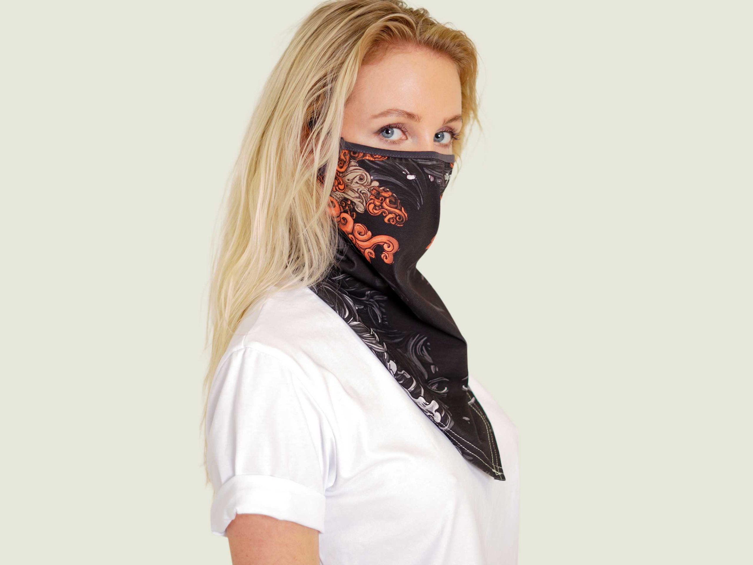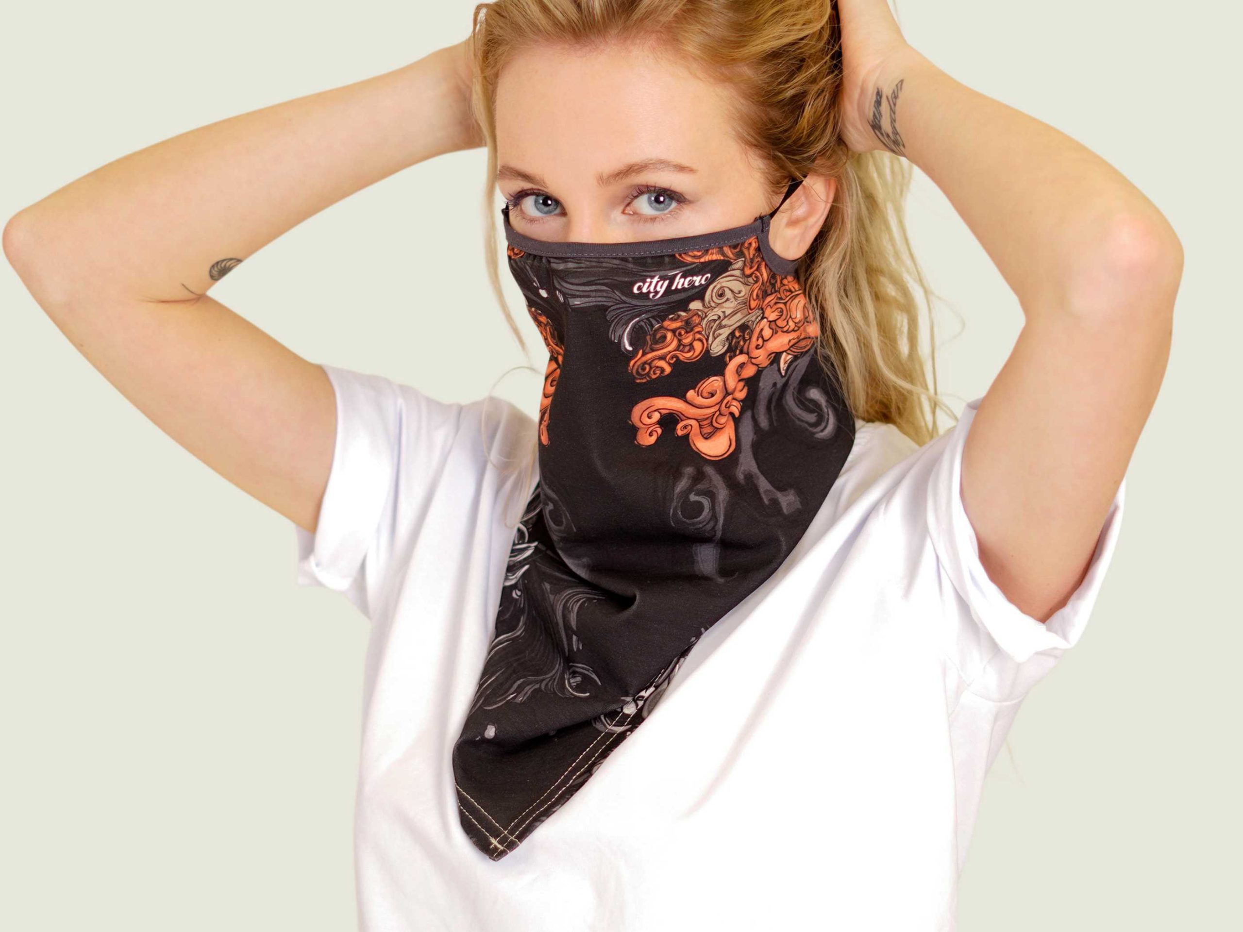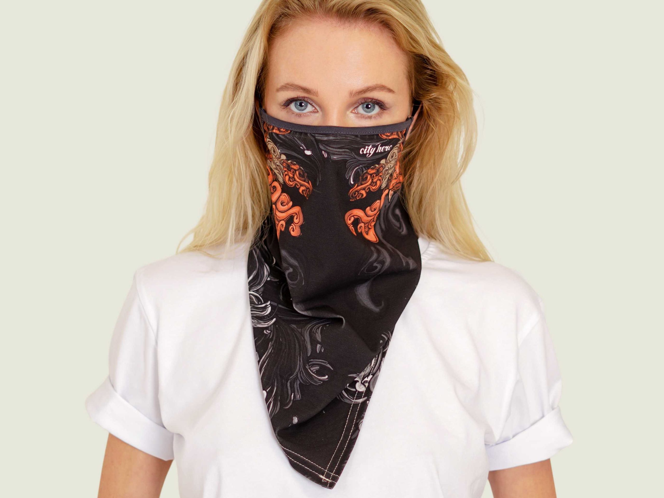 Удобная маска-платок из нежного хлопкового трикотажа с принтом AKITA SAMURAI BLACK и логотипом Мастерской. Ультра-легкие резинки не давят и не натирают уши. Мы позаботились о том, чтобы в надетом виде в маске было легко дышать, а в спущенном она приятно оборачивала шею. Маска-платок хорошо сочетается почти со всеми принтами CITY HERO, дополняя ваш образ и делая его более сложным.