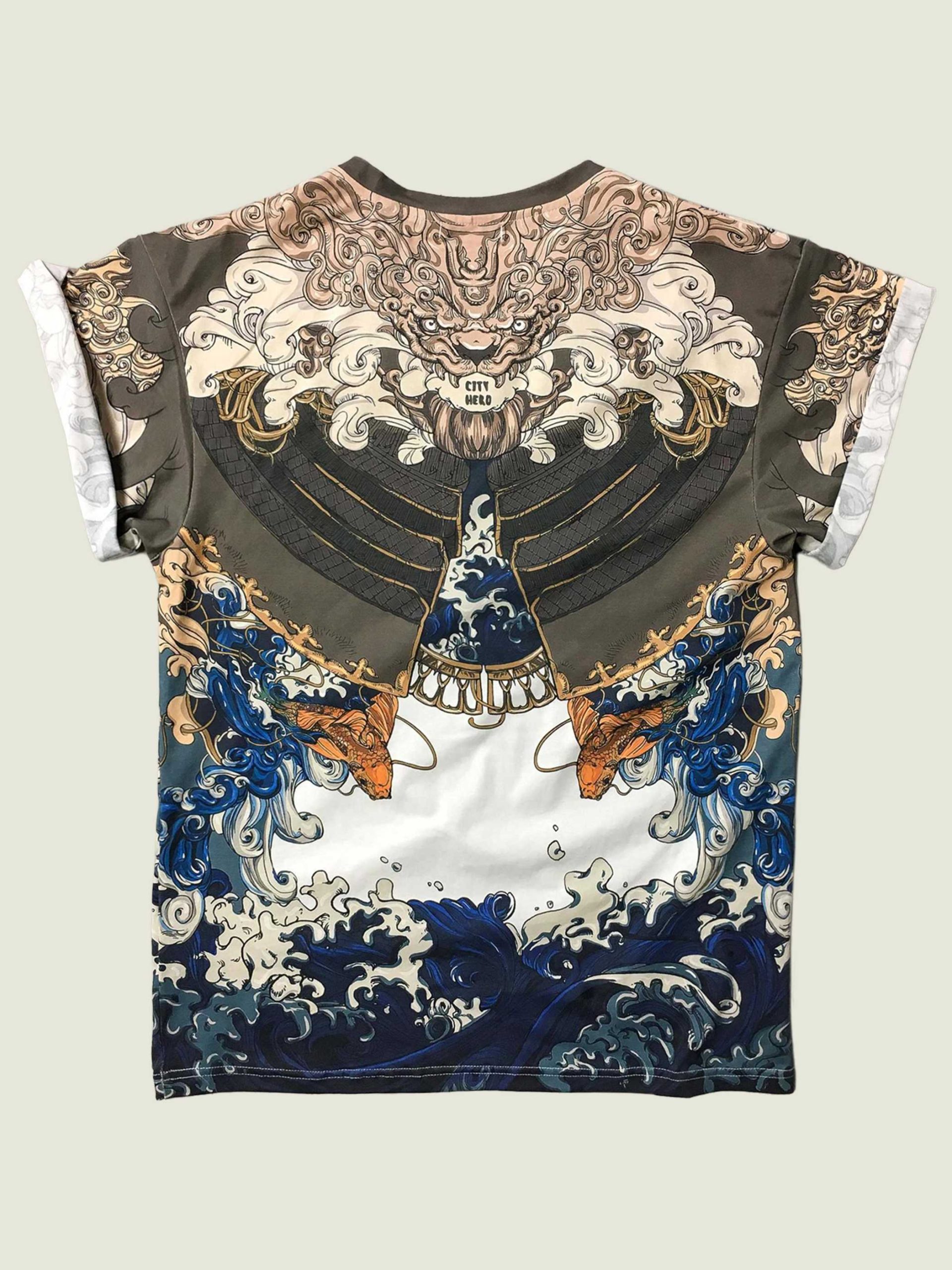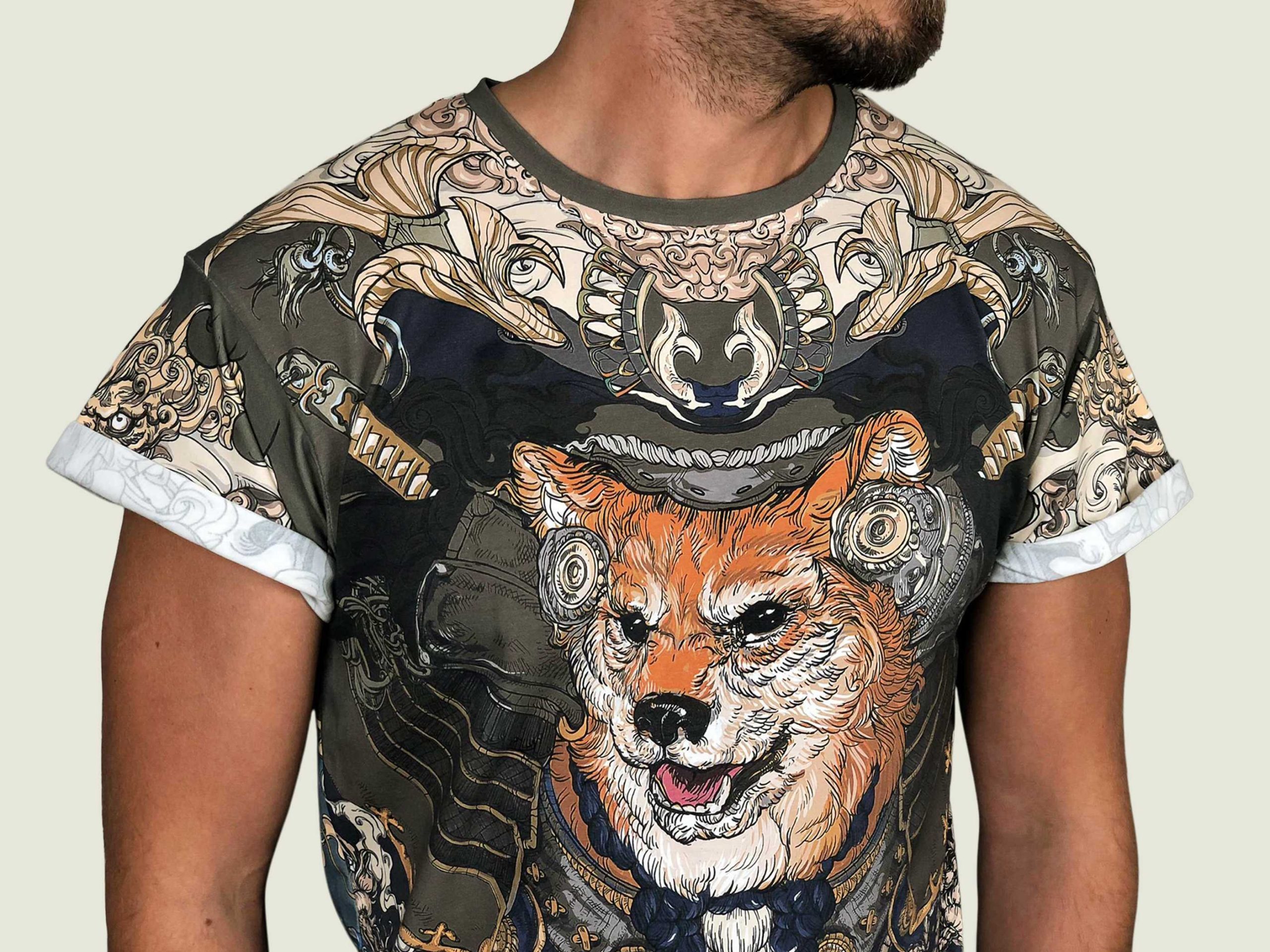 Акита-ину — с самурайскими мечами и водными драконами, окружёнными бушующими волнами.