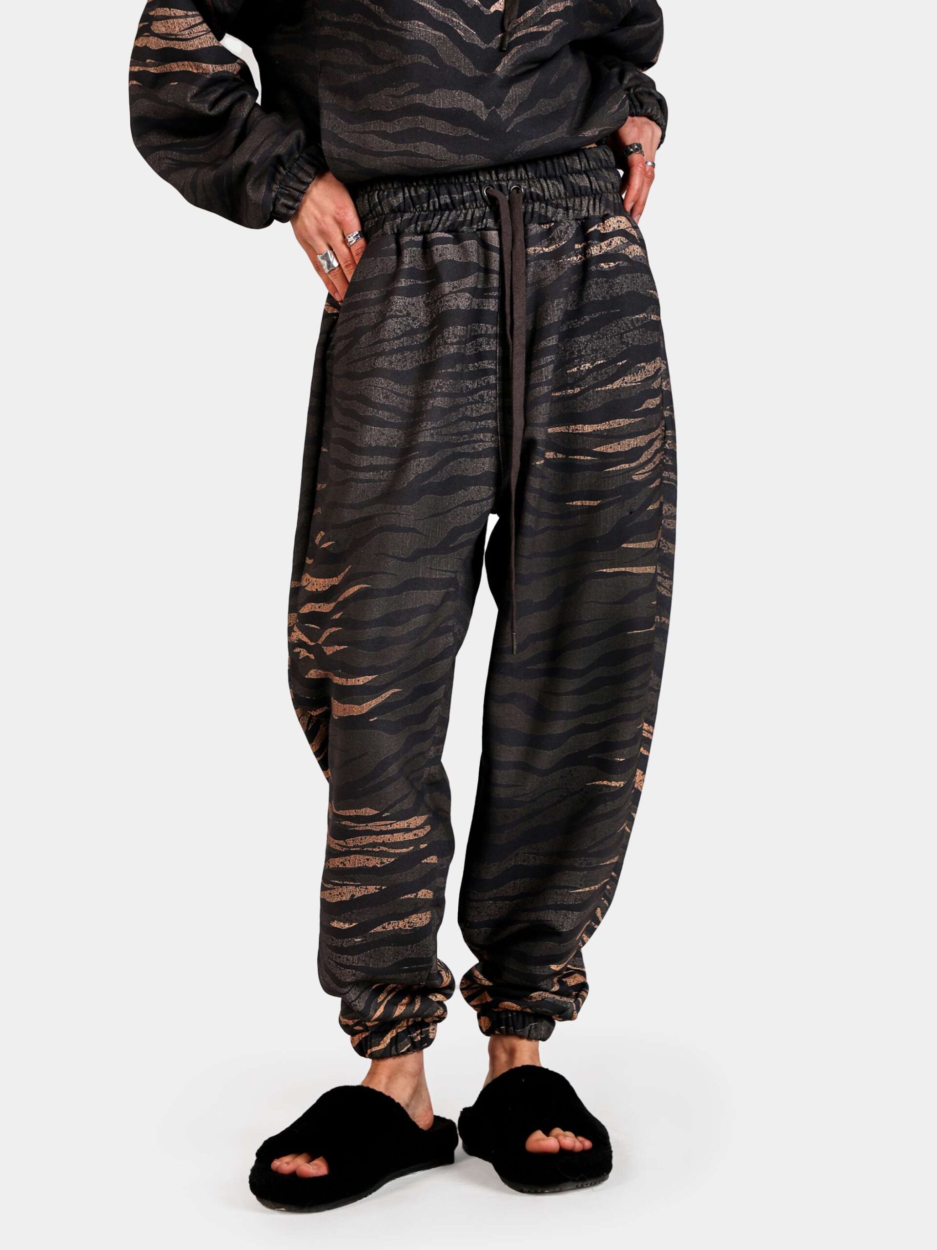 Джоггеры в стиле интеллиджент оверсайз с узнаваемой сложной текстильной графикой CITY HERO. Низ штанин на резинке. Удобные объемные боковые карманы-ловушки, сконструированы так, чтобы из них не выпадало содержимое. Изделие спроектировано как для комбинирования с базовыми вещами, так и для дополнения костюмного тотал-лука того же дизайна.