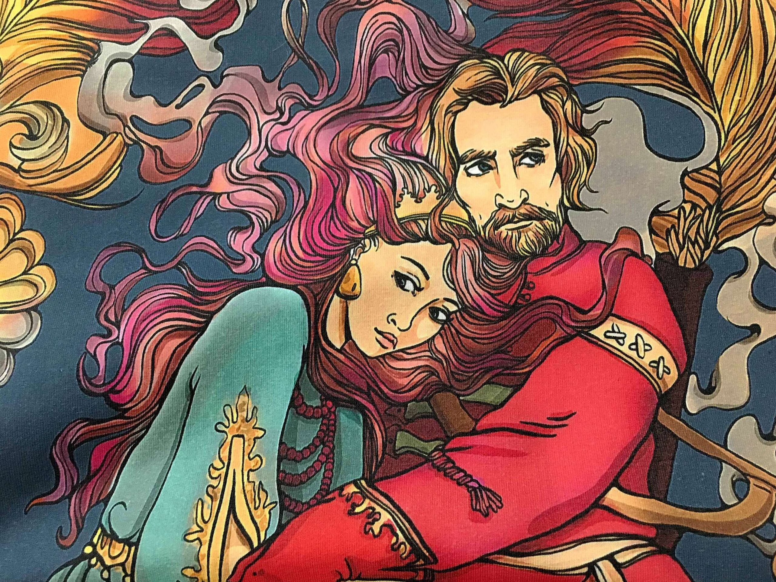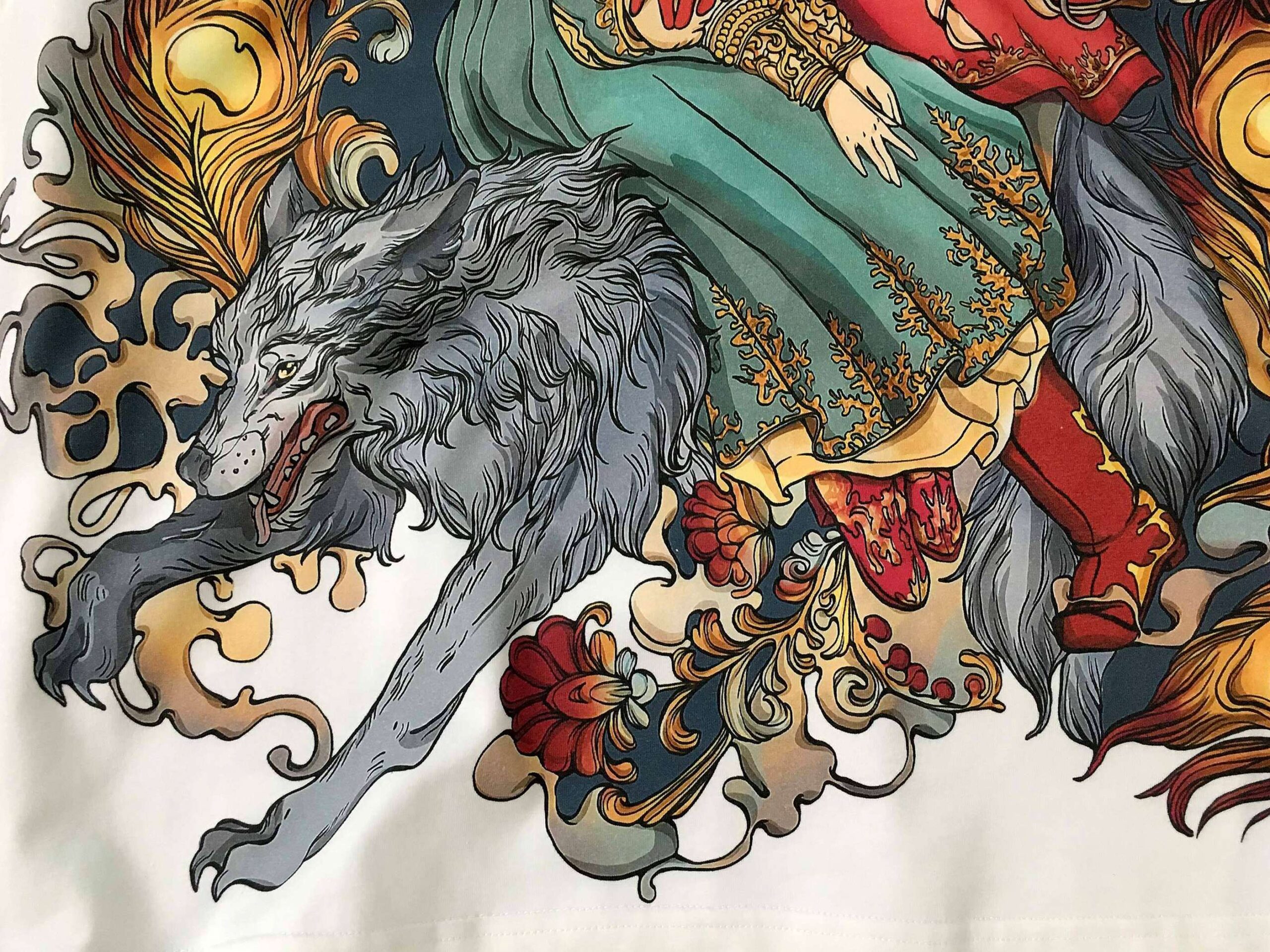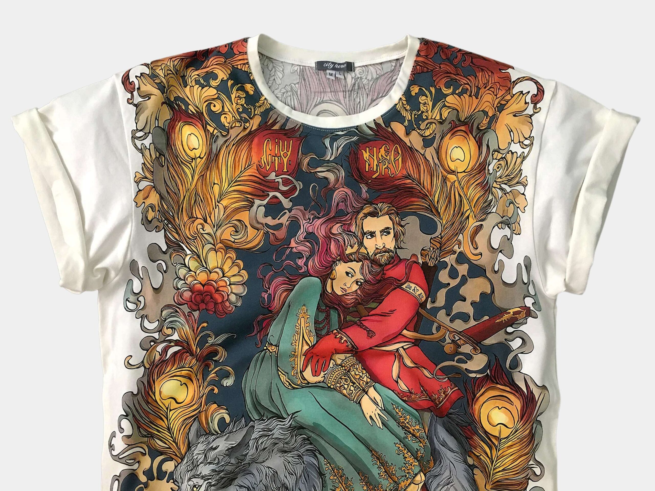 ЦАРЕВИЧ — Сел Иван-царевич на серого волка, посадил на спину Елену-прекрасную и поспешили они за Жар-птицей.. Сюжет русской народной сказки лег в основу этого красочного дизайна. Спереди изображены герои сказки верхом на сером волке, а на спине, величественно раскинула волшебные перья Жар-птица.
