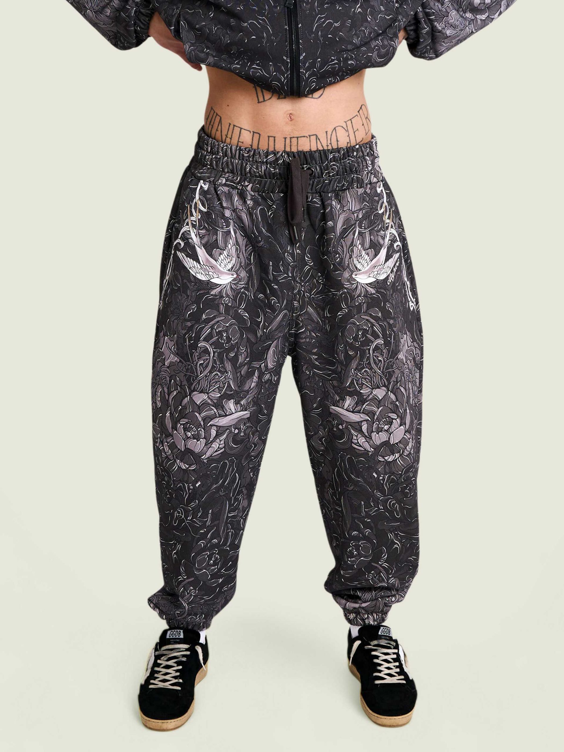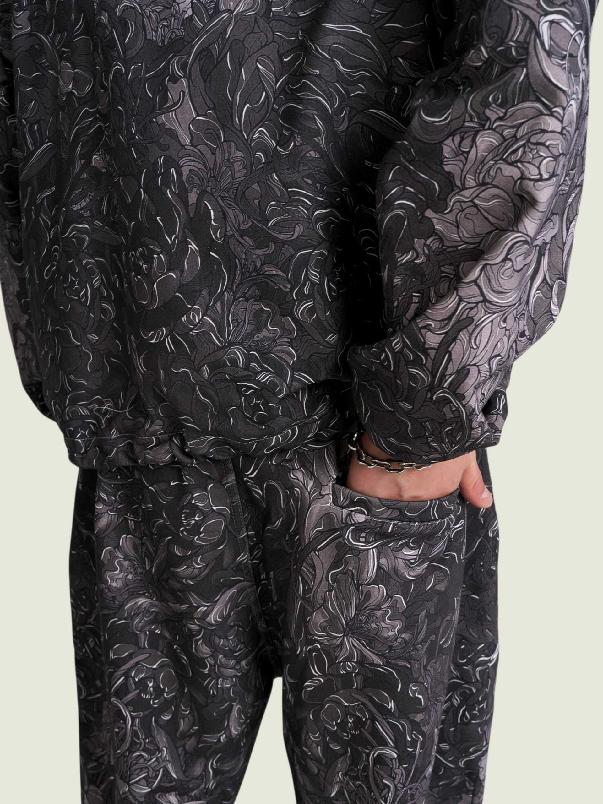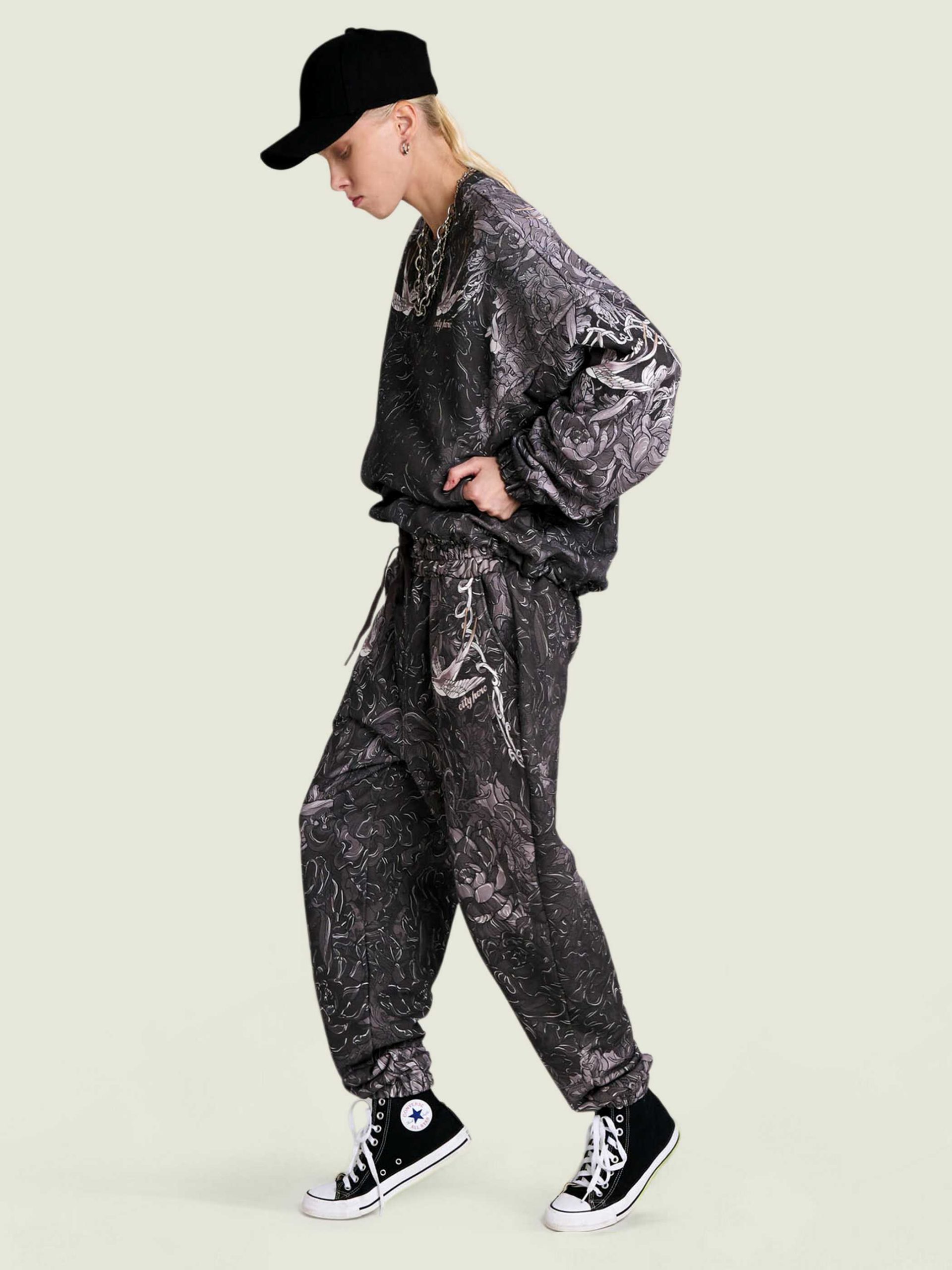 Джоггеры в стиле интеллиджент оверсайз с узнаваемой сложной текстильной графикой CITY HERO. Низ штанин на резинке. Удобные объемные боковые карманы-ловушки, сконструированы так, чтобы из них не выпадало содержимое. Изделие спроектировано как для комбинирования с базовыми вещами, так и для дополнения костюмного тотал-лука того же дизайна.