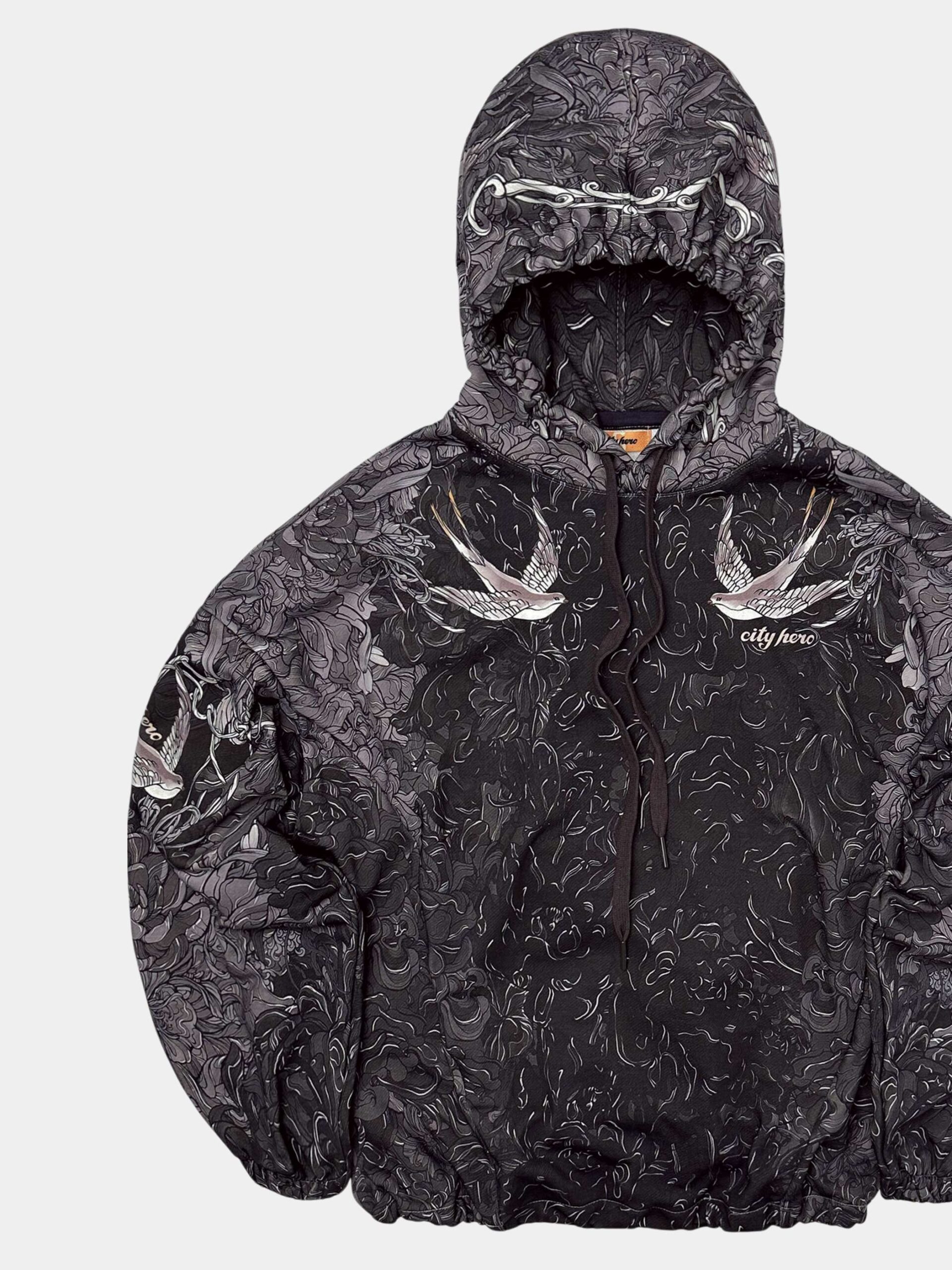 Худи в стиле интеллиджент оверсайз с узнаваемой сложной текстильной графикой CITY HERO. Изделие спроектировано как для комбинирования с базовыми вещами, так и для дополнения костюмного тотал-лука того же дизайна. Нижние боковые затяжки позволяют придать худи как прямой, так и скруглённый силуэт.