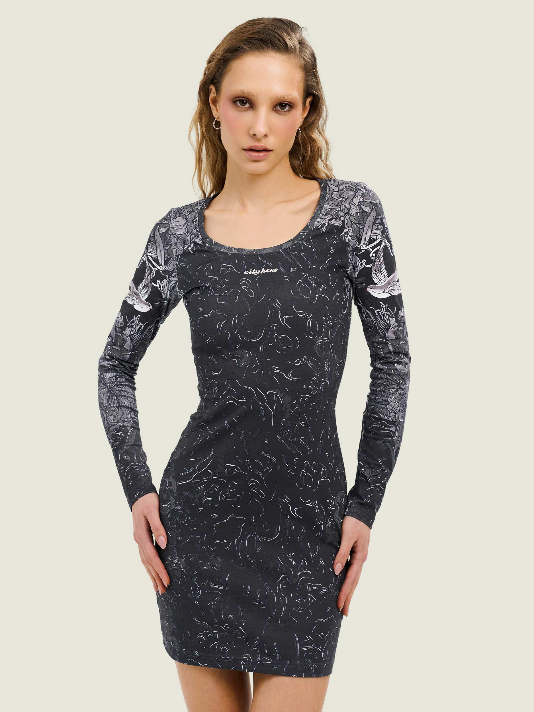 Изящное платье-лонгслив с фирменным дизайном “DARK JOY”. Твой образ достигает максимального комфорта, когда на тебе платье “DARK JOY” от CITY HERO.