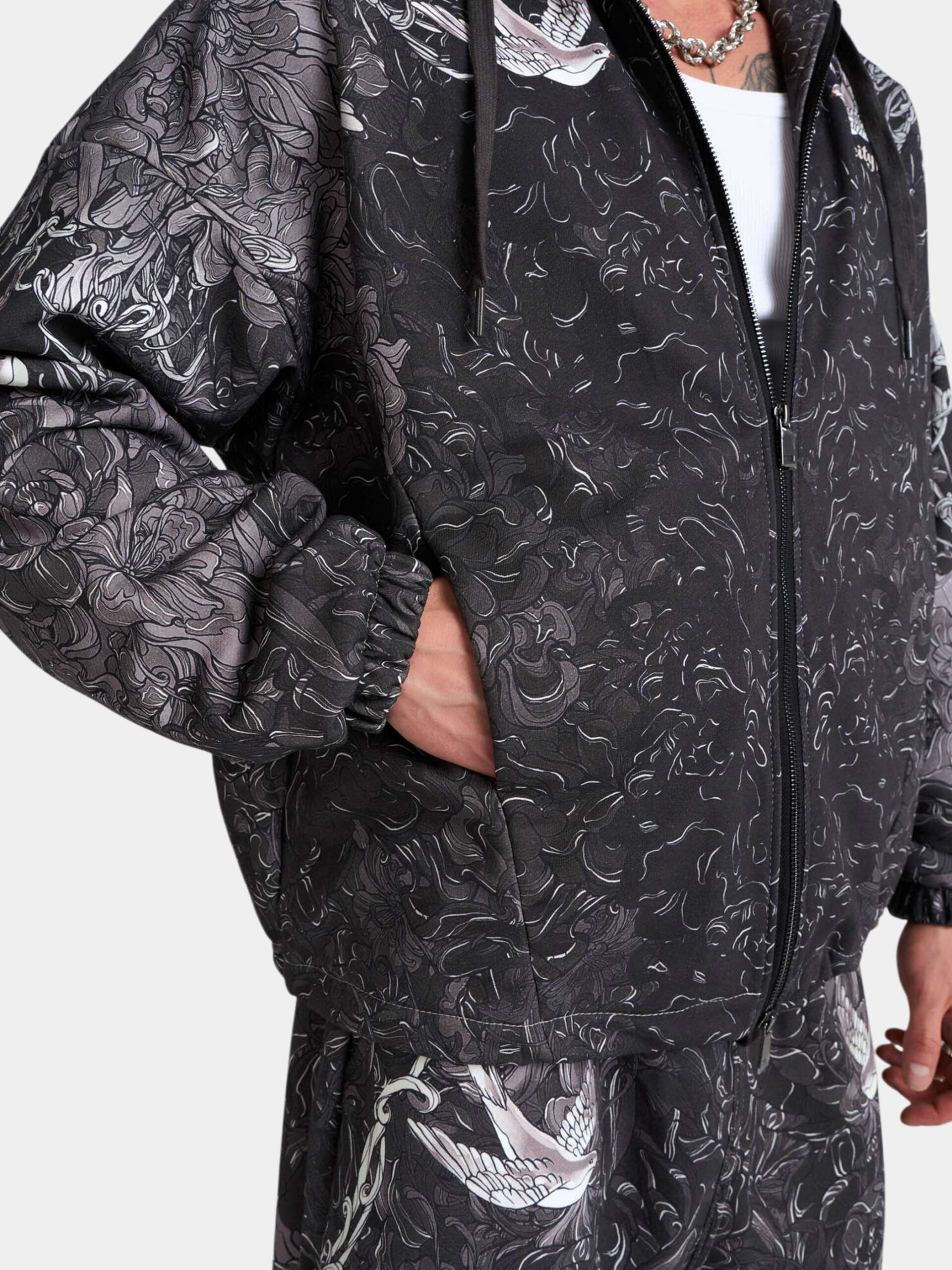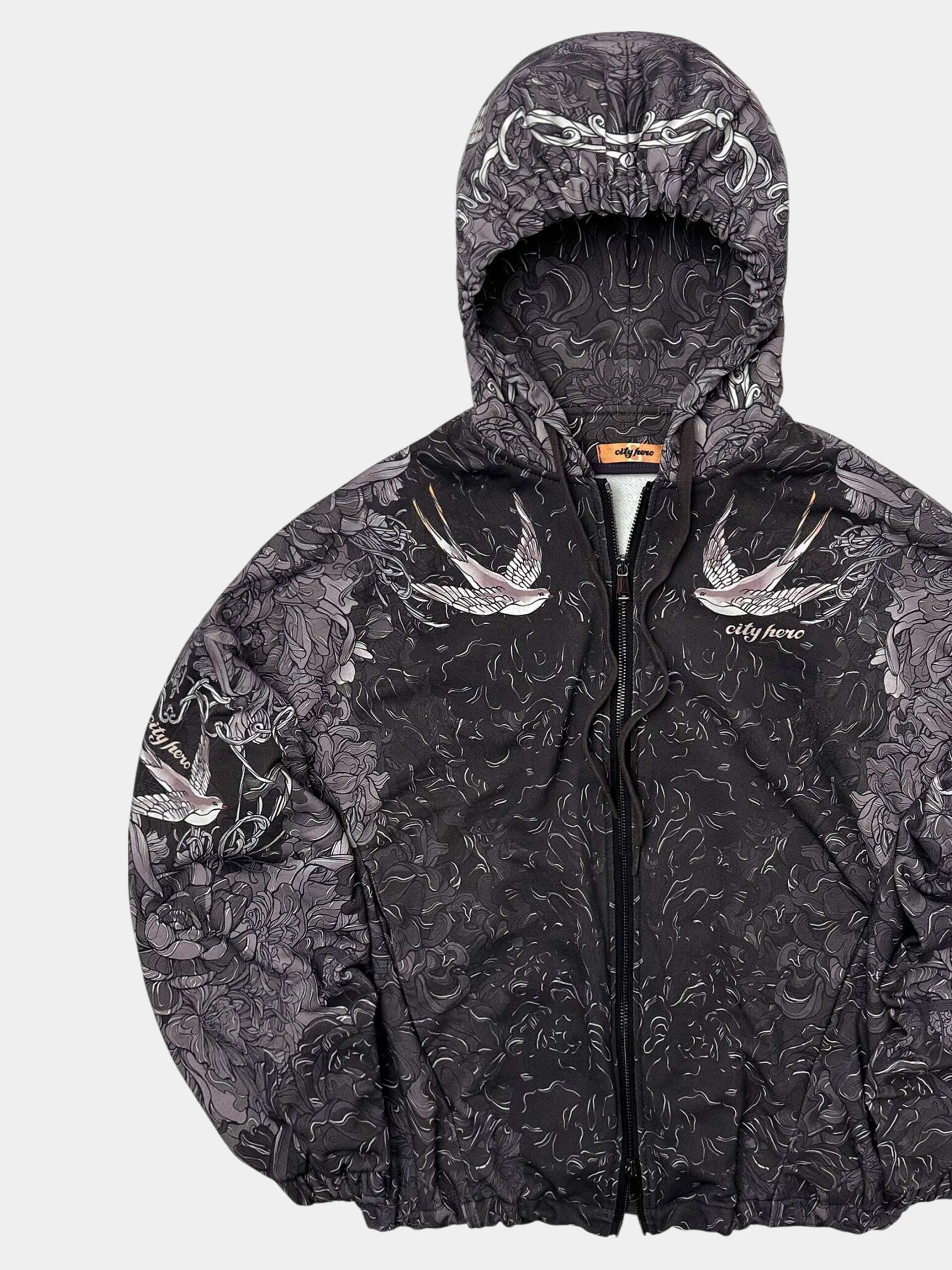 Худи на молнии в стиле интеллиджент оверсайз с узнаваемой сложной текстильной графикой CITY HERO. Изделие спроектировано как для комбинирования с базовыми вещами, так и для дополнения костюмного тотал-лука того же дизайна. Нижние боковые затяжки позволяют придать худи как прямой, так и скруглённый силуэт.
