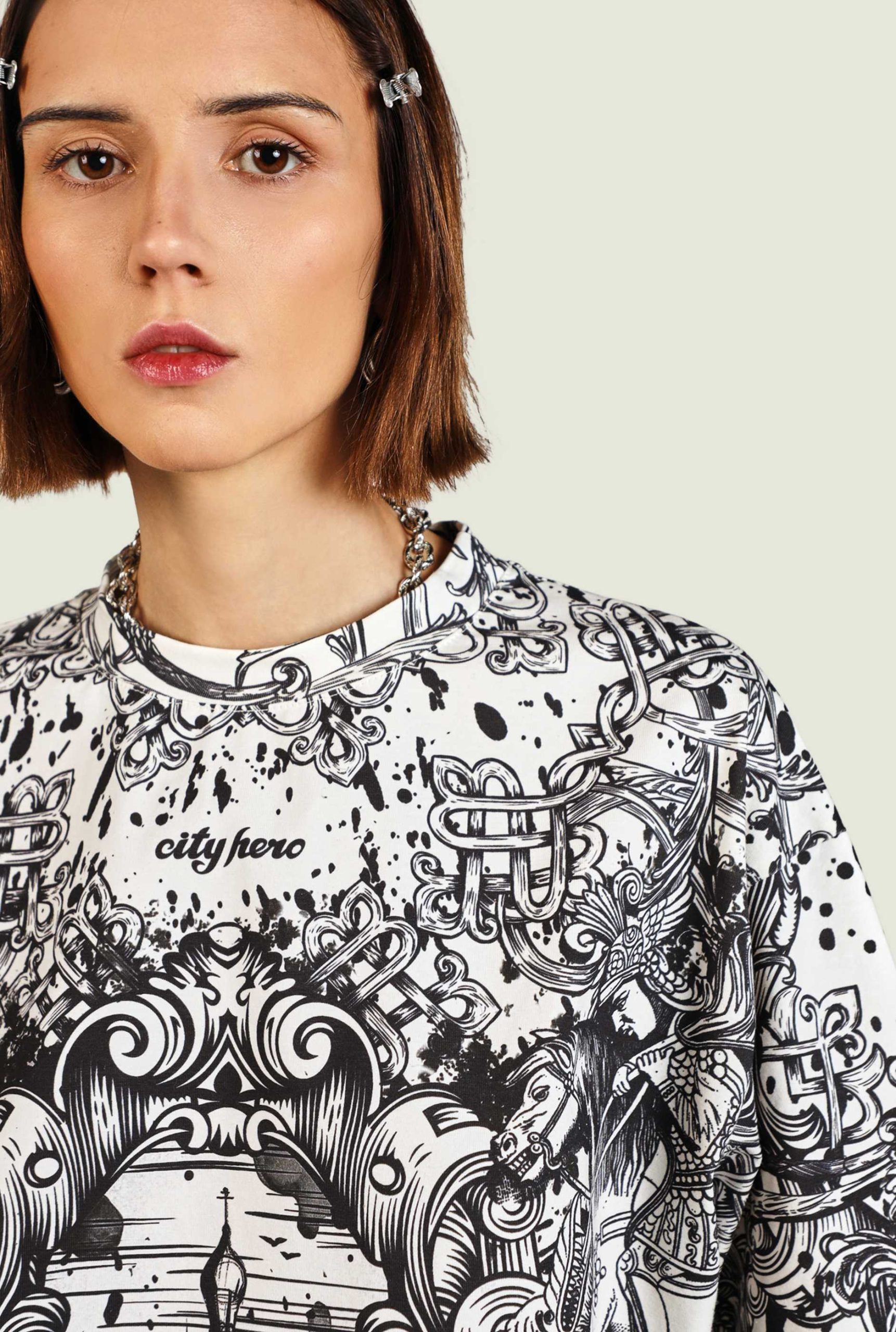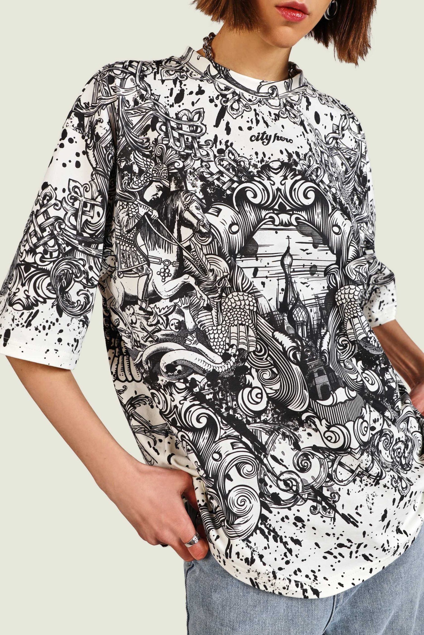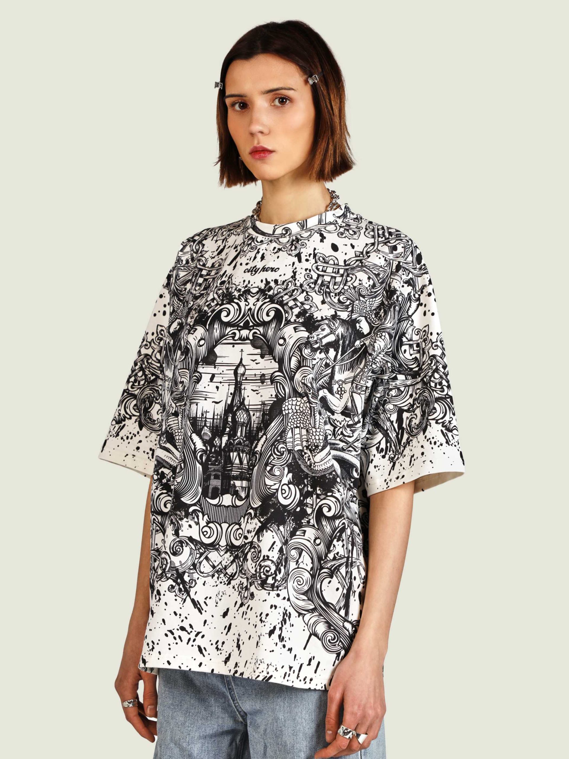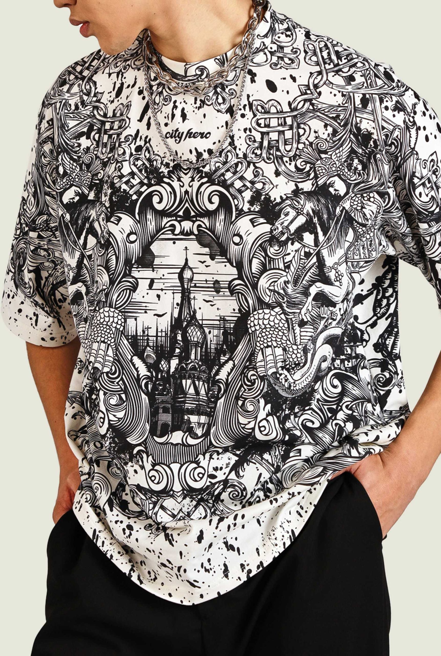 Превратить насыщенные сюжеты повестей в скетч чернилами, сохраняя при этом понятный смысл, — задача не из простых. Но для мастерской CITY HERO не бывает сложных задач — только интересные вызовы! Футболка IMPERIAL за секунду переносит нас в легенду о Юрии Долгоруком и создании Москвы, но в актуальном прочтении. Эффект гранжевых подтеков и капель делает нашу футболку остро модным айтемом. Футболка второго поколения в стиле интеллиджент оверсайз.