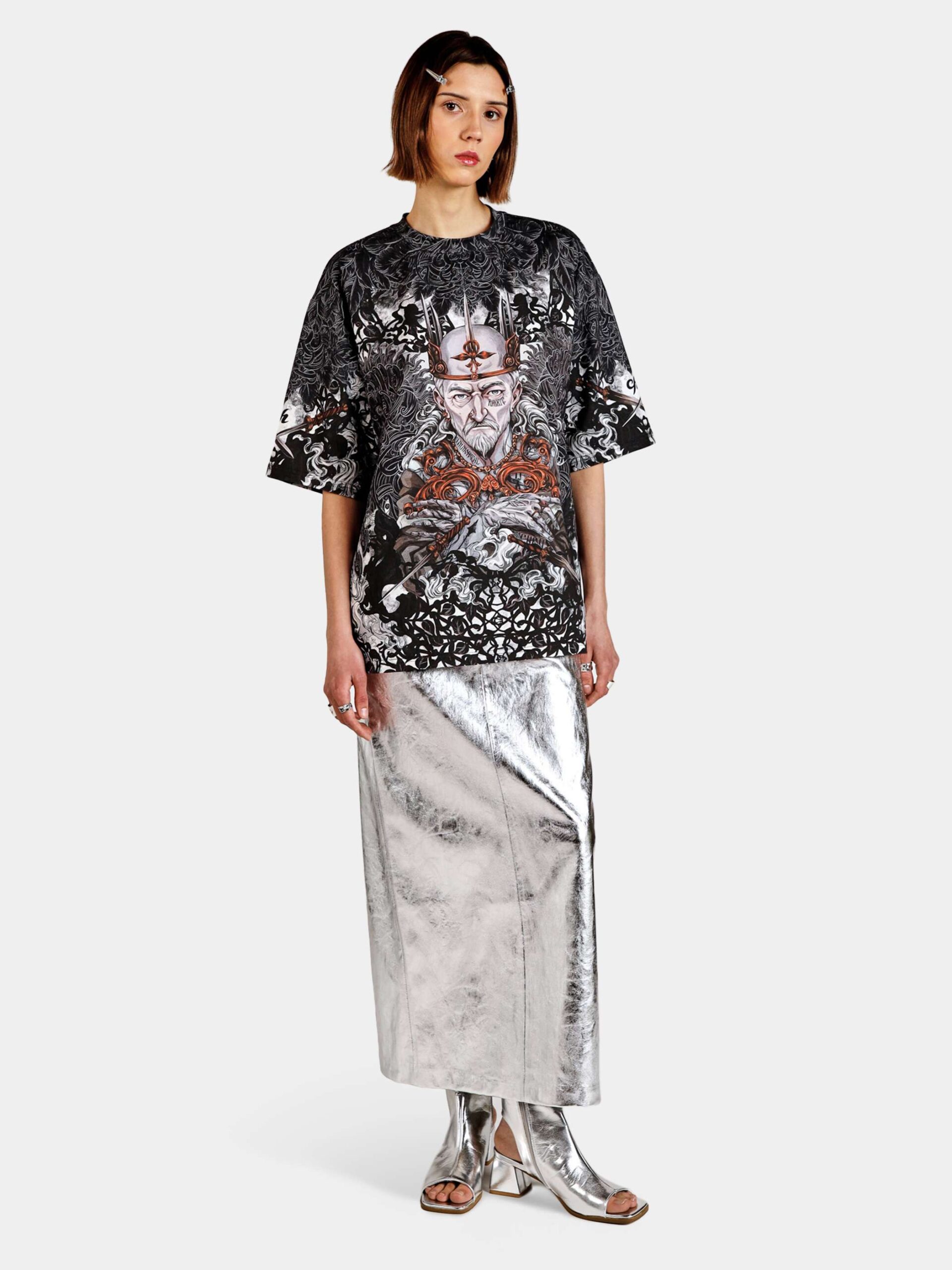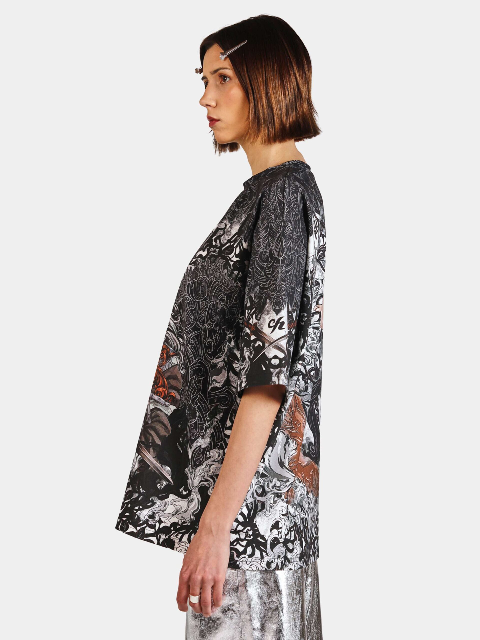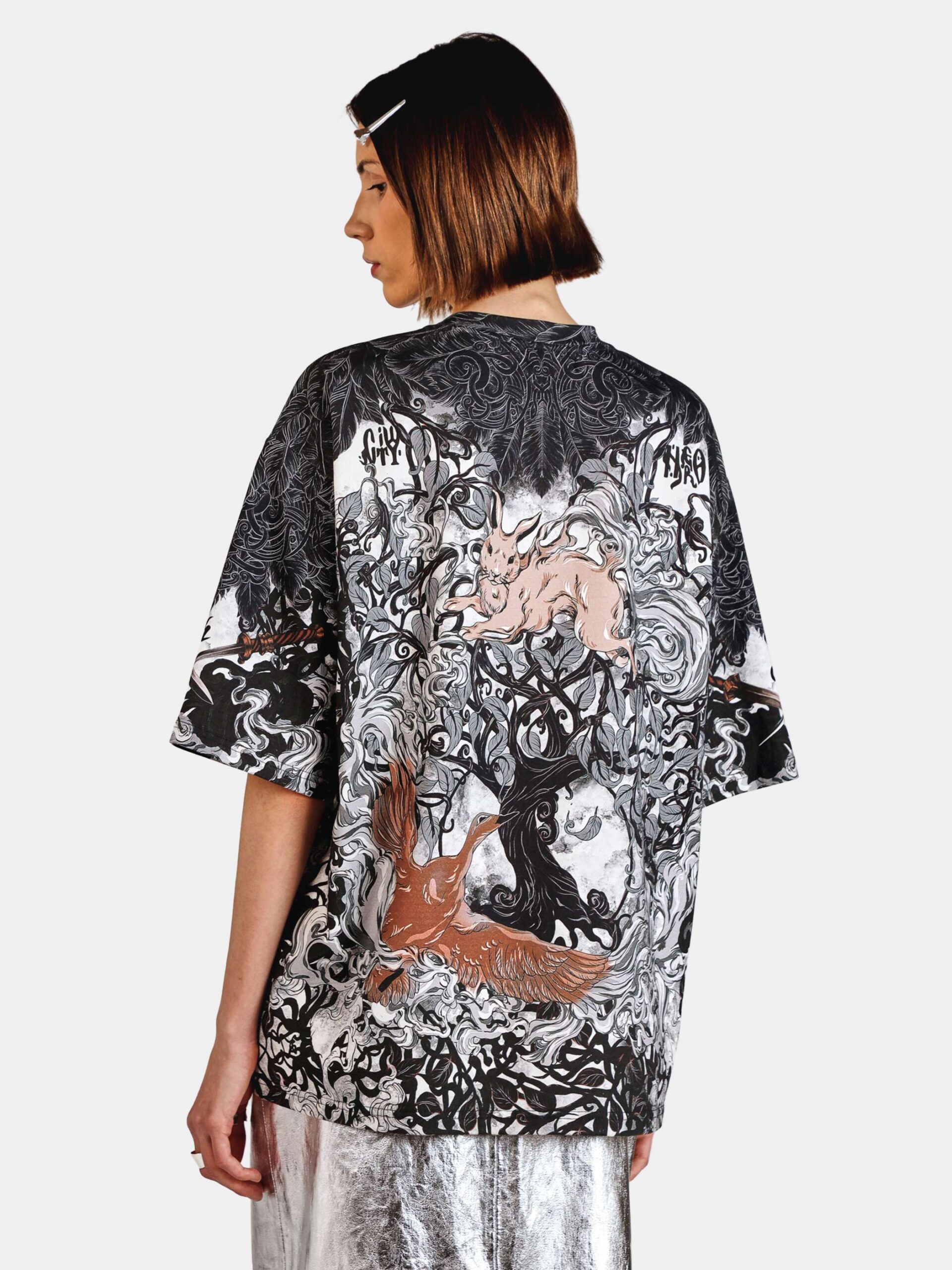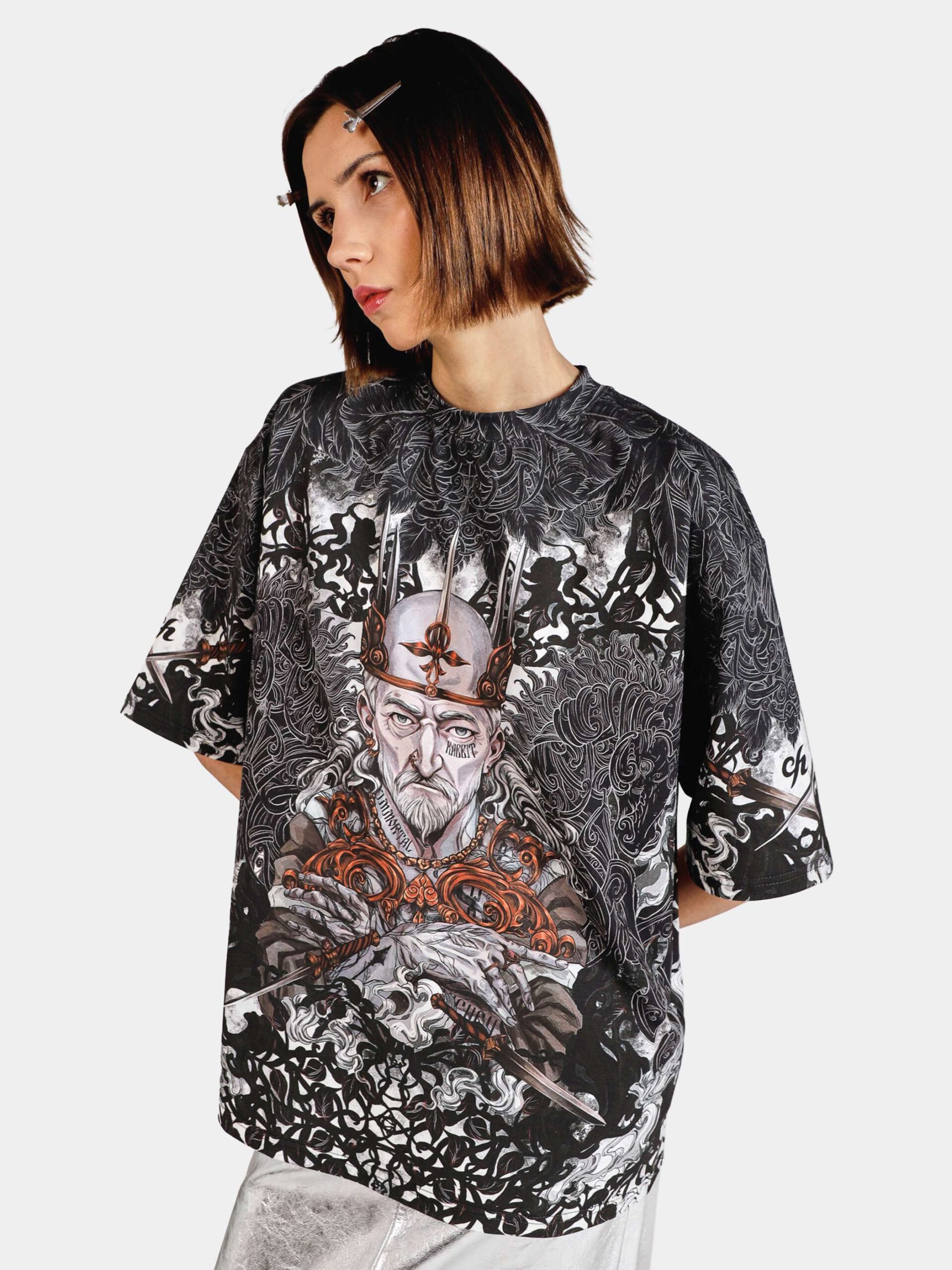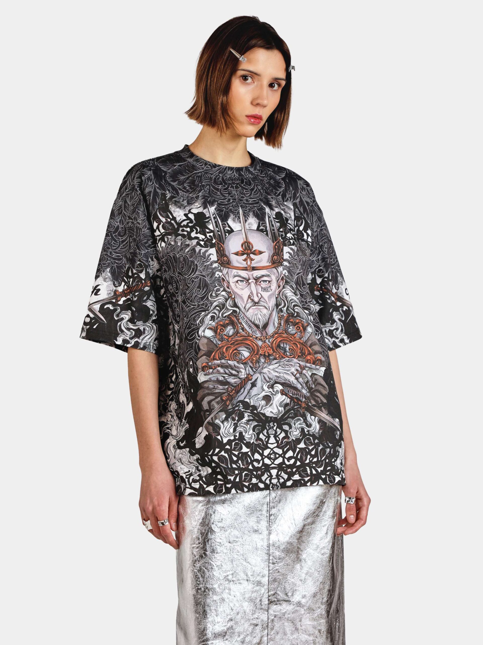 Главный бессмертный bad boy русских сказок, мимо истории которого мы просто не смогли пройти — это, конечно, Кощей. Футболка идеально впишется даже в гардероб любителей минимализма и dark fashion — за счёт лаконичной цветовой палитры и гармонично проработанной фоновой иллюстрации. Ну, а уникальное современное прочтение сюжета нашей мастерской — отдельный вид искусства 😉 Футболка второго поколения в стиле интеллиджент оверсайз.
