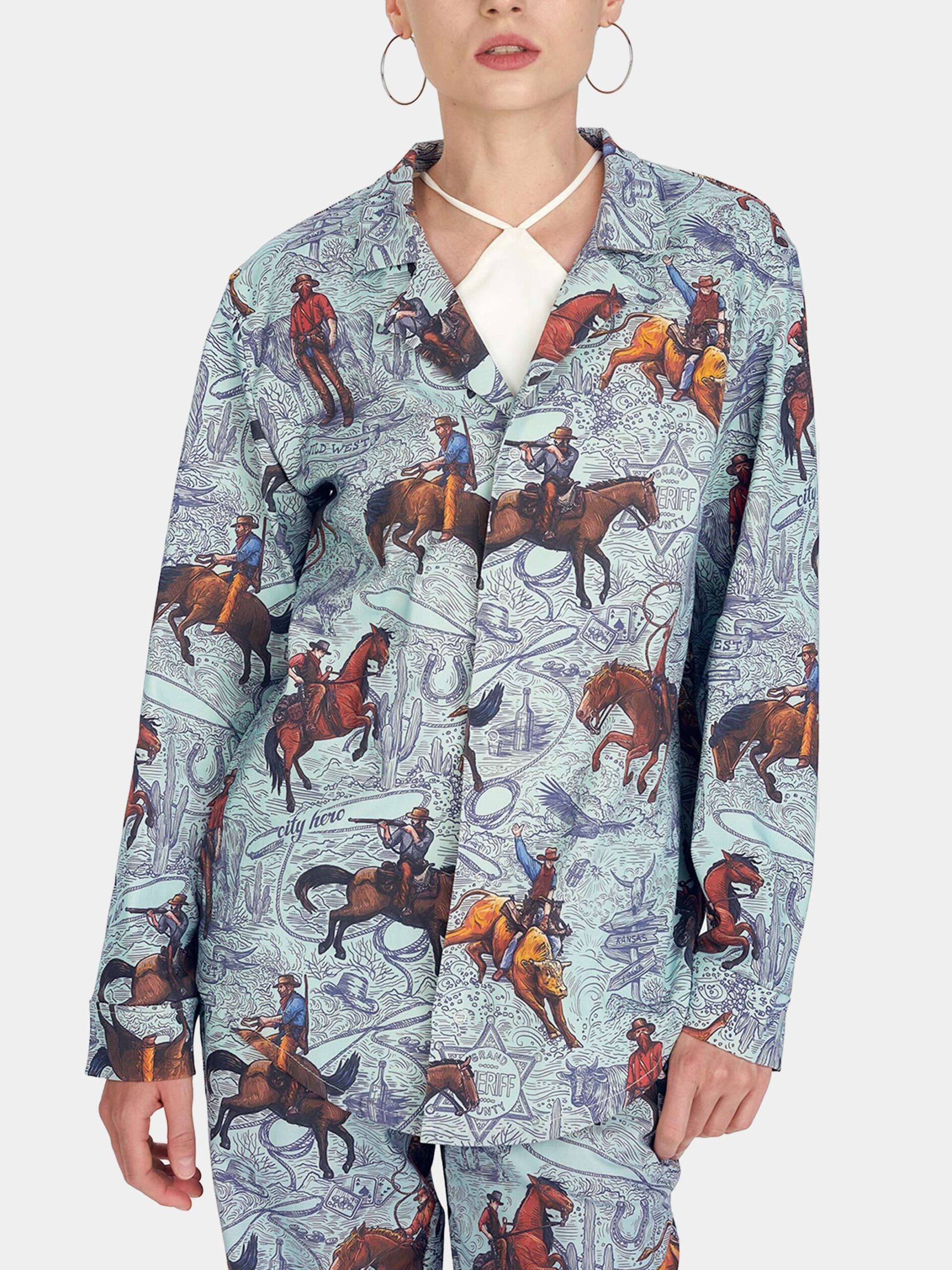 Твой уличный образ достигает максимального комфорта, когда на тебе пижамный костюм «Ковбои» от CITY HERO. Пижамный стиль, придуманный специально для улицы.