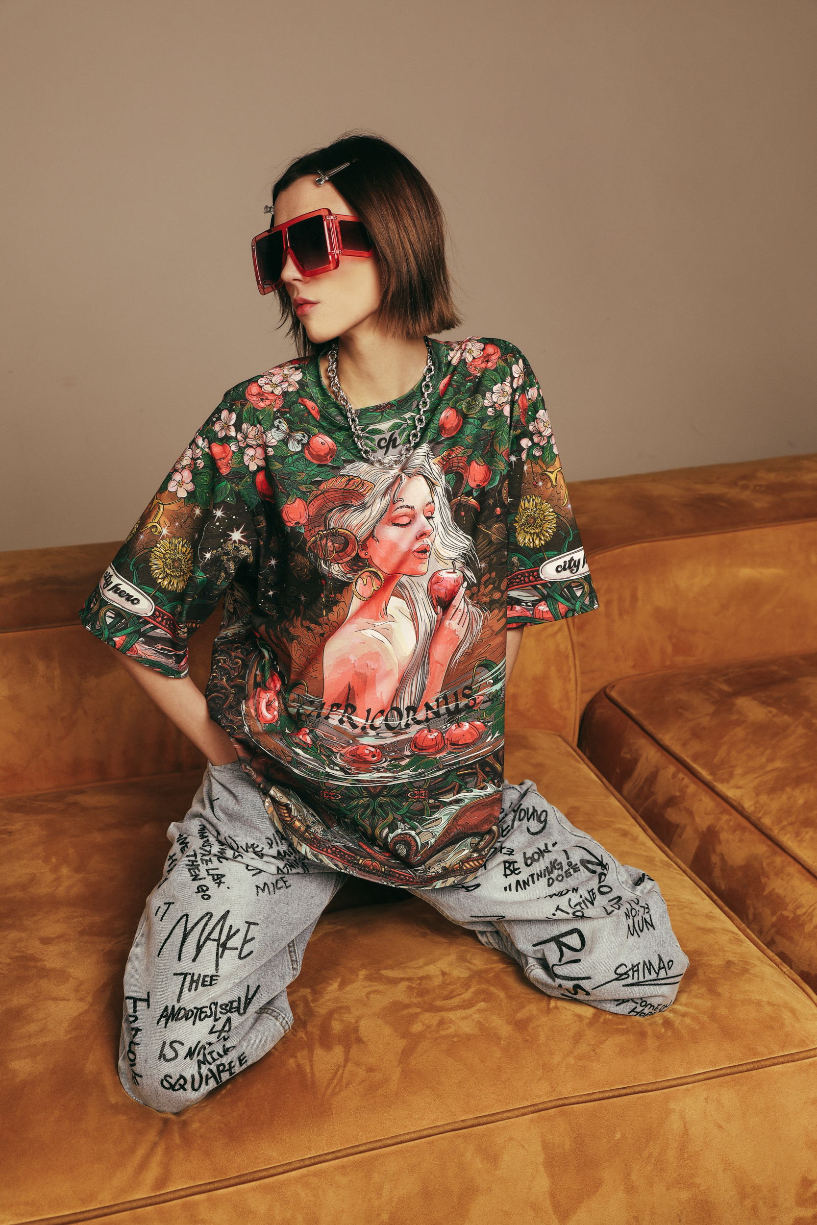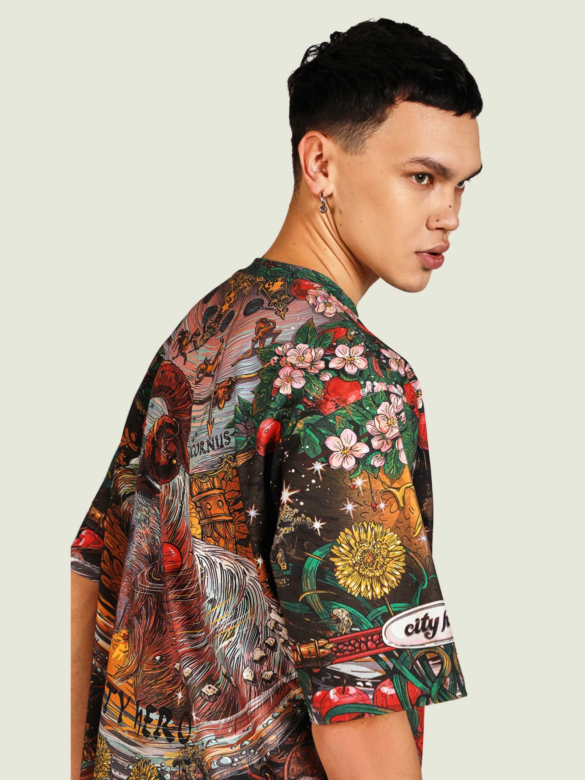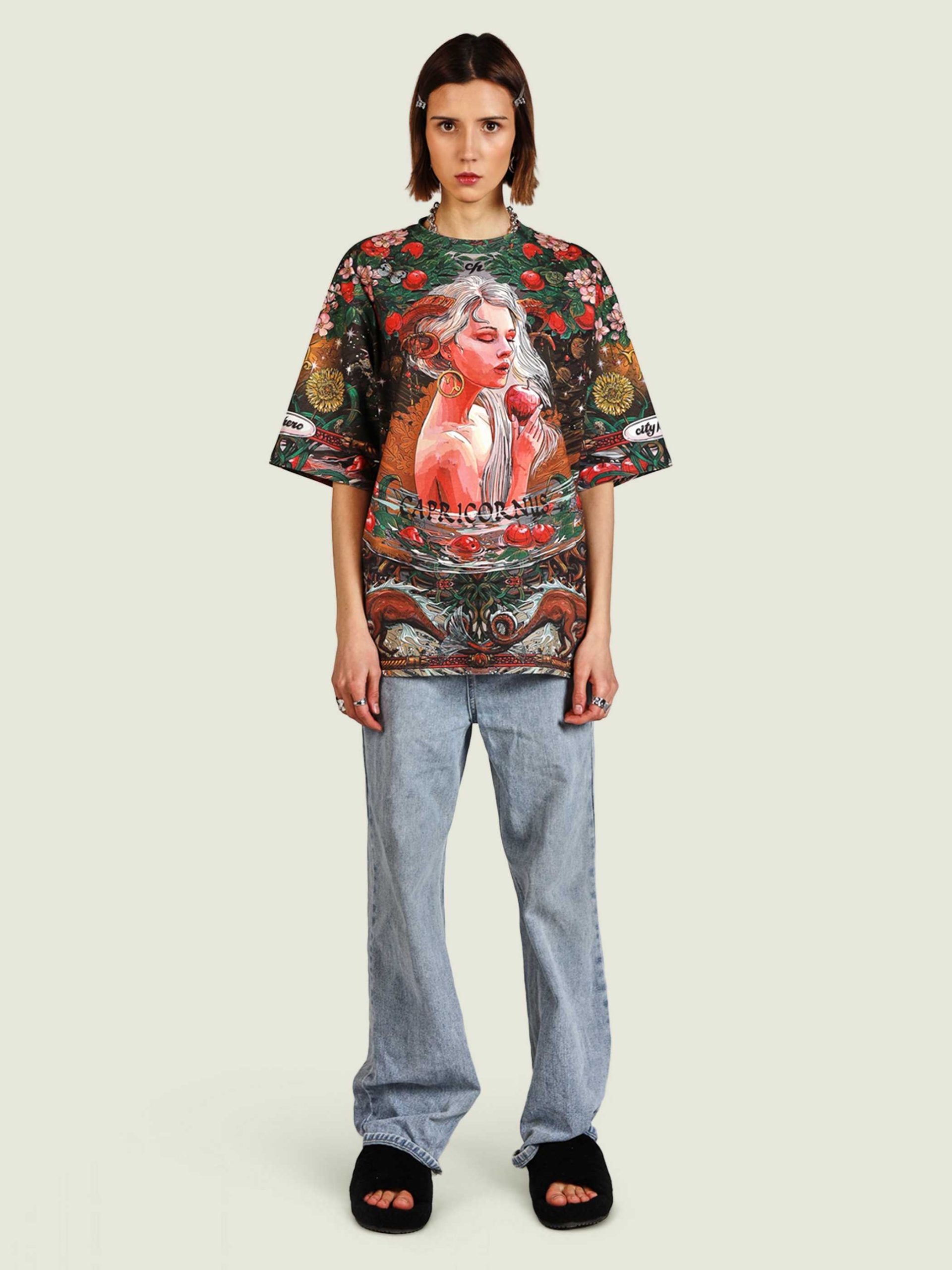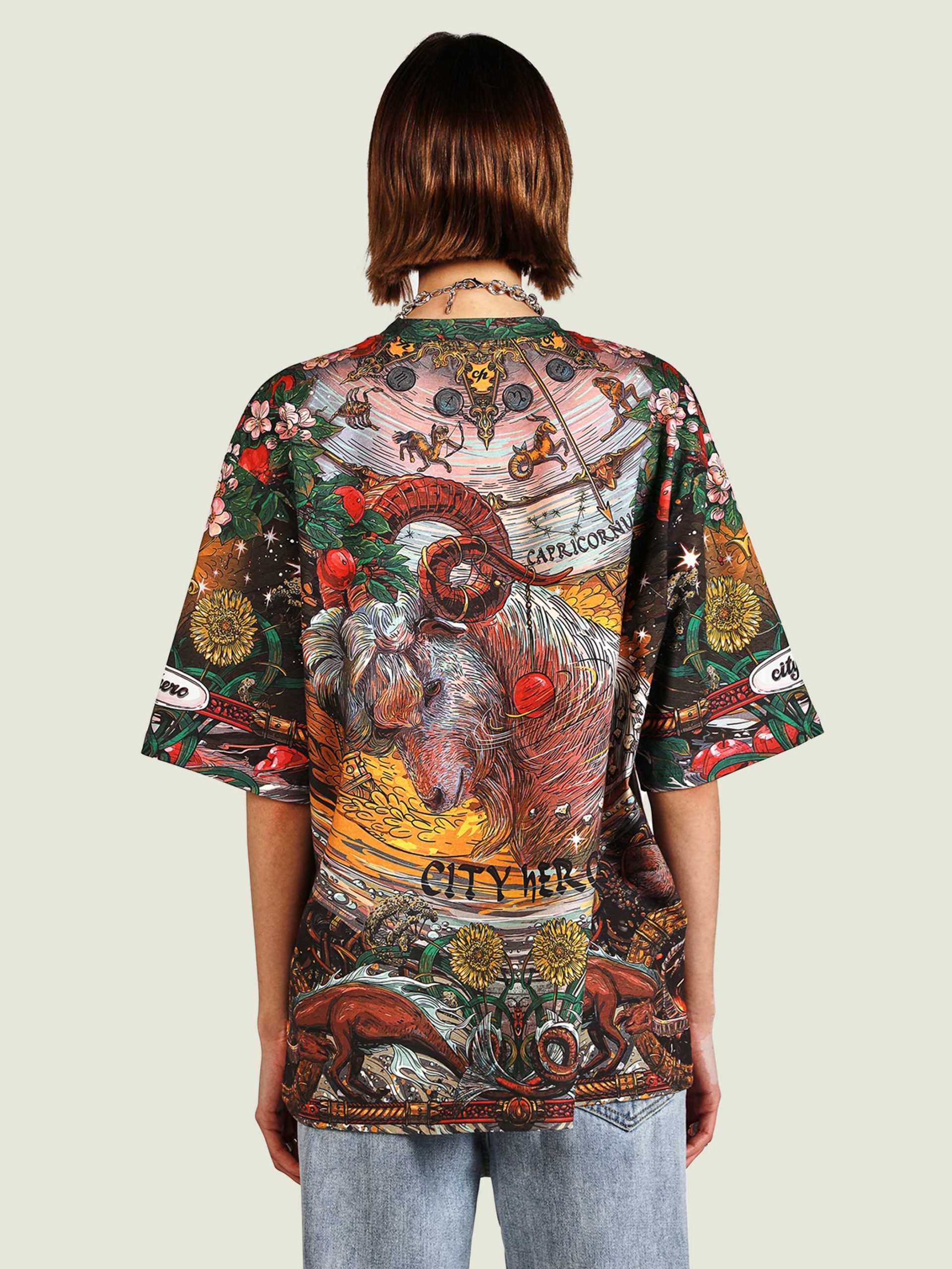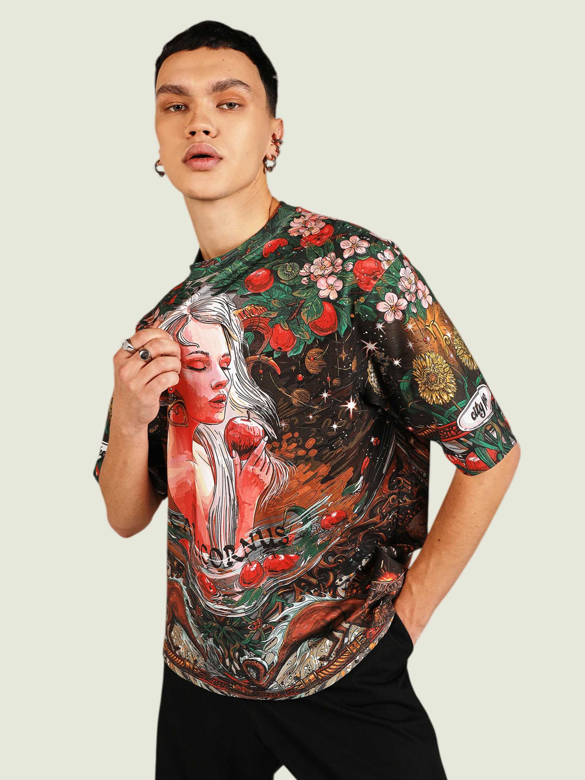 Для самых трудолюбивых и упорных козерогов мы подготовили настоящие райские сады — хоть где-то же вы должны отдохнуть!) Сочный зелёный и пьянящий красный создают ауру умиротворения и расслабления. Настоящий Эдем для трудоголика — только в CITY HERO. Футболка второго поколения в стиле интеллиджент оверсайз.