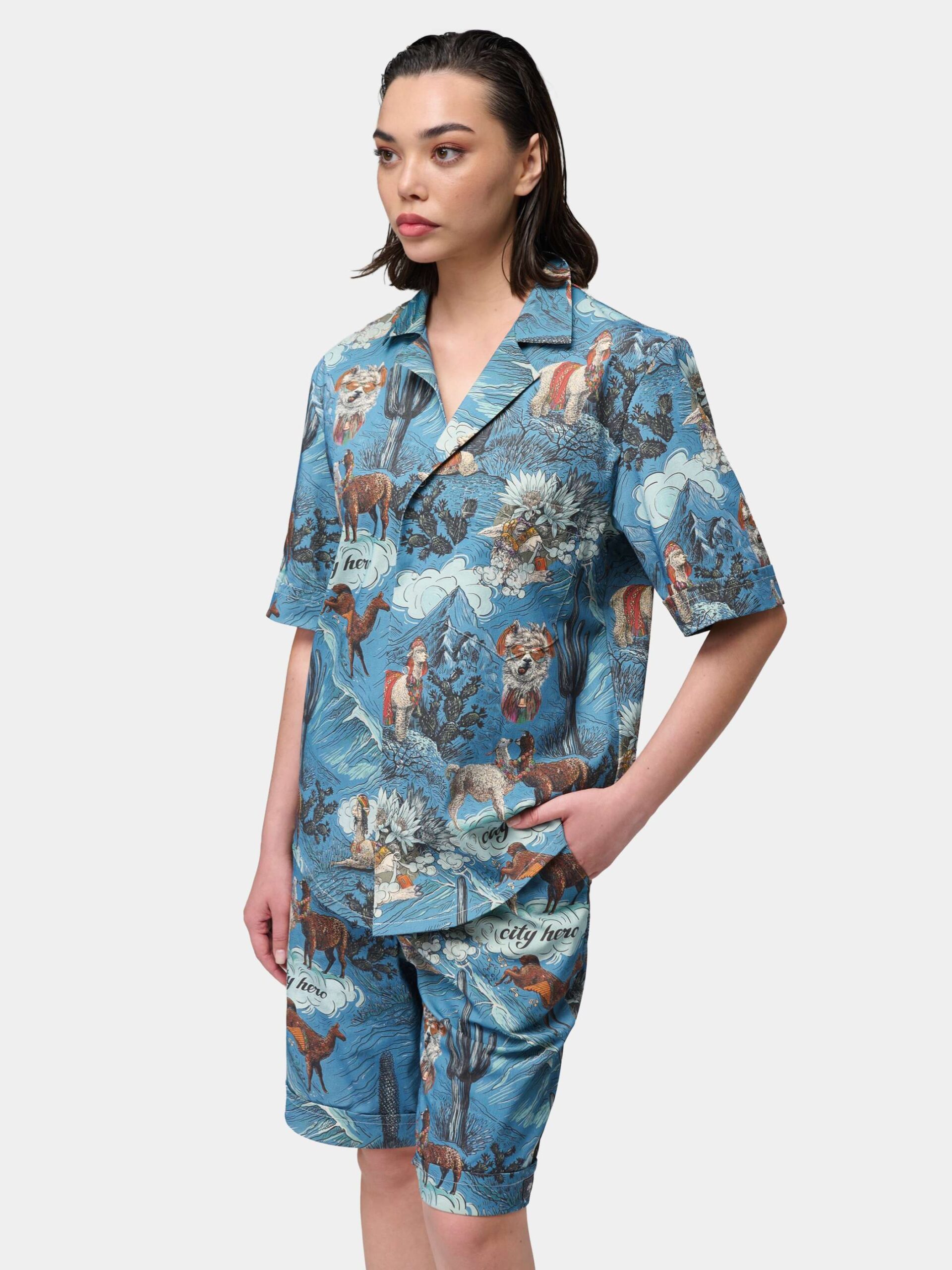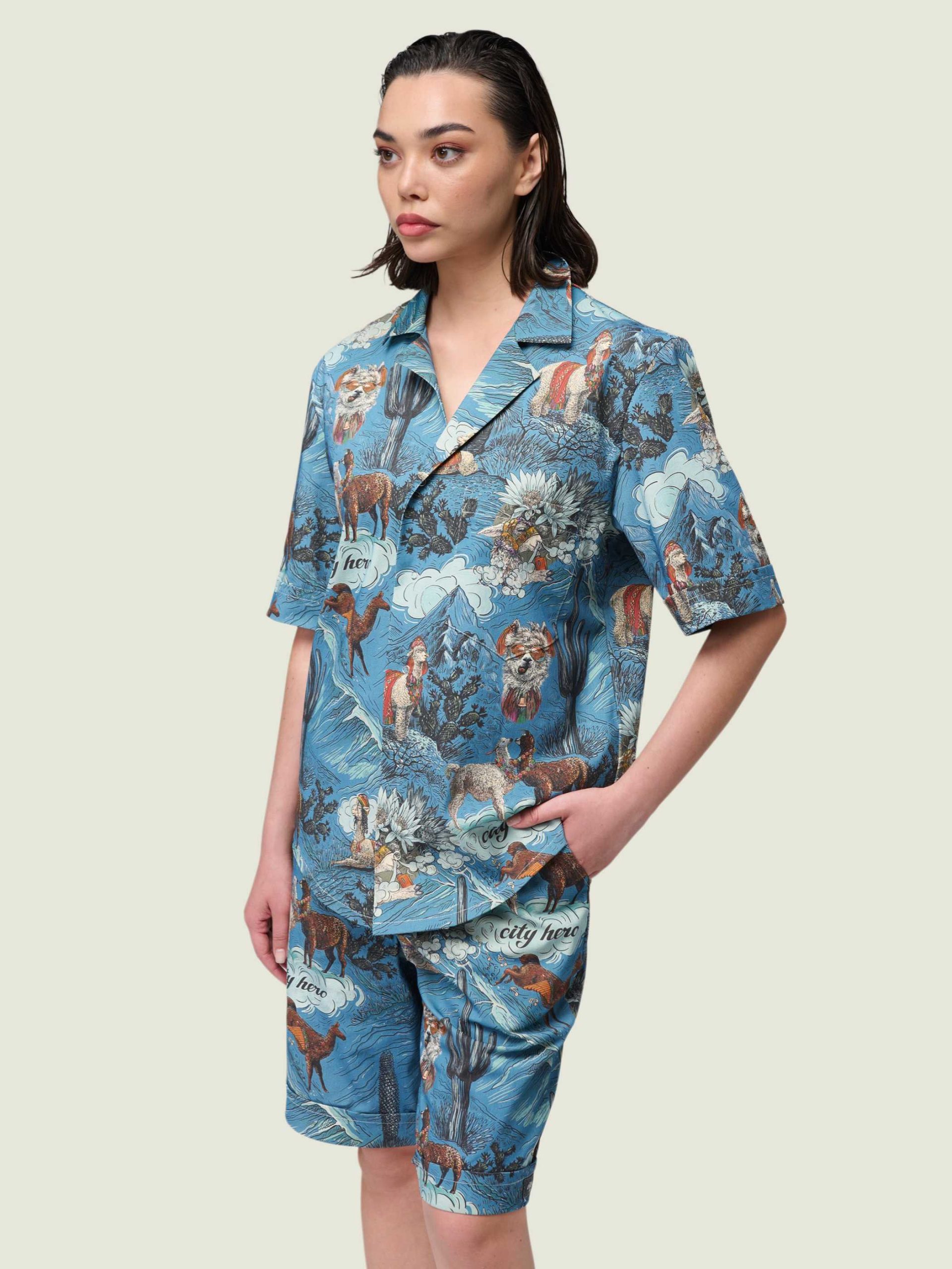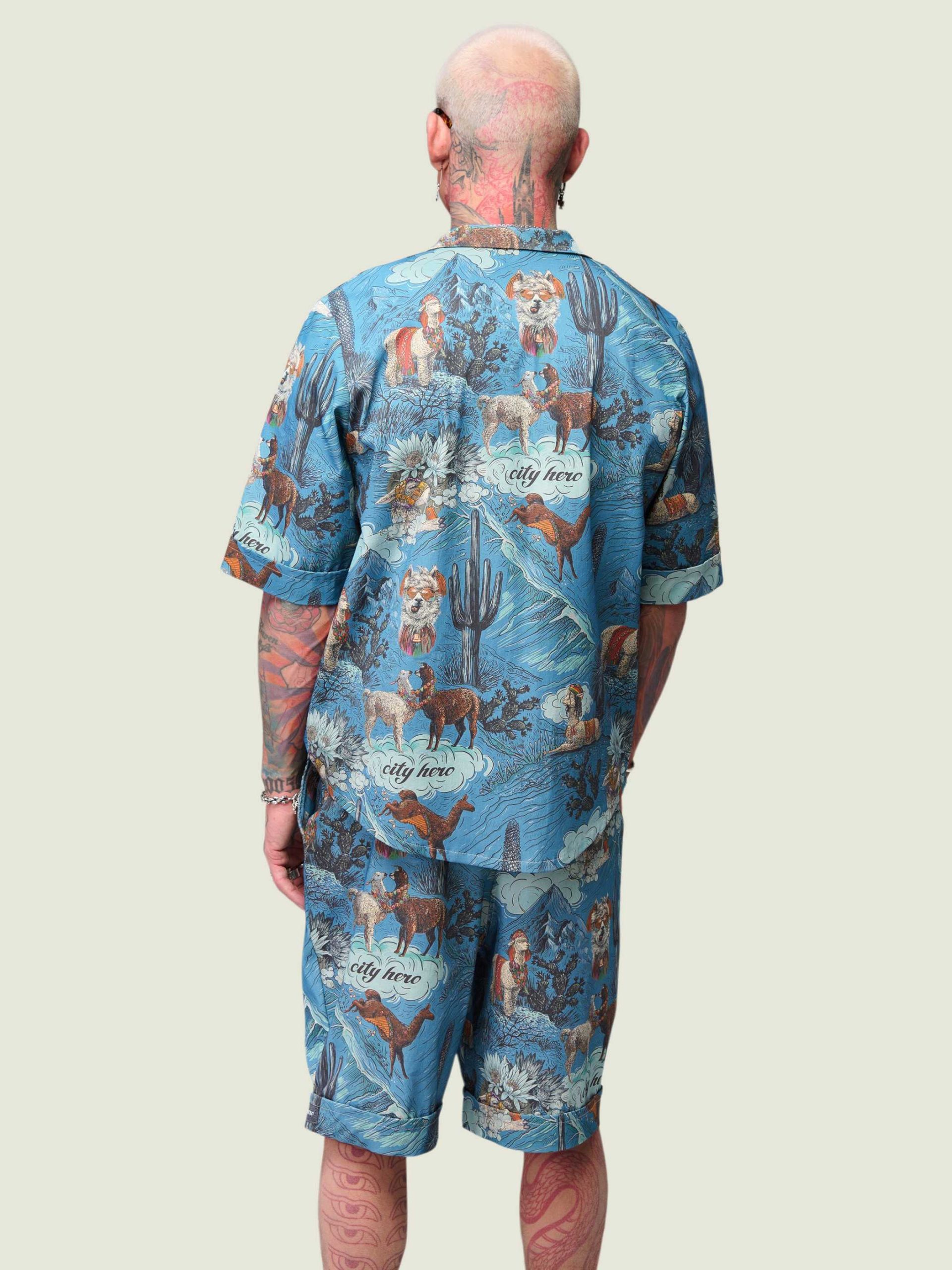 Рубашка унисекс с короткими рукавами и шортами. Фирменный авторский принт в виде лам и альпак.