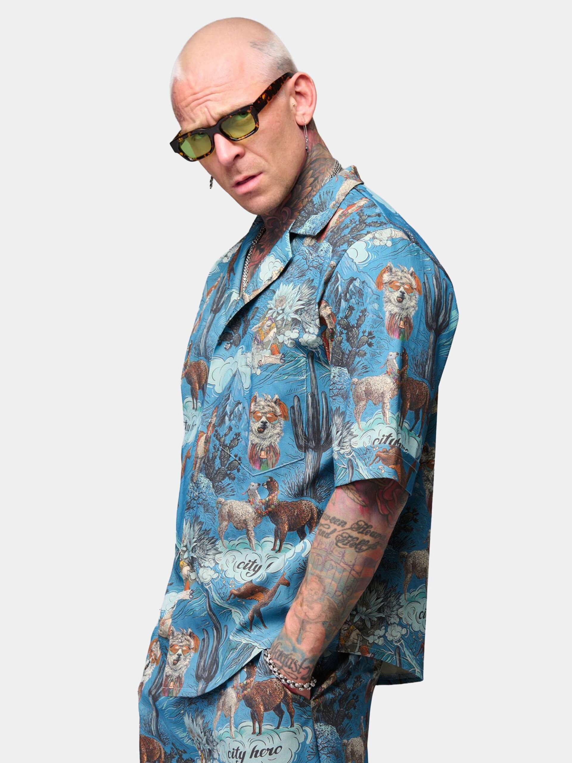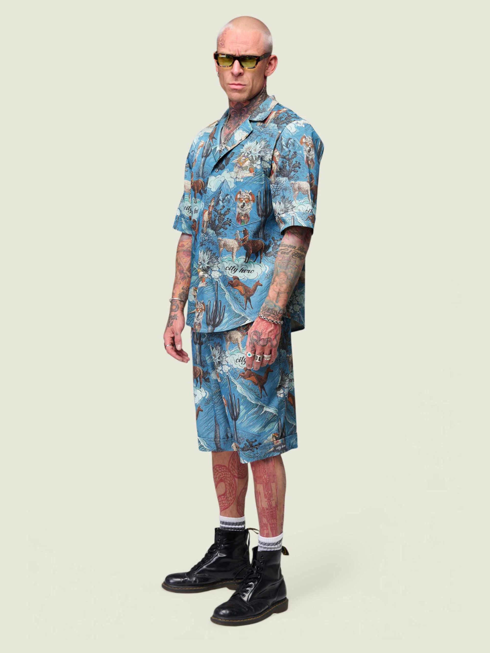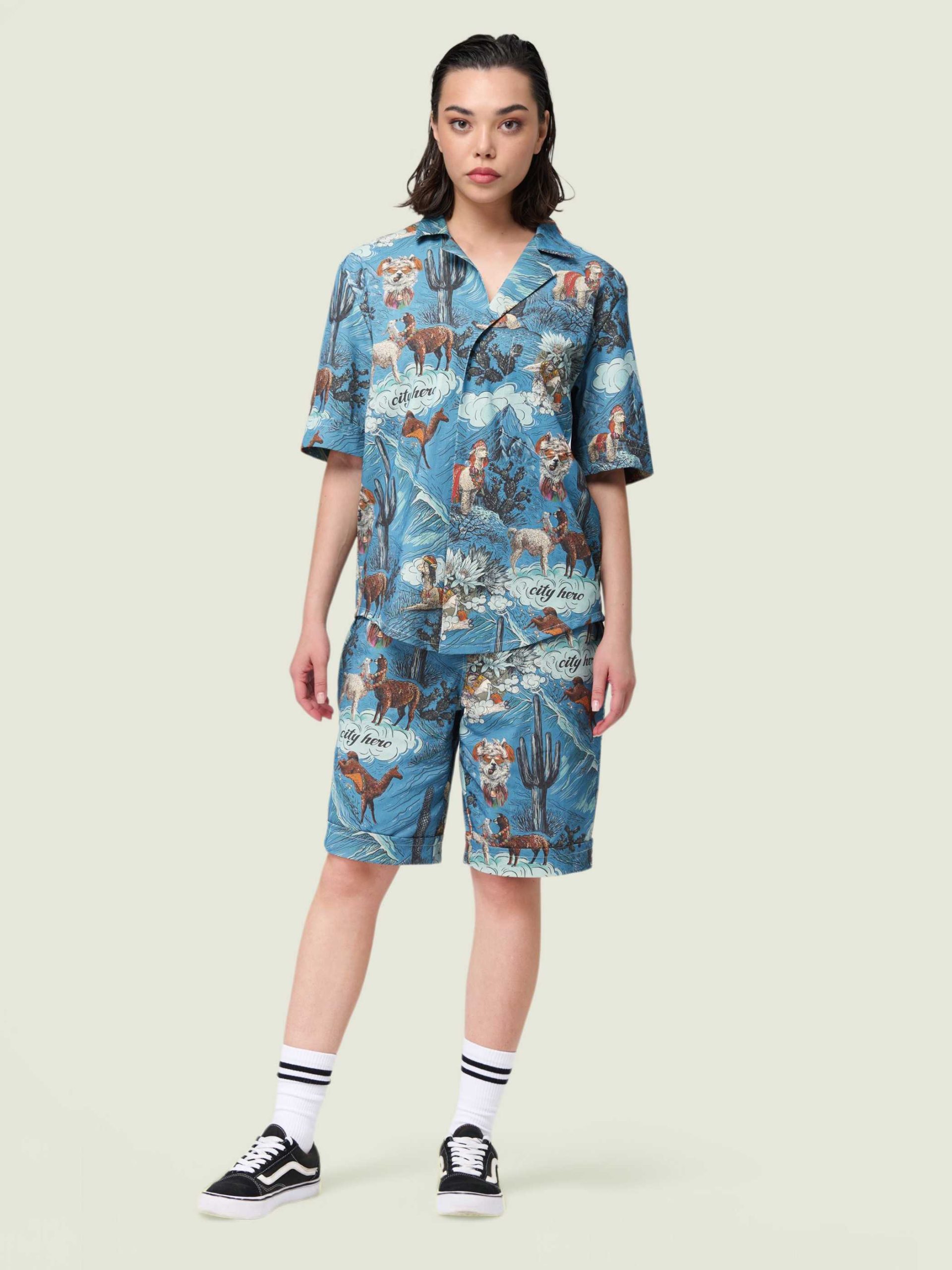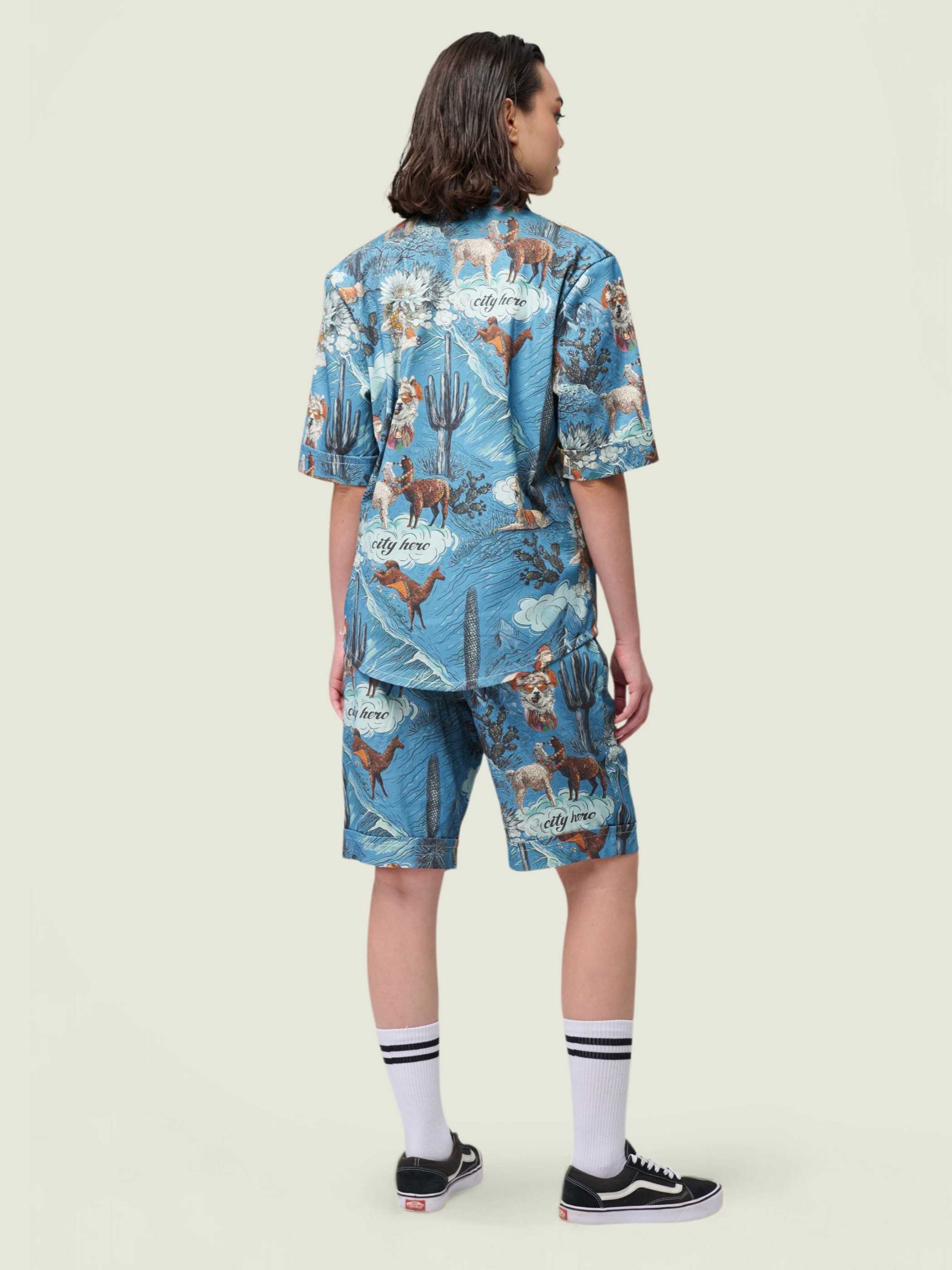 Рубашка унисекс с короткими рукавами и шортами. Фирменный авторский принт в виде лам и альпак.