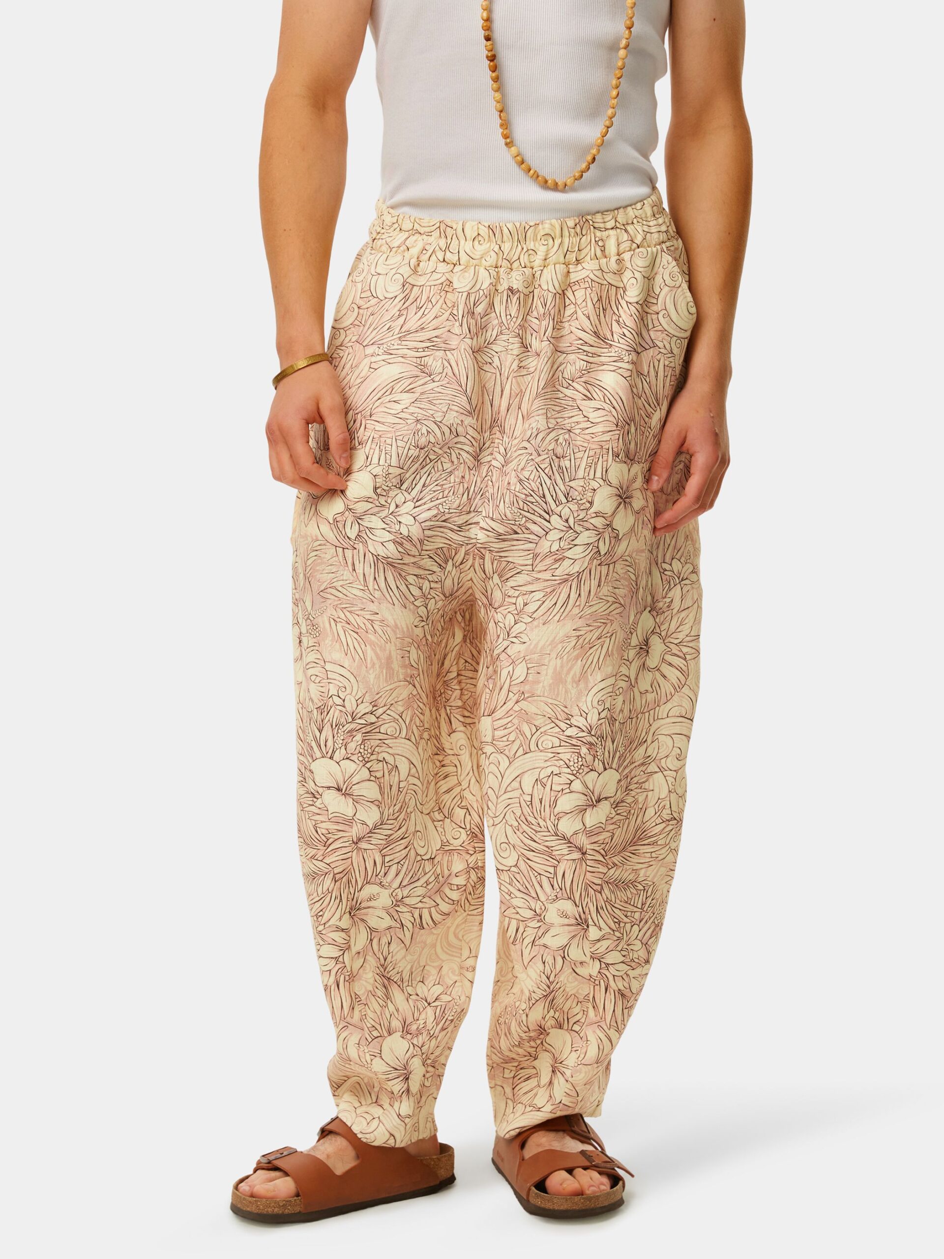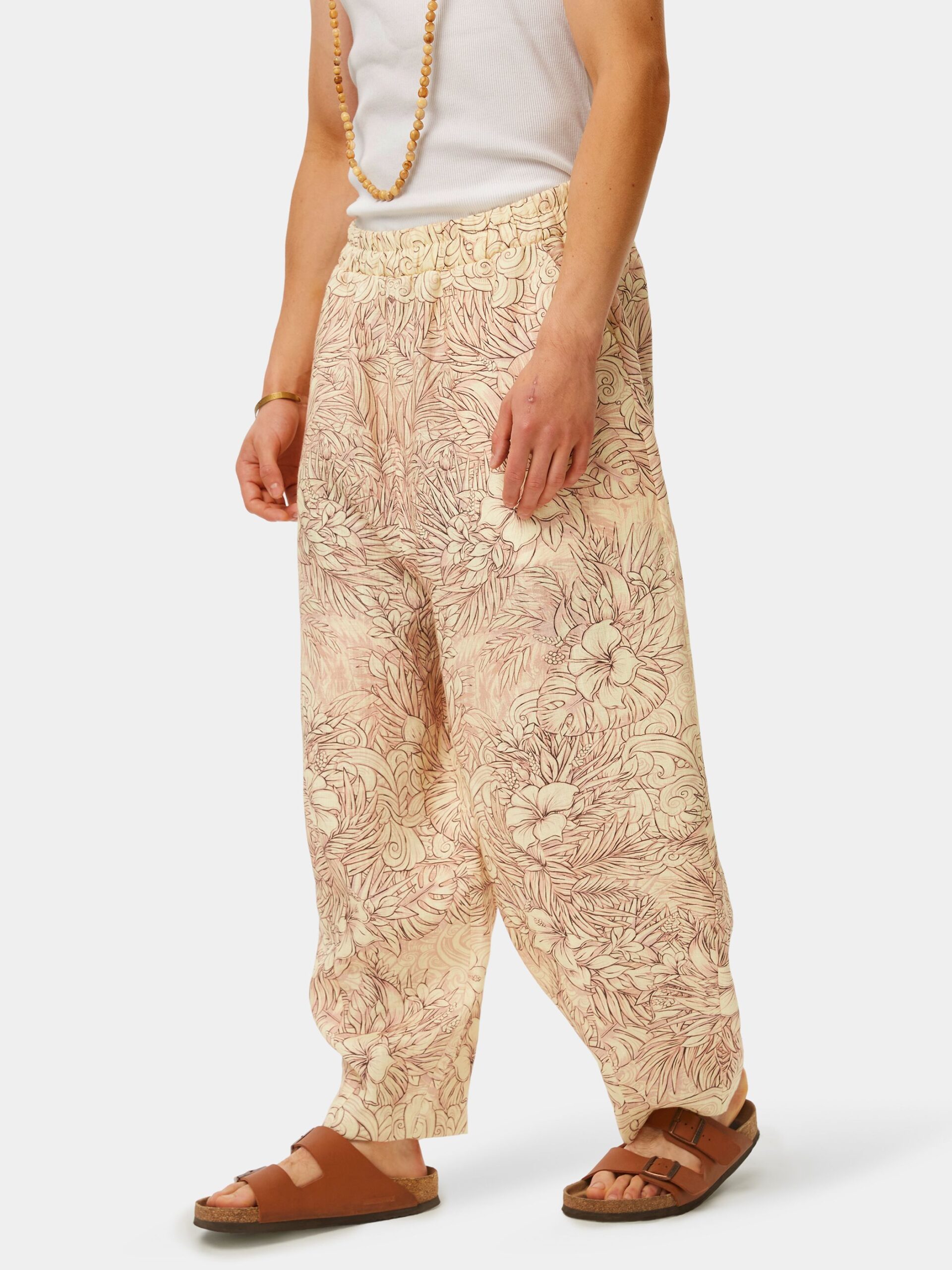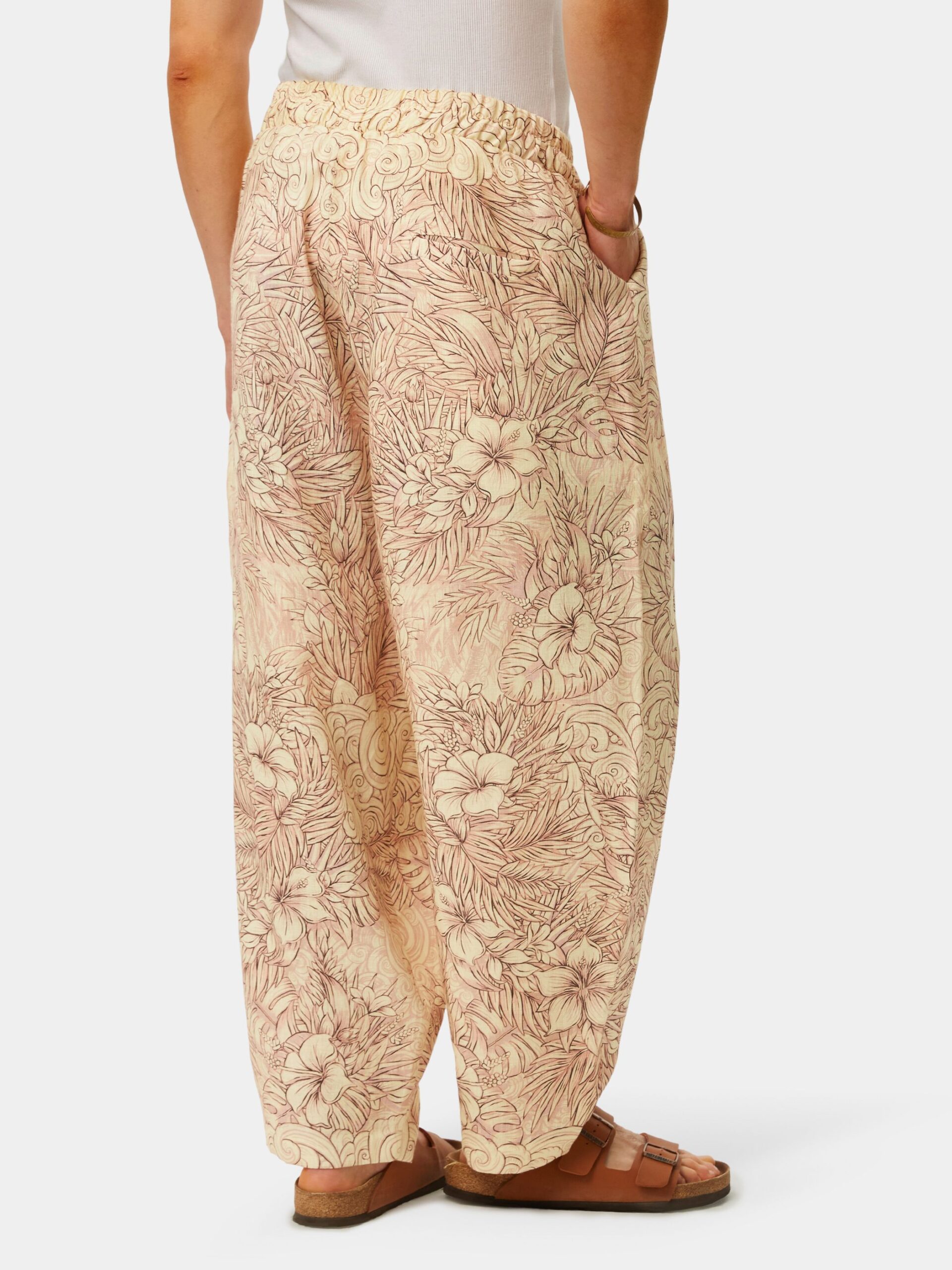 Когда хочется комфорта и нежности. Изящная графика, мягкие зефирные оттенки, облака, пальмы и тропические цветы. Брюки из натурального льна в стиле оверсайз.