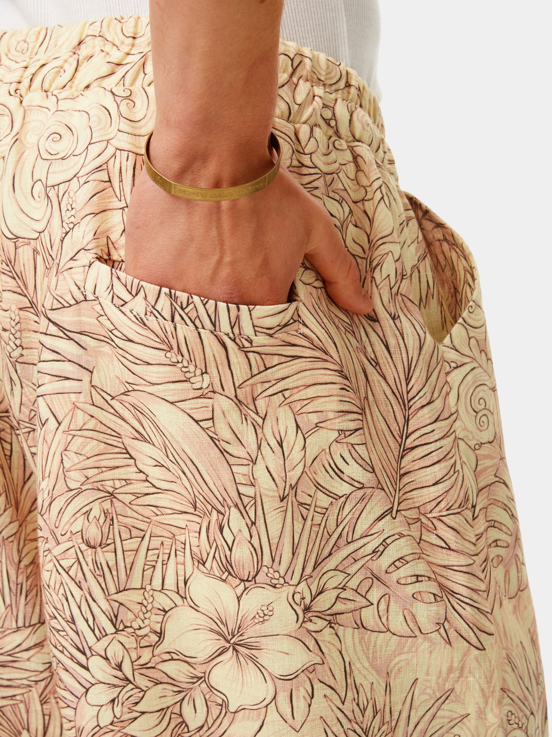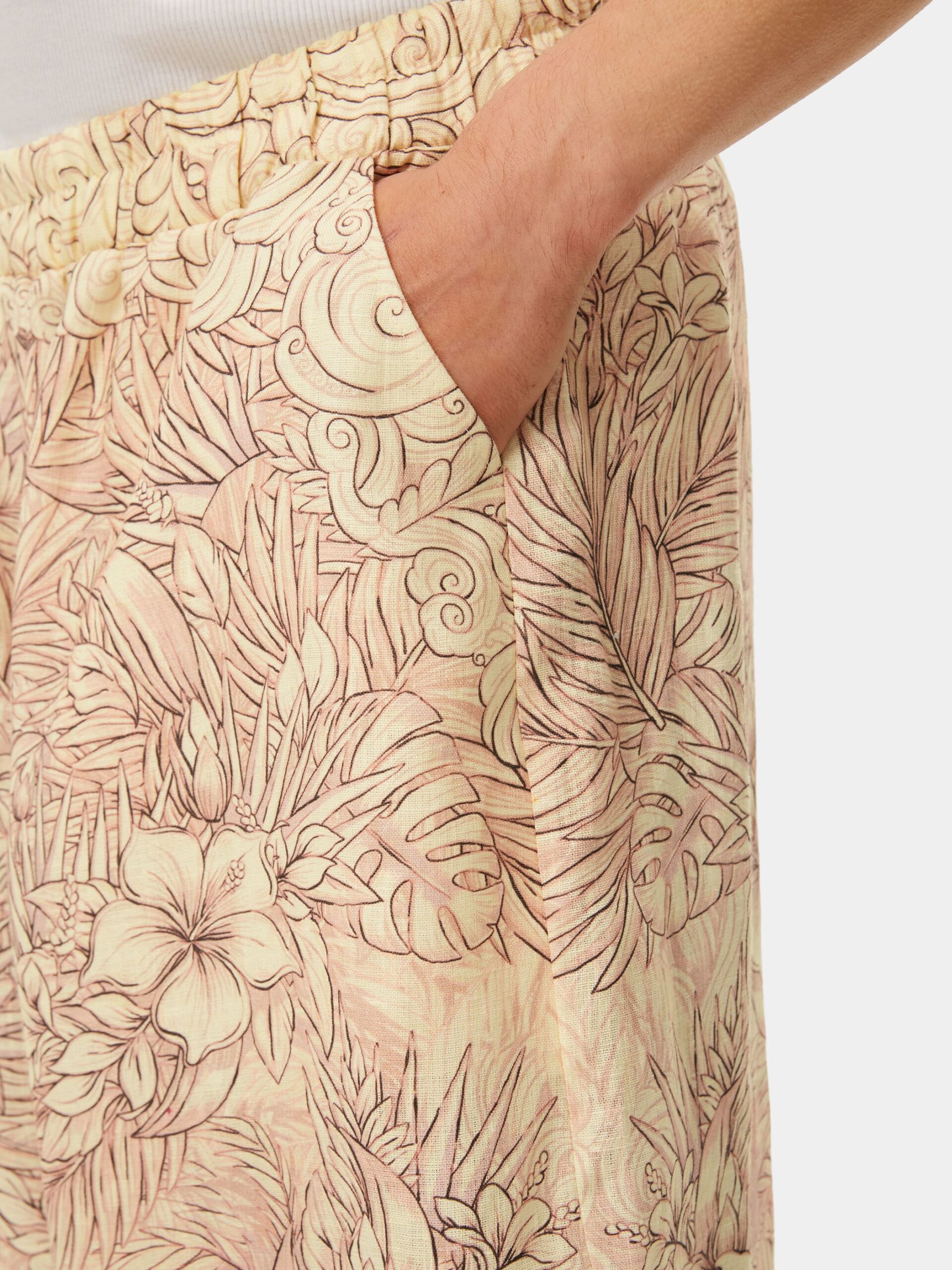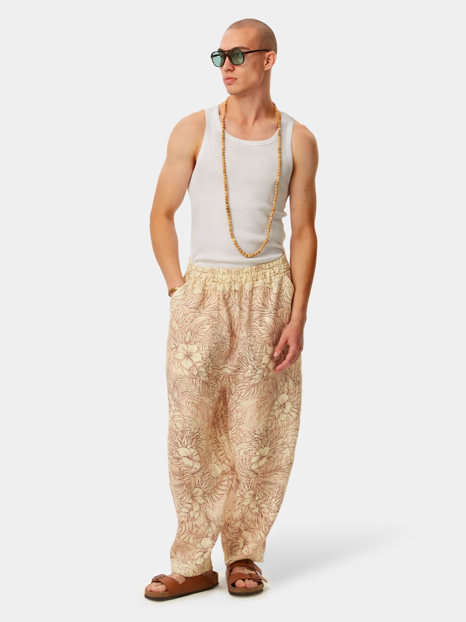 Когда хочется комфорта и нежности. Изящная графика, мягкие зефирные оттенки, облака, пальмы и тропические цветы. Брюки из натурального льна в стиле оверсайз.