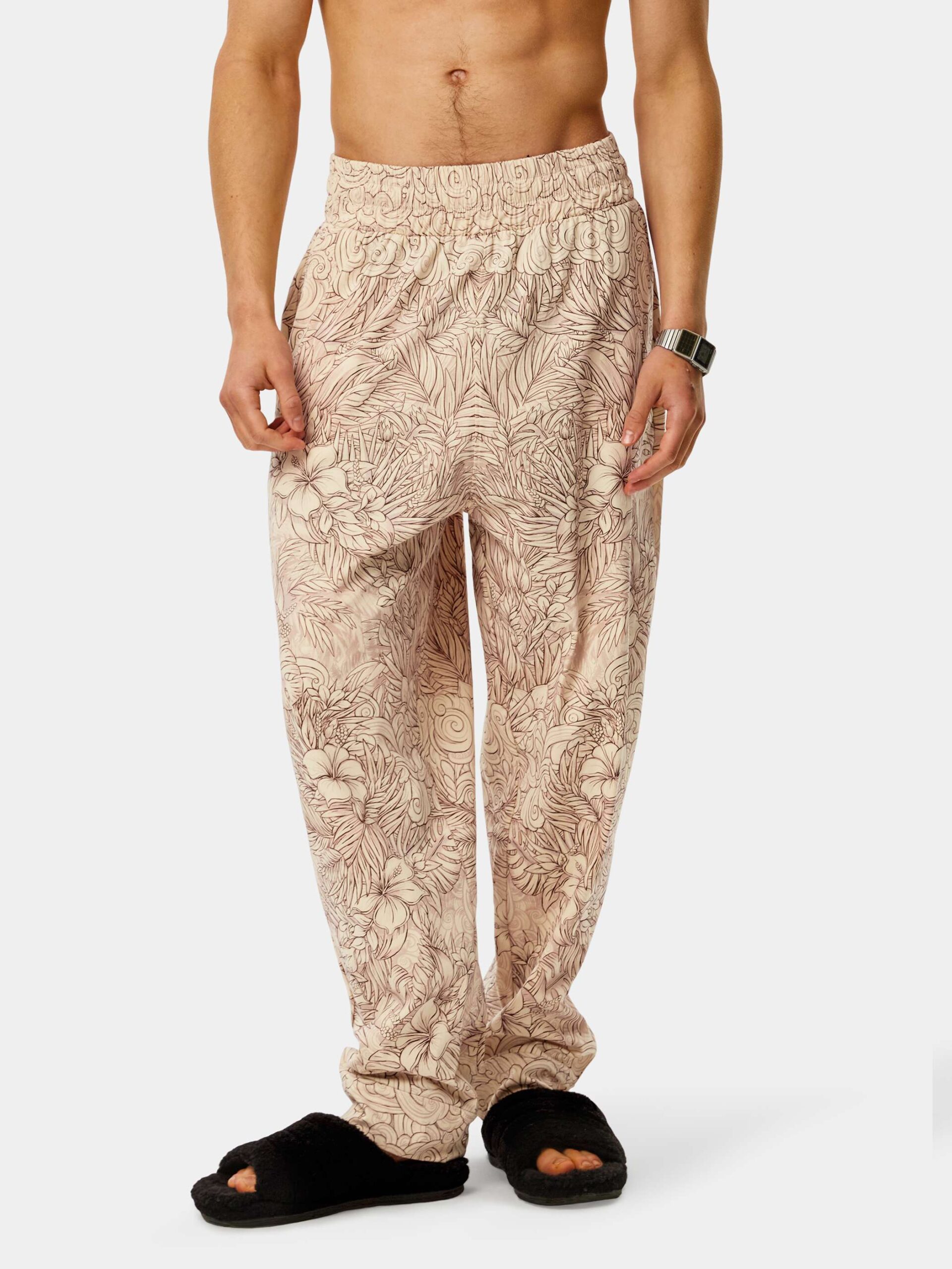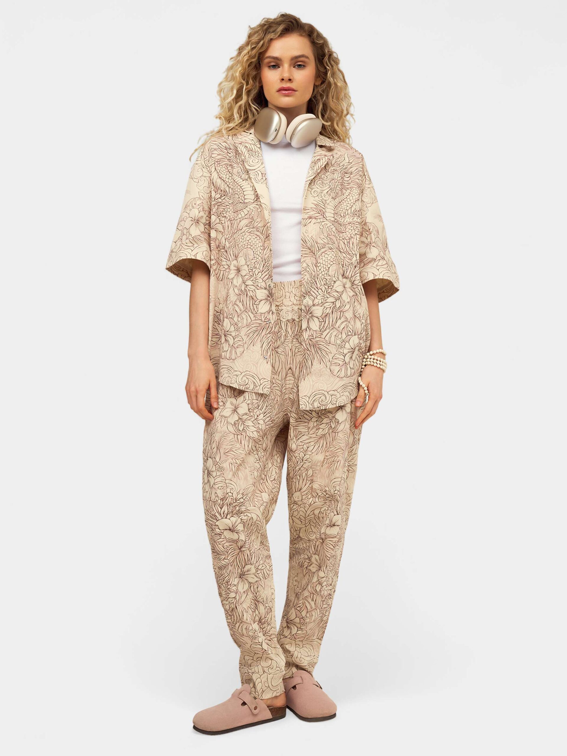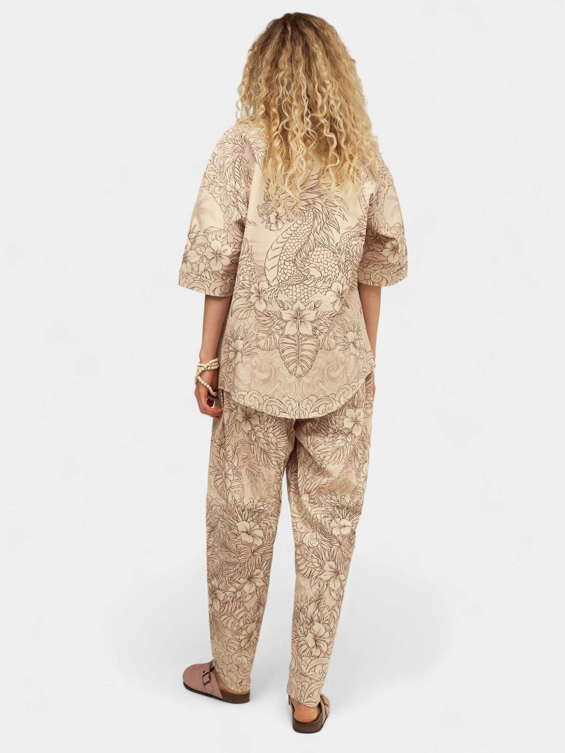 Когда хочется комфорта и нежности. Изящная графика, мягкие зефирные оттенки, могучие и добрые драконы в окружении пальм и цветов. Брюки второго поколения в стиле оверсайз.