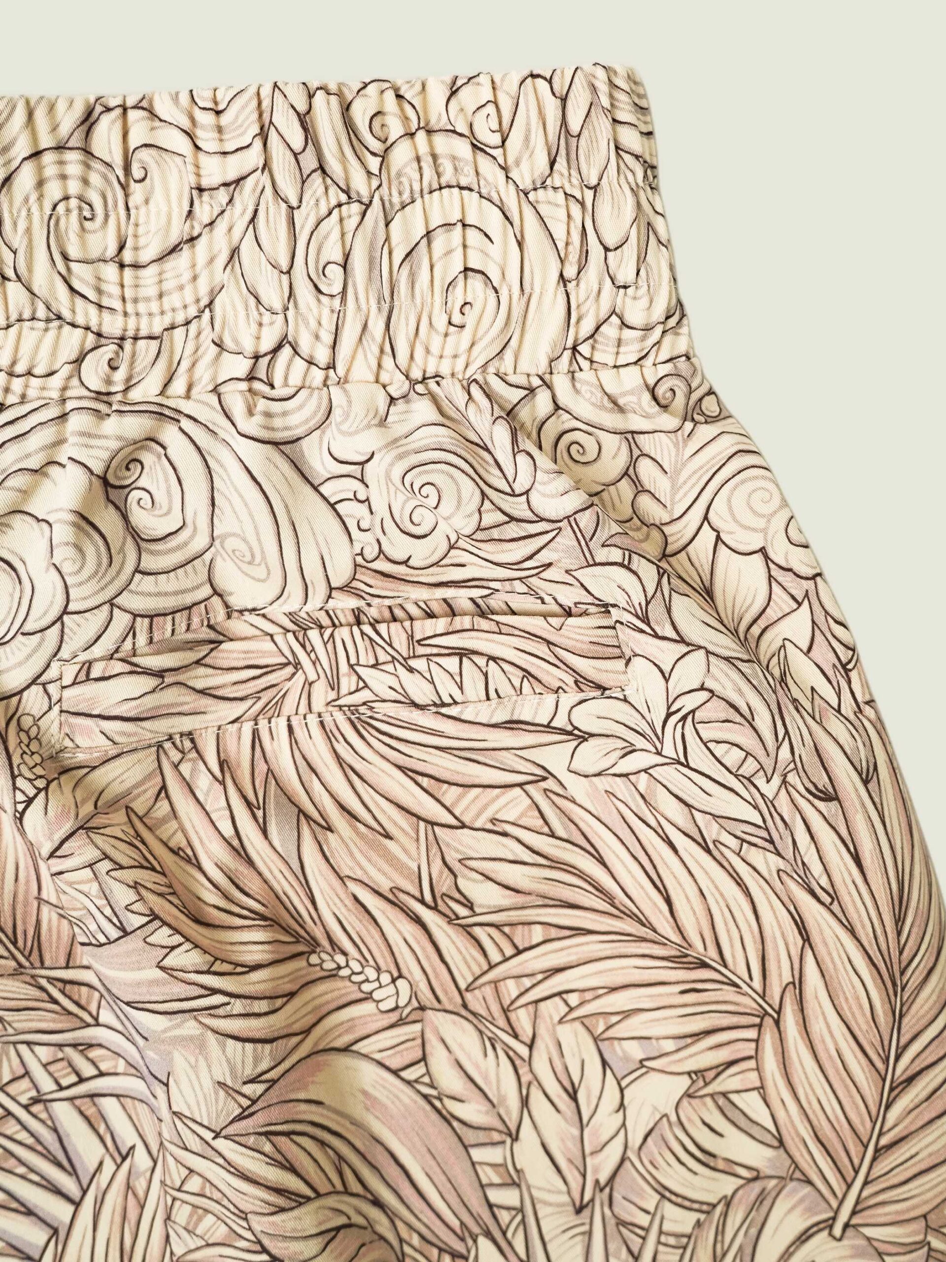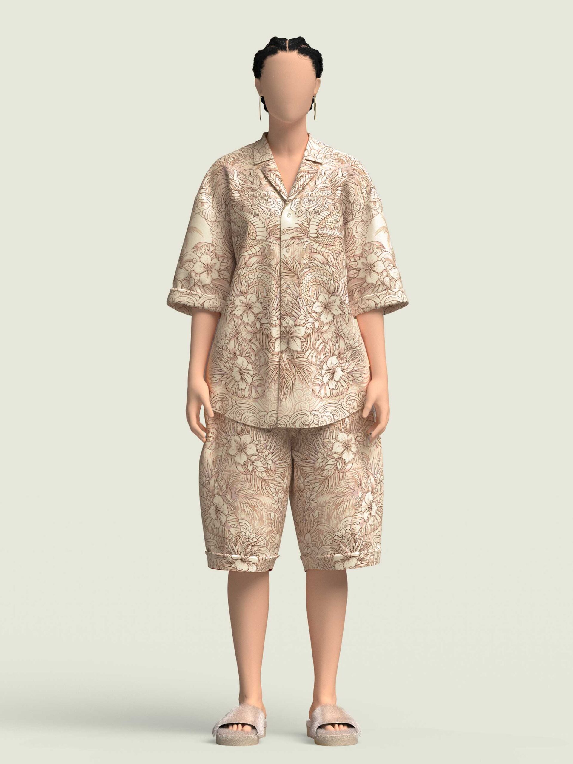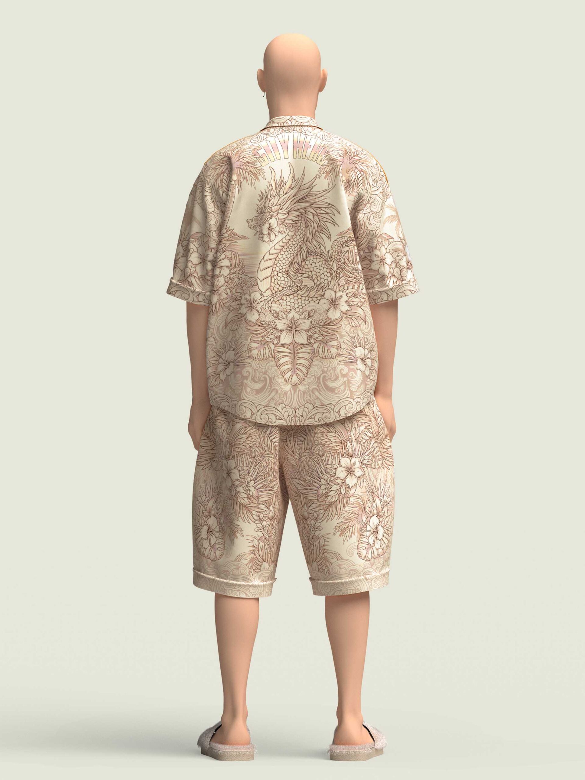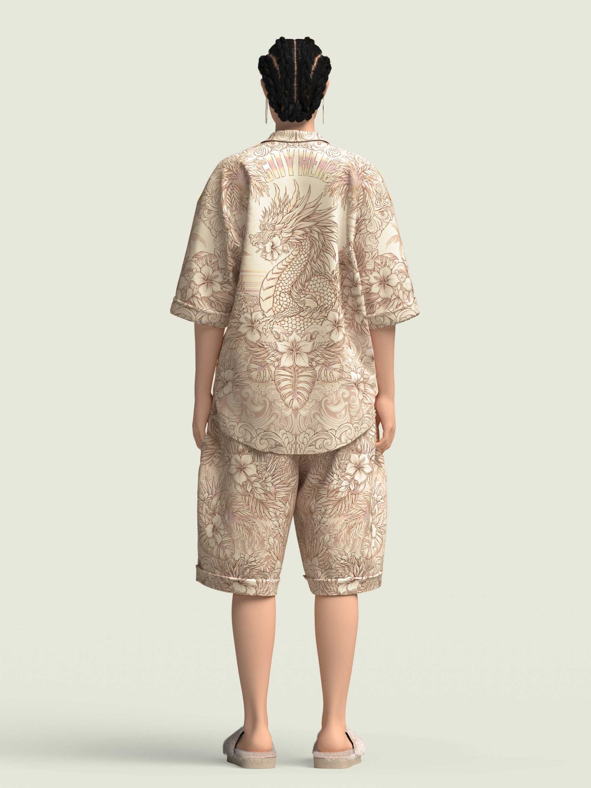 Когда хочется комфорта и нежности. Изящная графика, мягкие зефирные оттенки, могучие и добрые драконы в окружении пальм и цветов. Уличная пижама с короткими рукавами и шортами в стиле оверсайз.