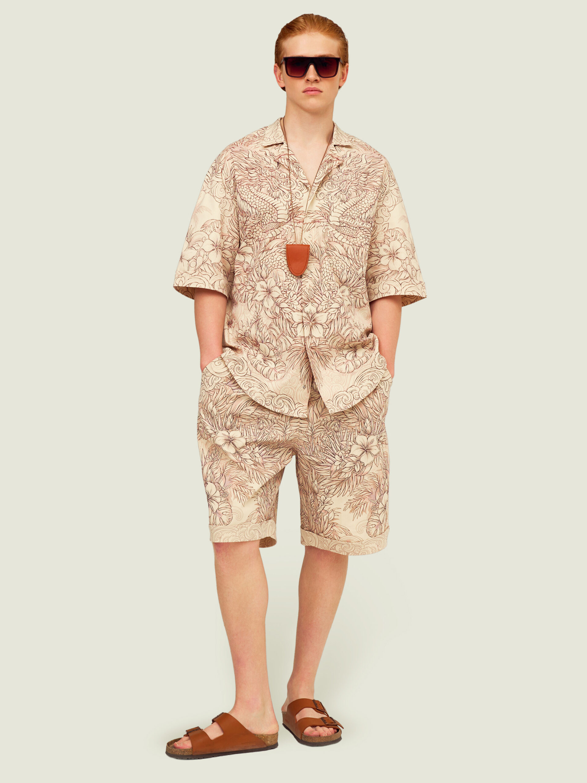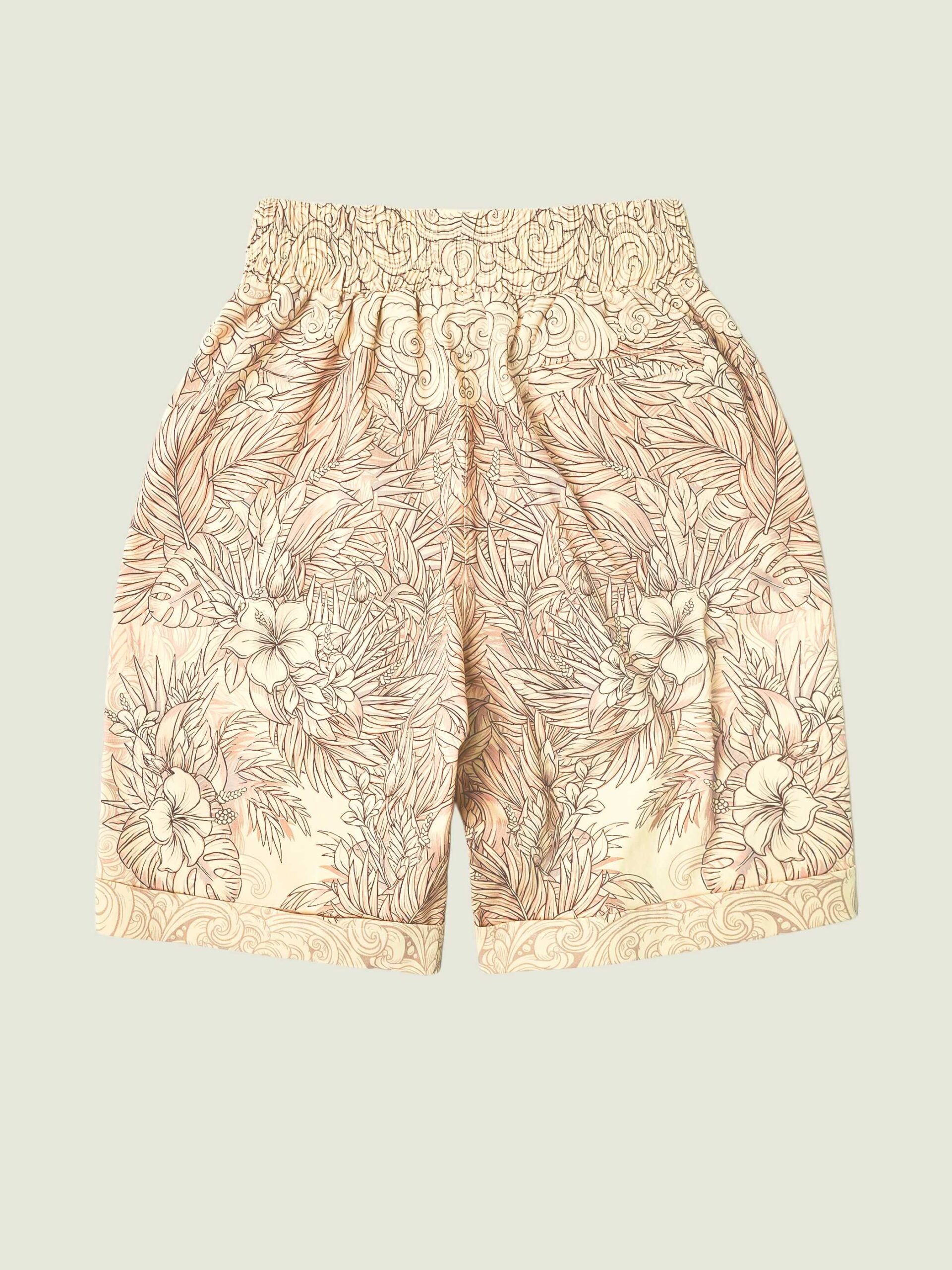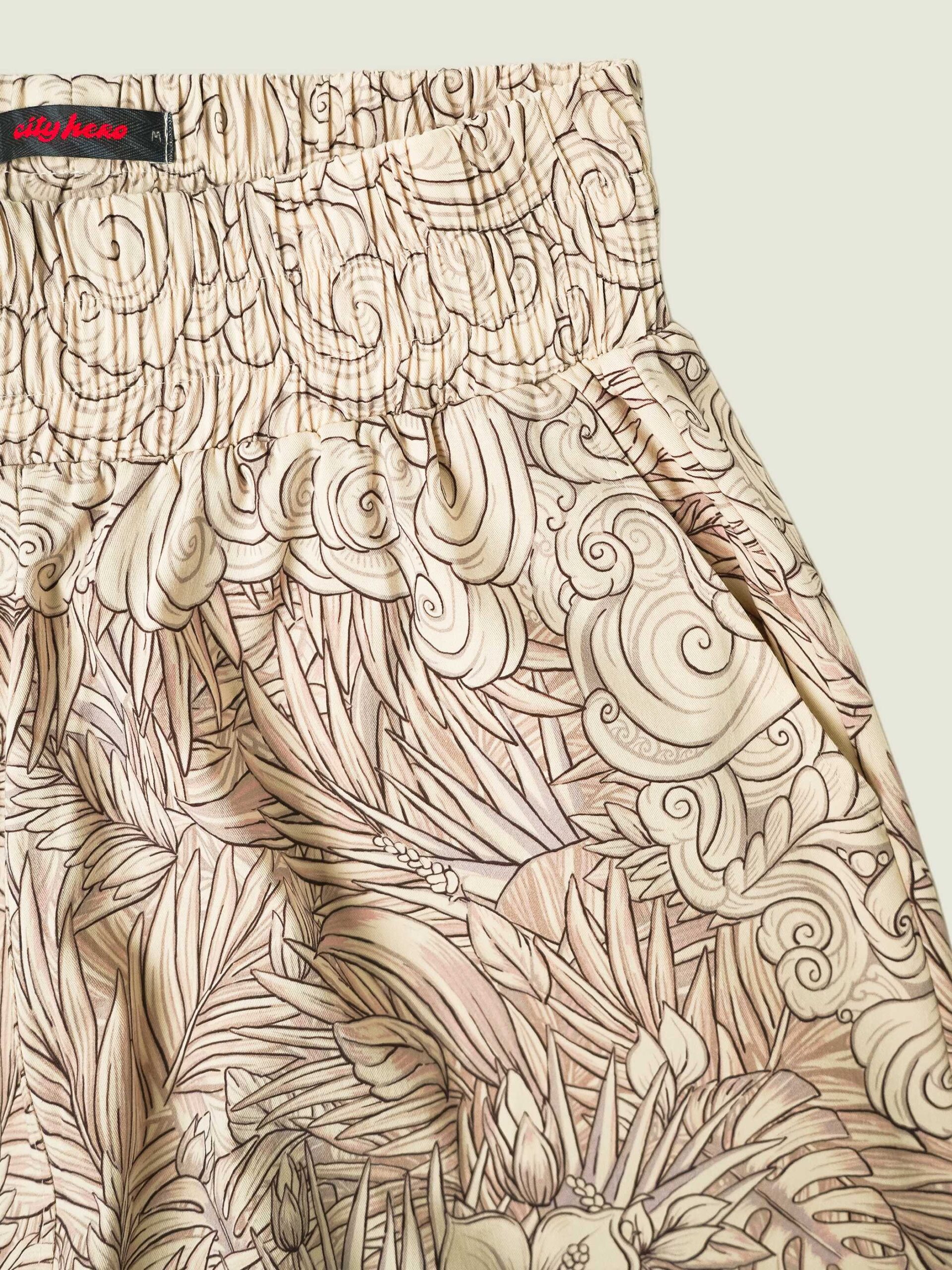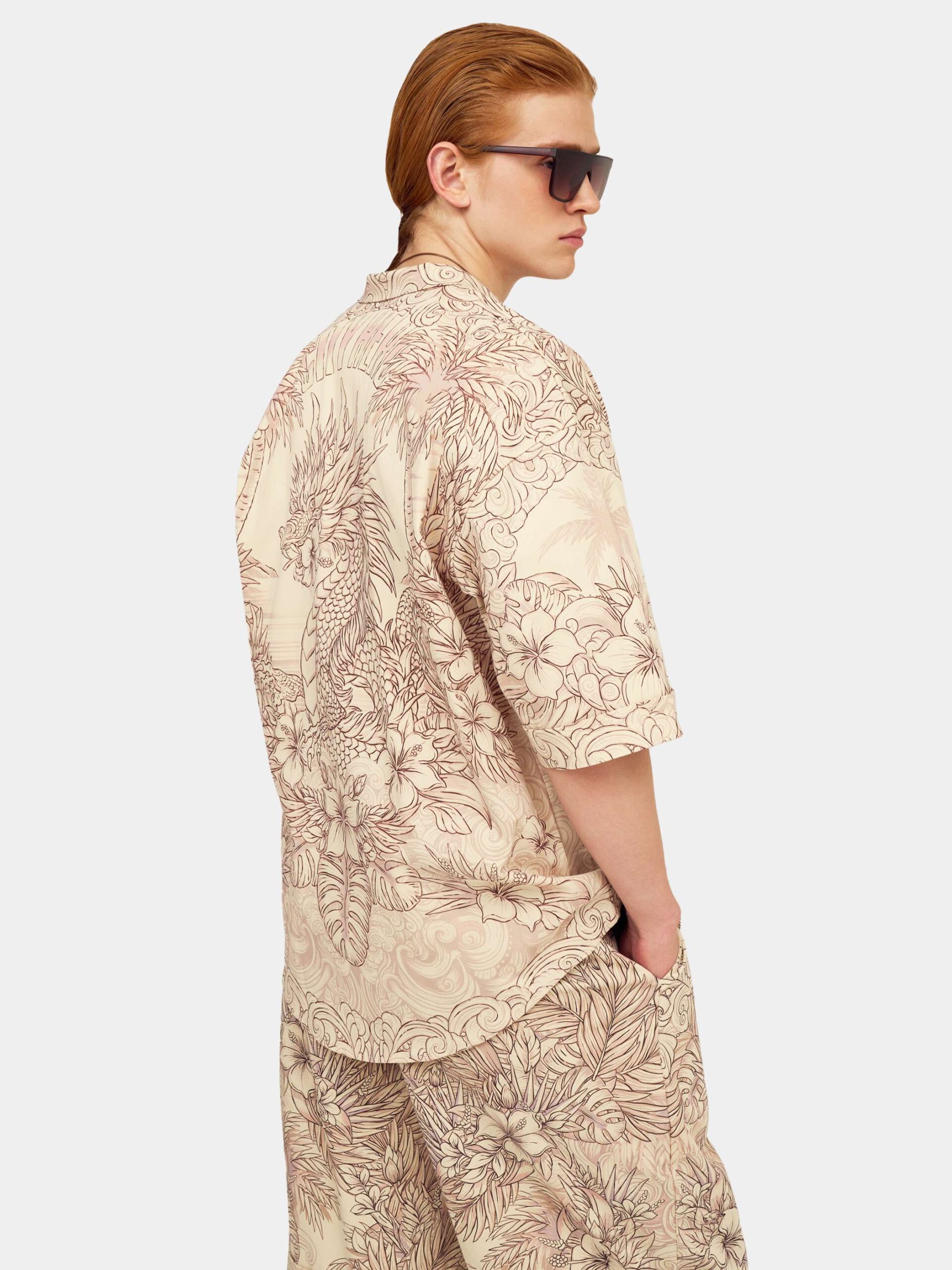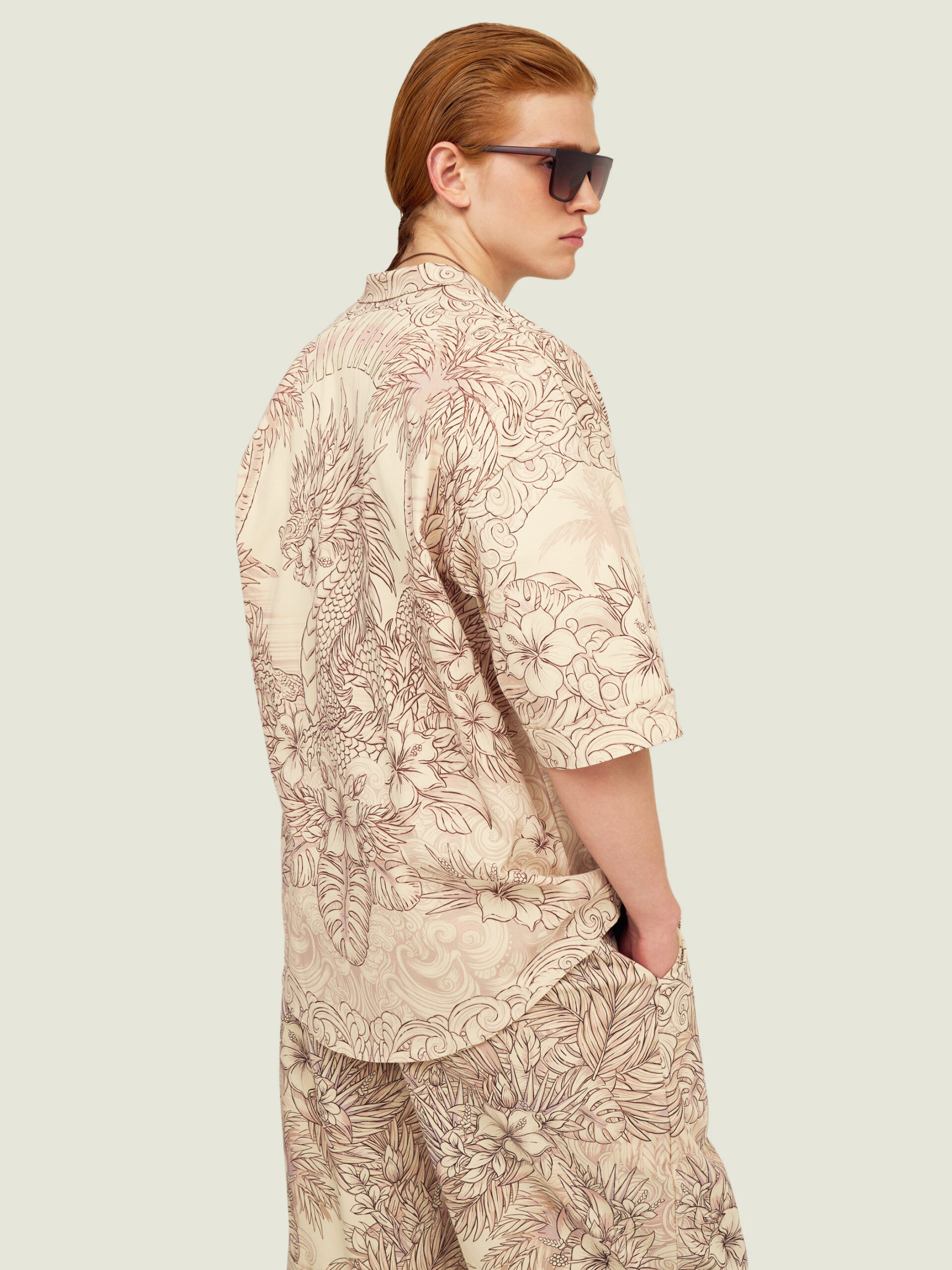 Когда хочется комфорта и нежности. Изящная графика, мягкие зефирные оттенки, могучие и добрые драконы в окружении пальм и цветов. Уличная пижама с короткими рукавами и шортами в стиле оверсайз.