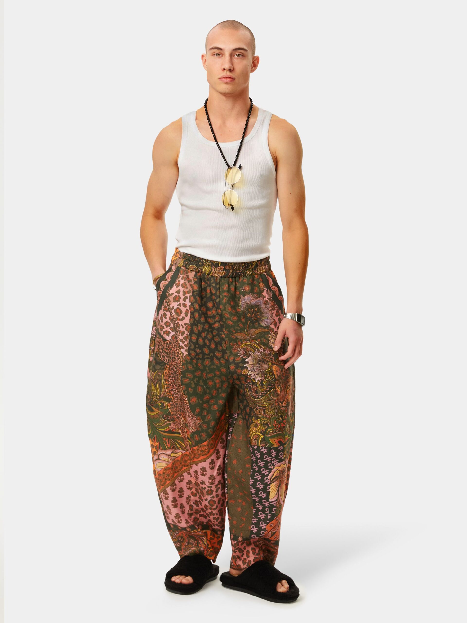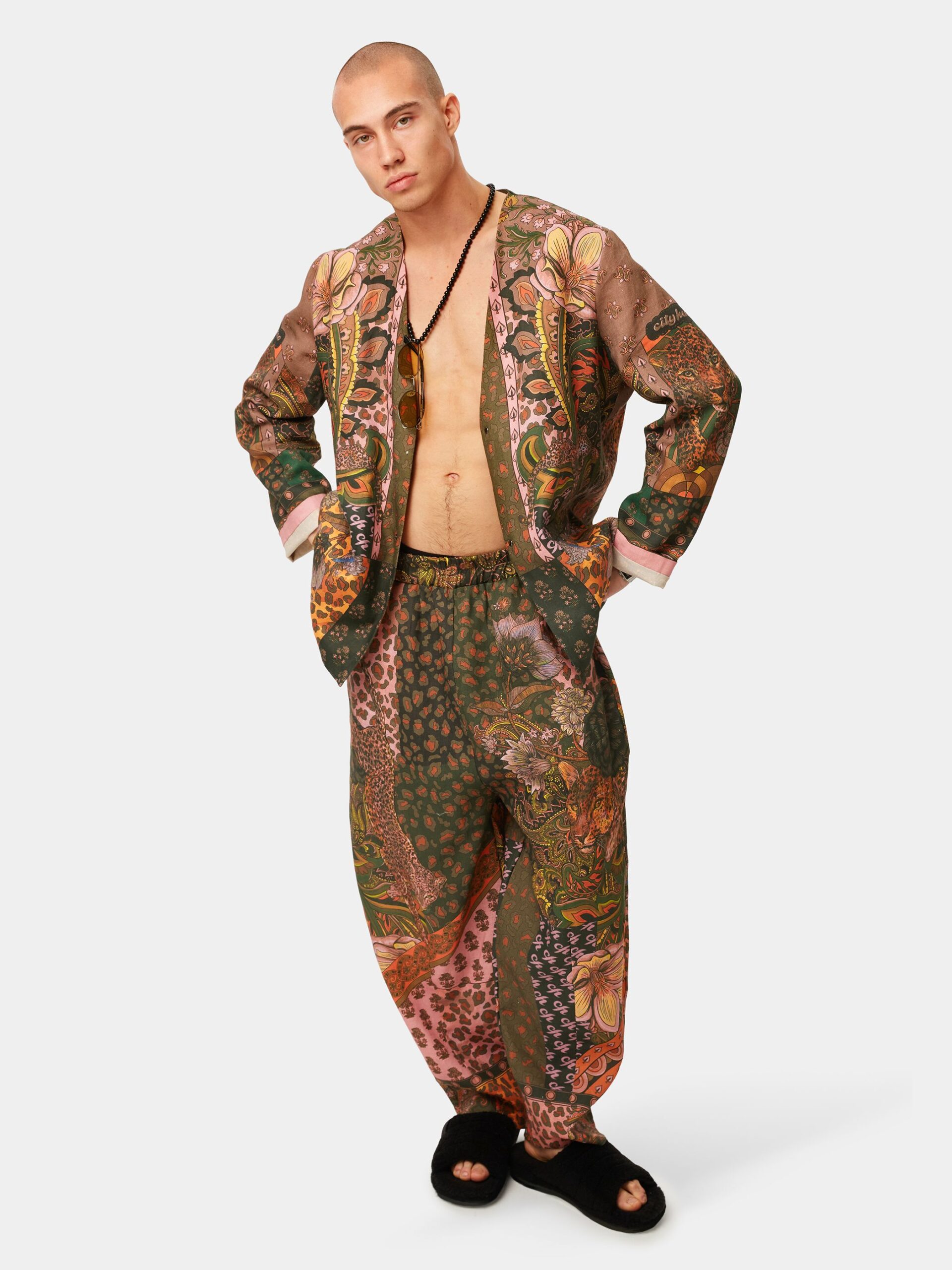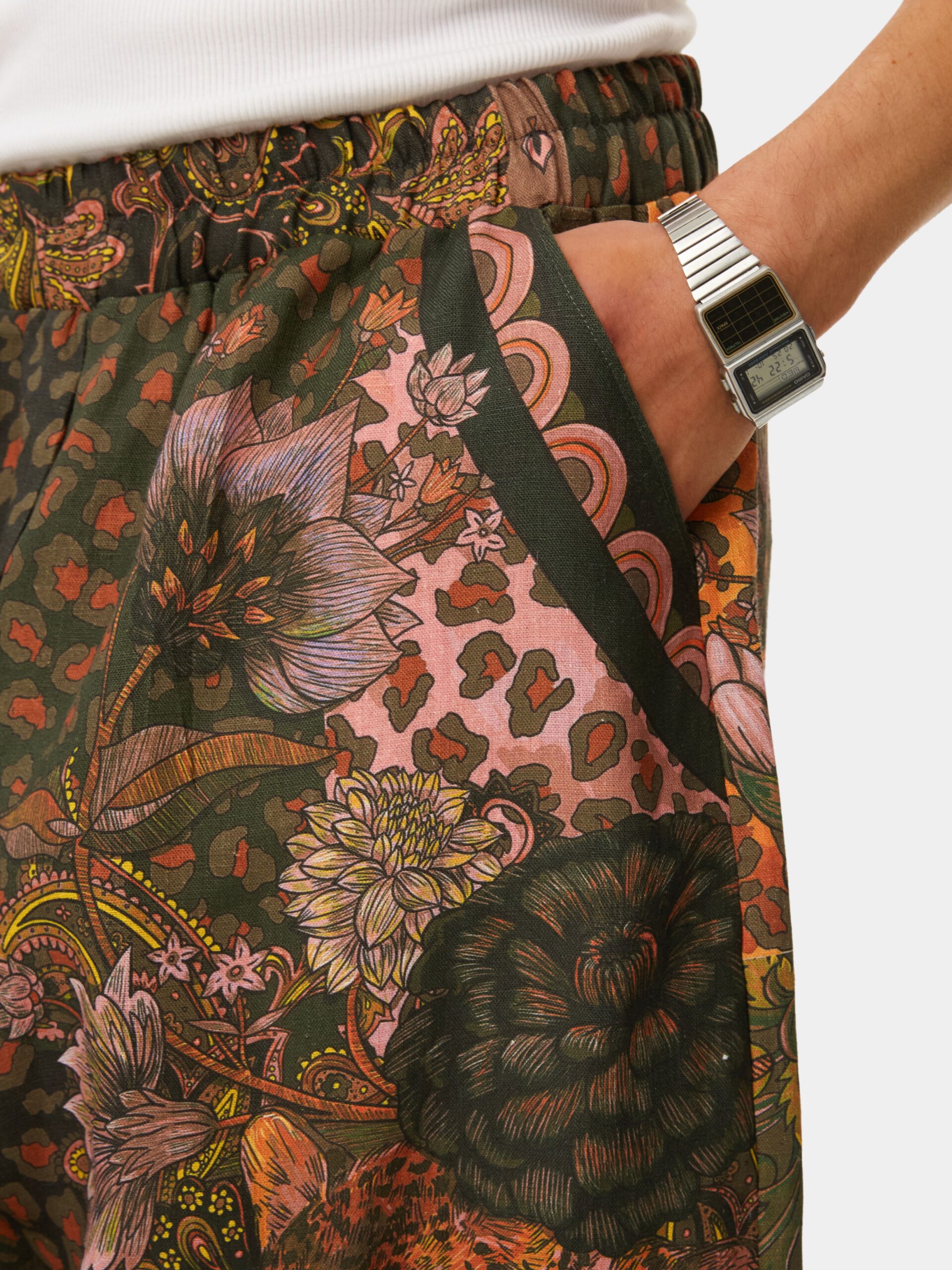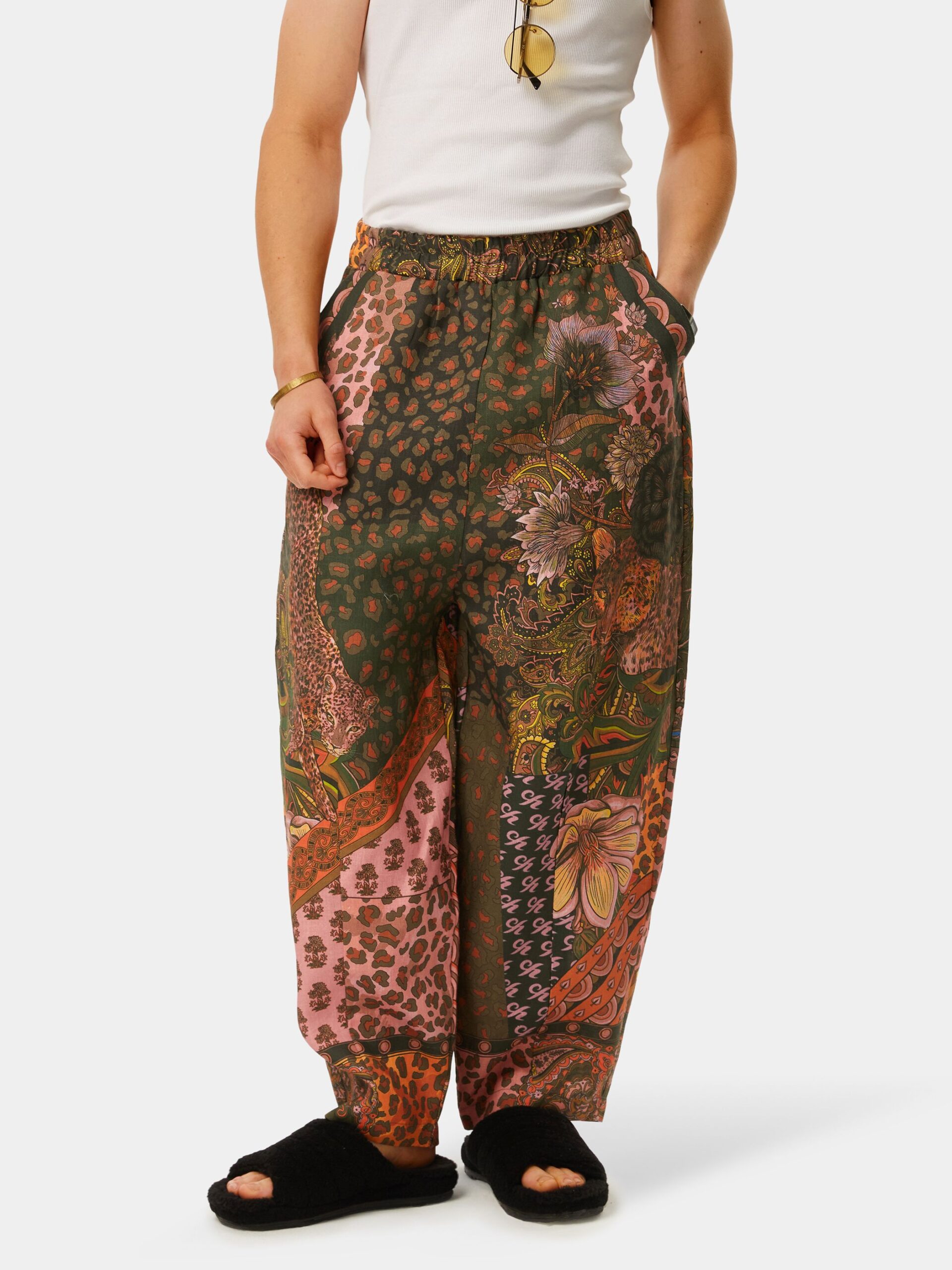 Яркая и сочная графика в стиле сафари. Природные насыщенные цвета, незабываемые узоры и дикие кошки! Брюки из натурального льна в стиле оверсайз.