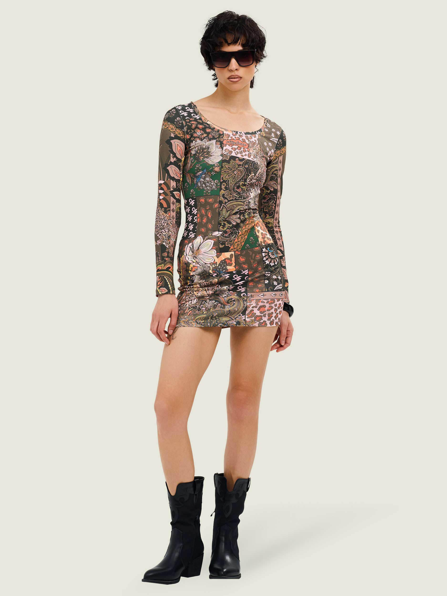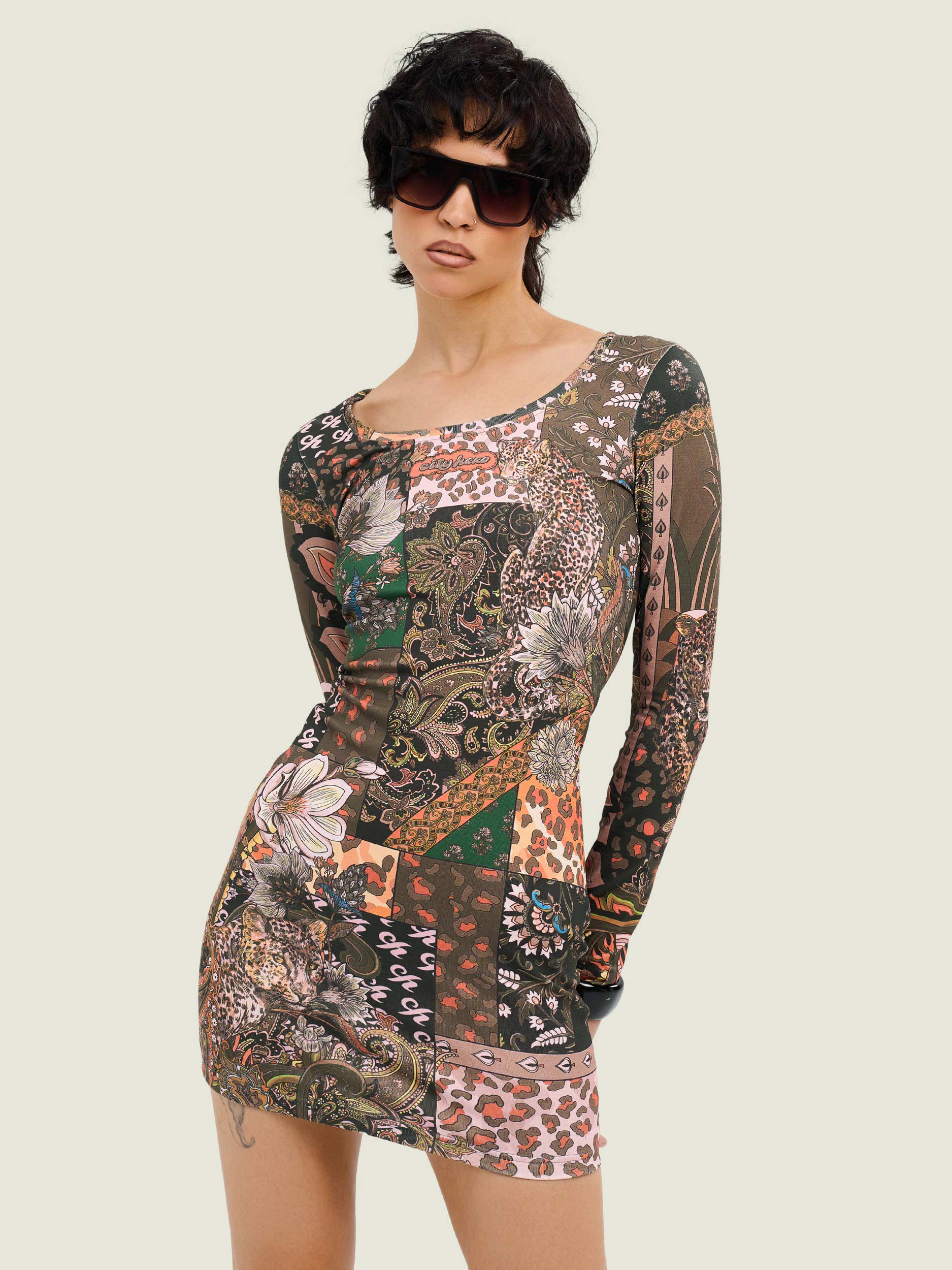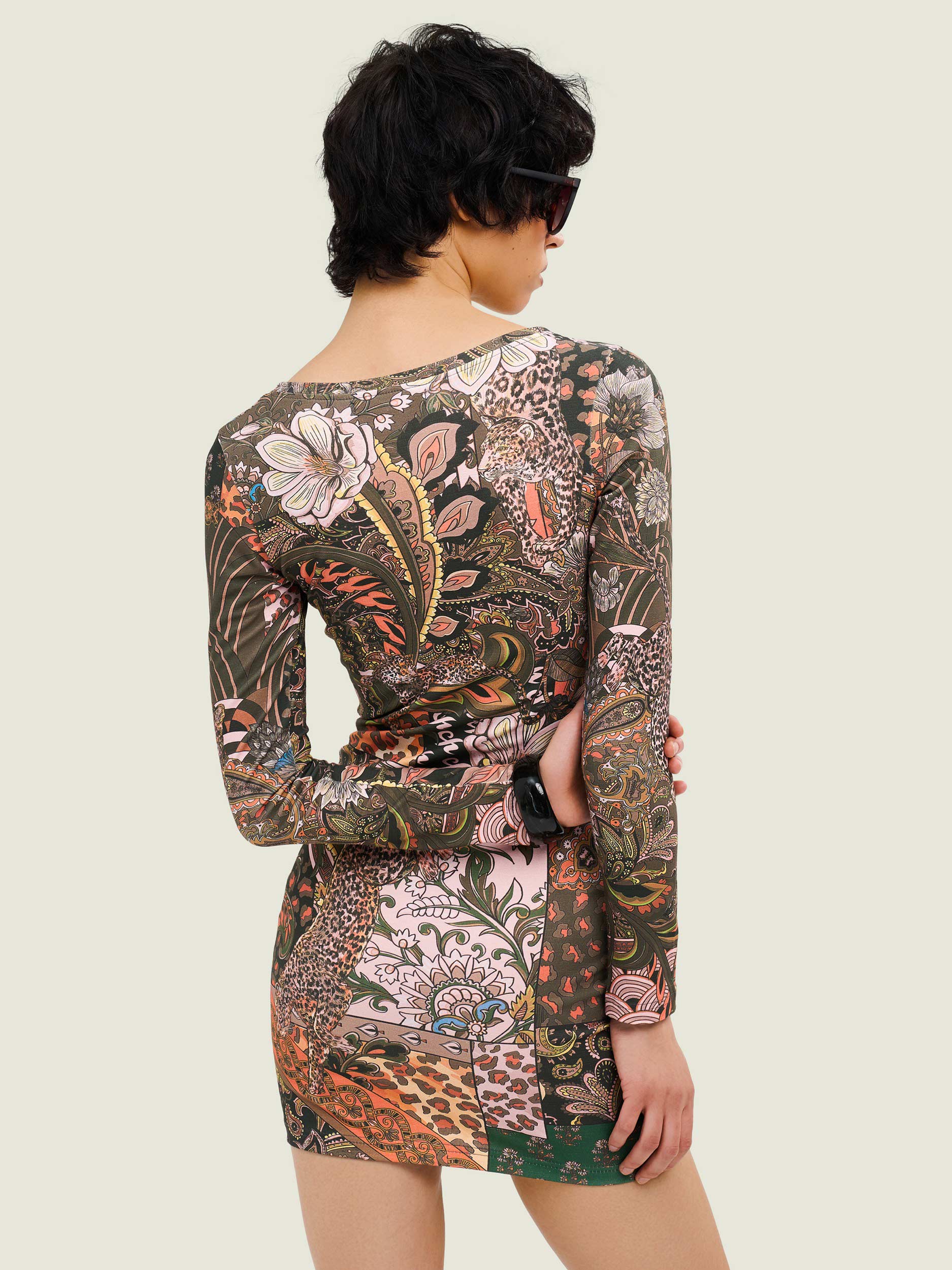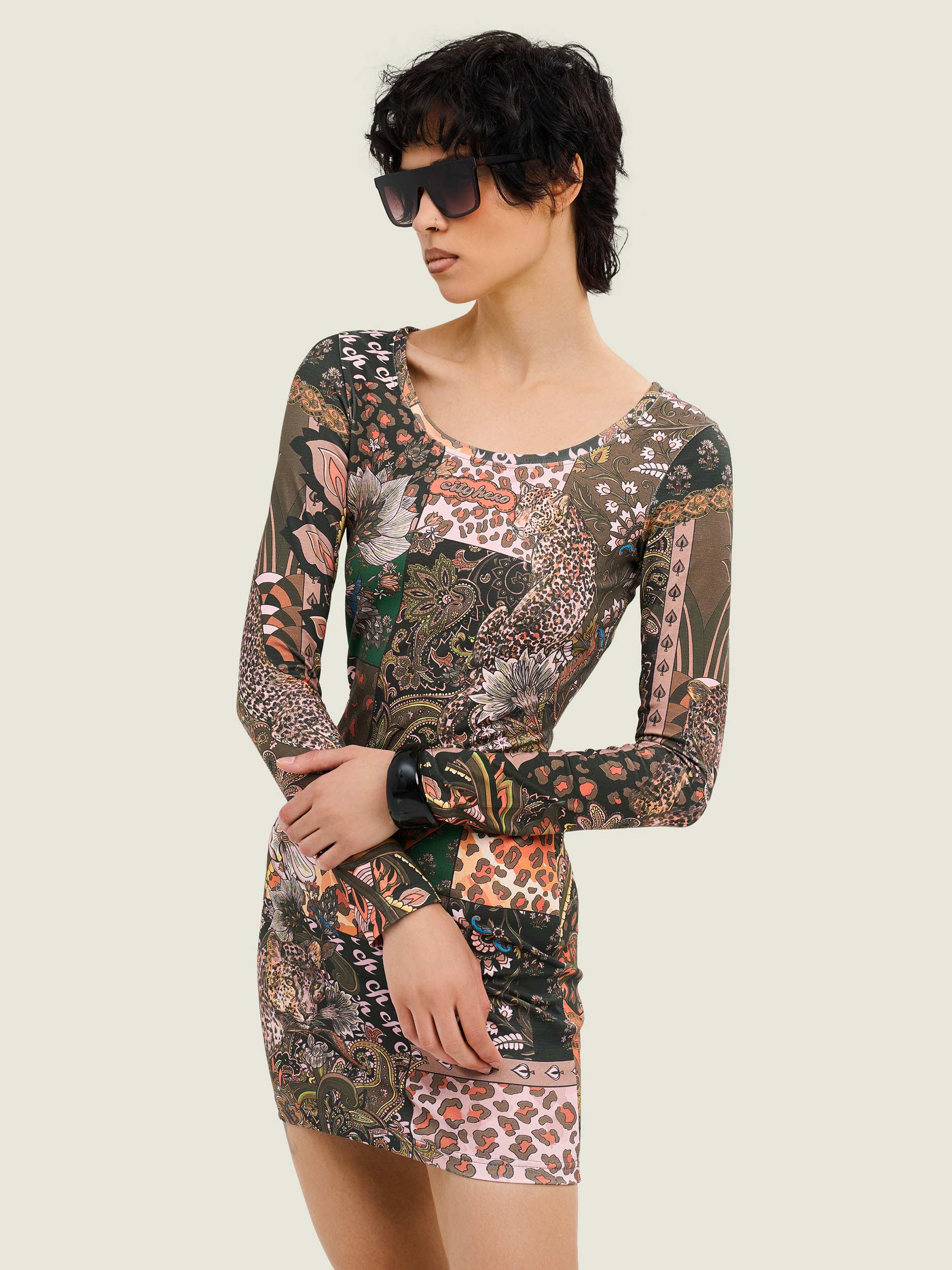 Изящное платье-лонгслив с графикой в стиле сафари. Незабываемые узоры и дикие кошки от CITY HERO.