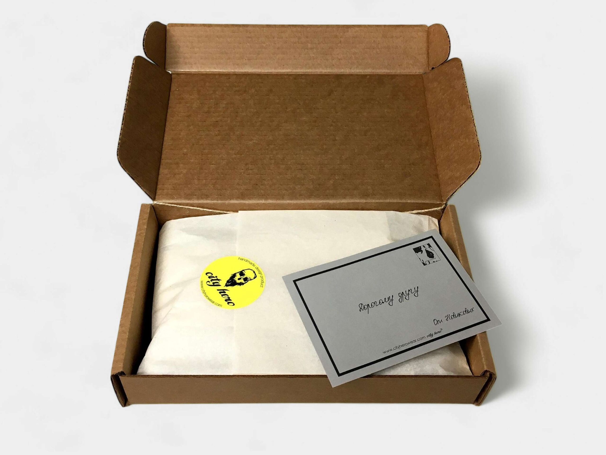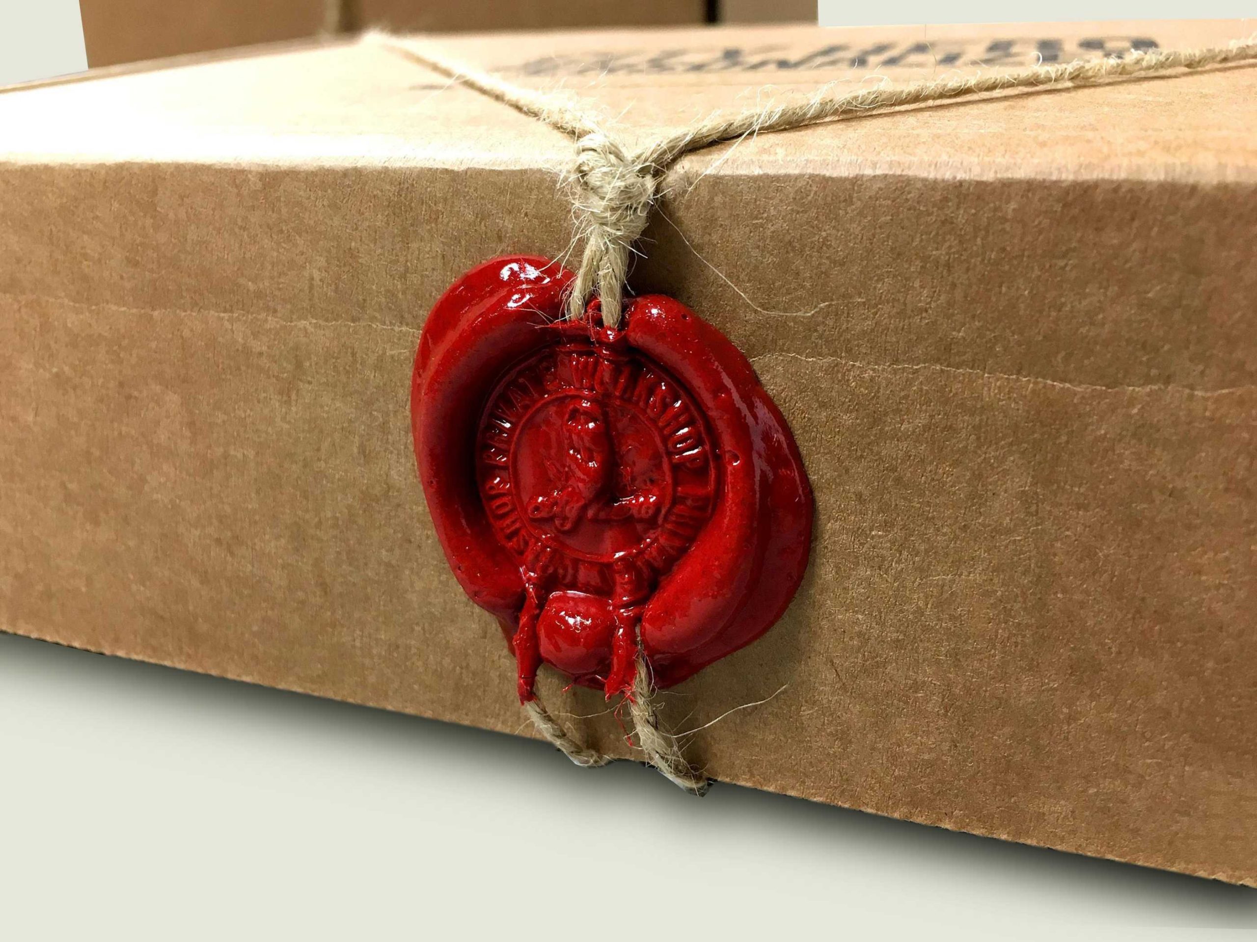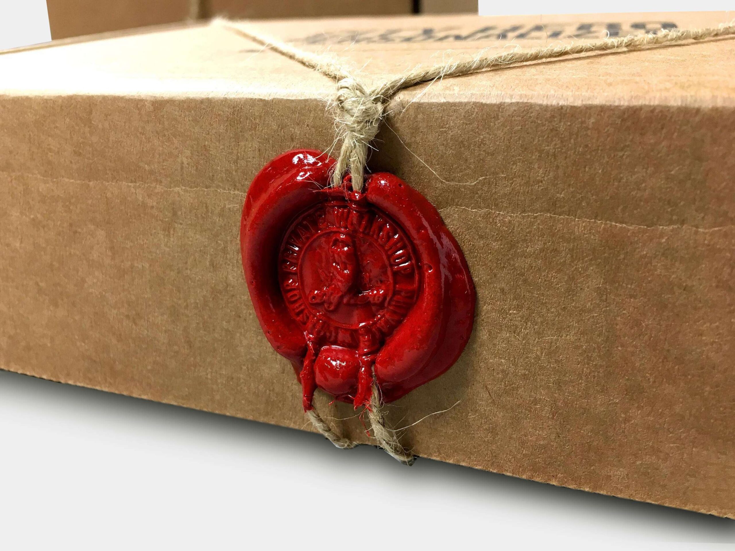 Любое приобретенное изделие мы можем упаковать в нашу фирменную подарочную коробку с настоящей сургучной печатью Мастерской, что, безусловно, станет идеальным подарком для дорогого человека!