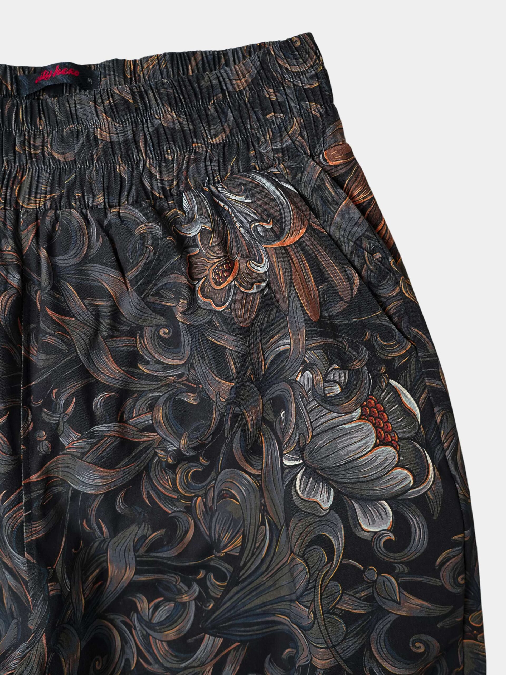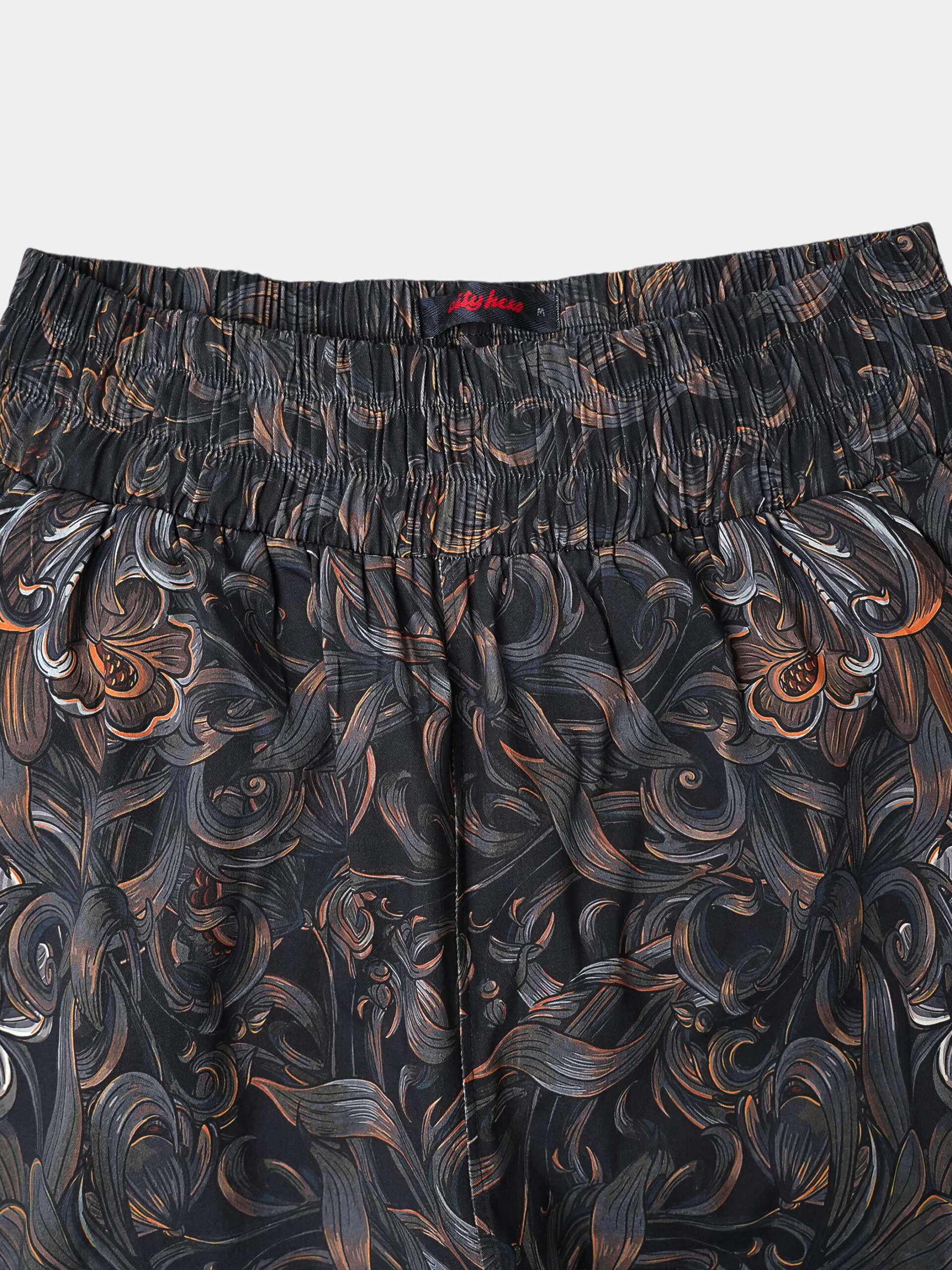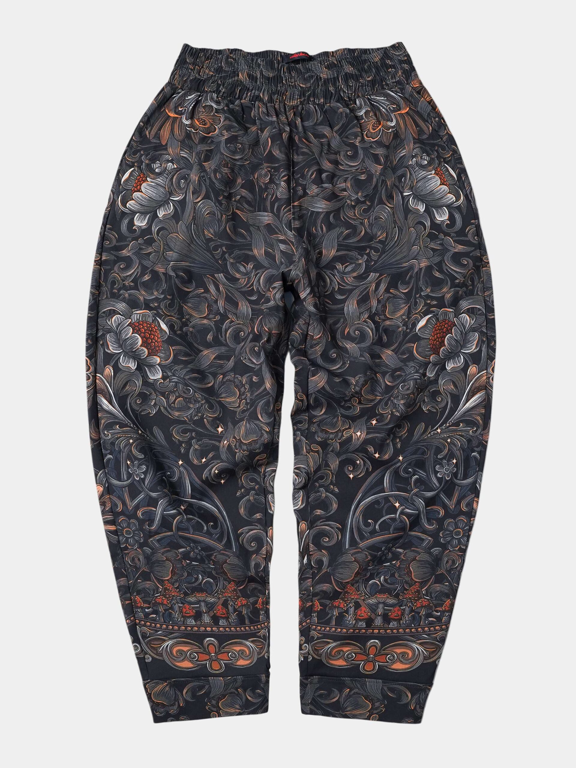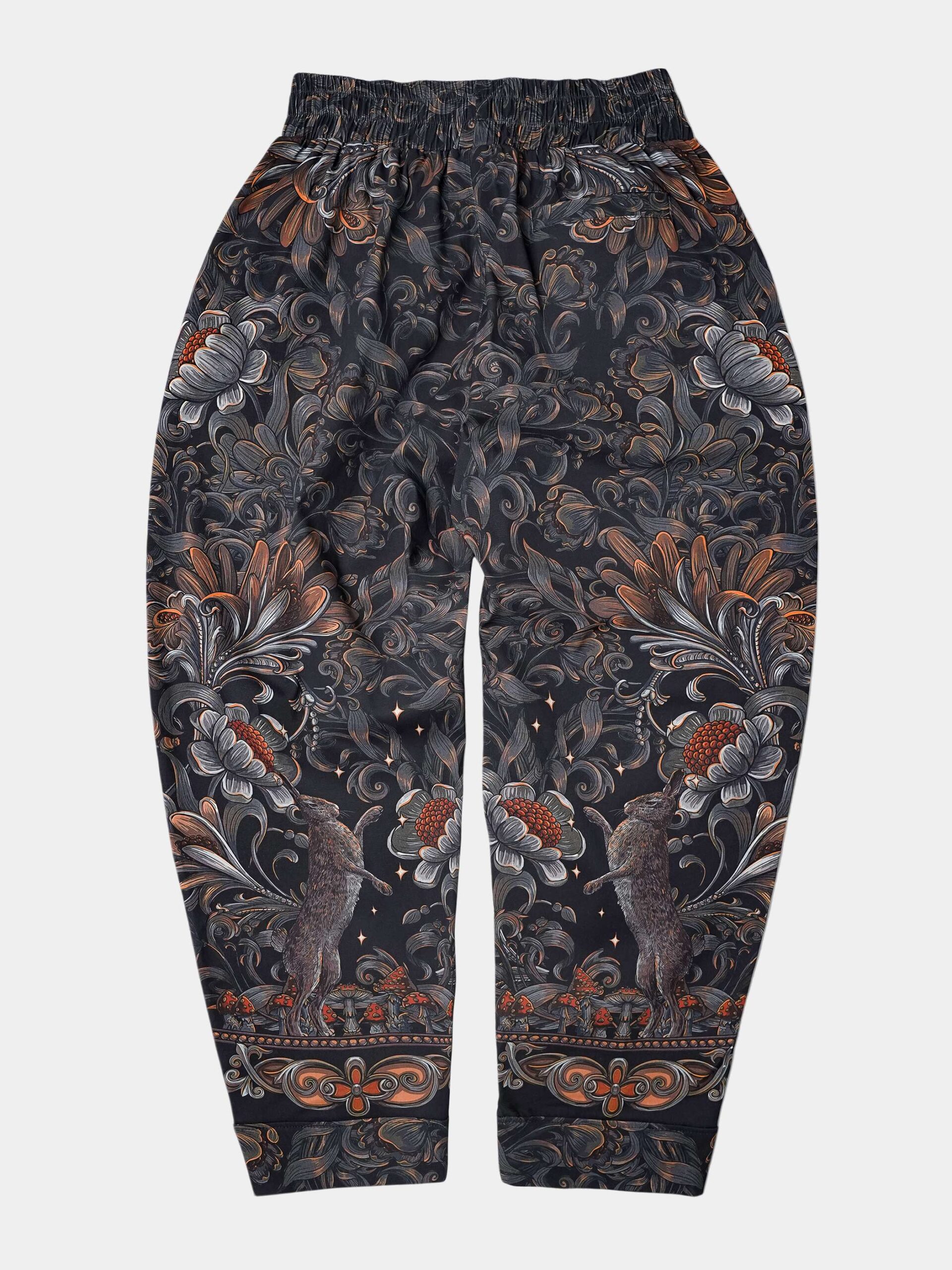 Атмосферный дизайн в черных, серых и золотистых тонах, вдохновленный лесом из русских сказок и его пушистыми обитателями. Брюки второго поколения в стиле оверсайз.