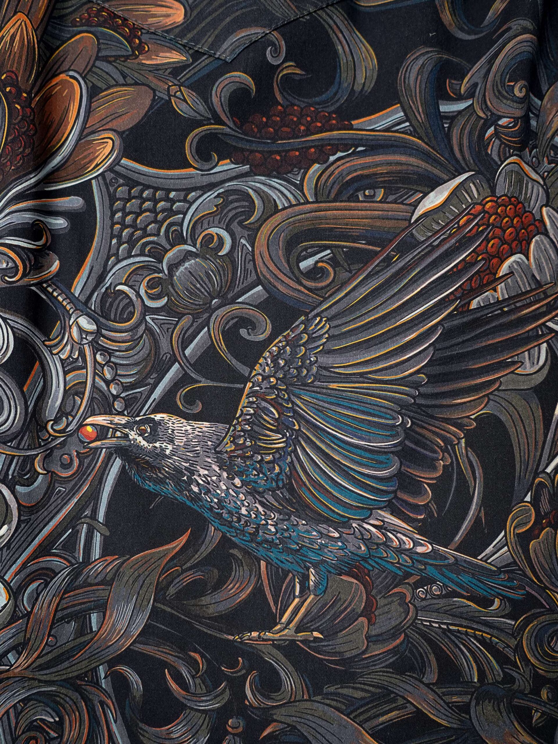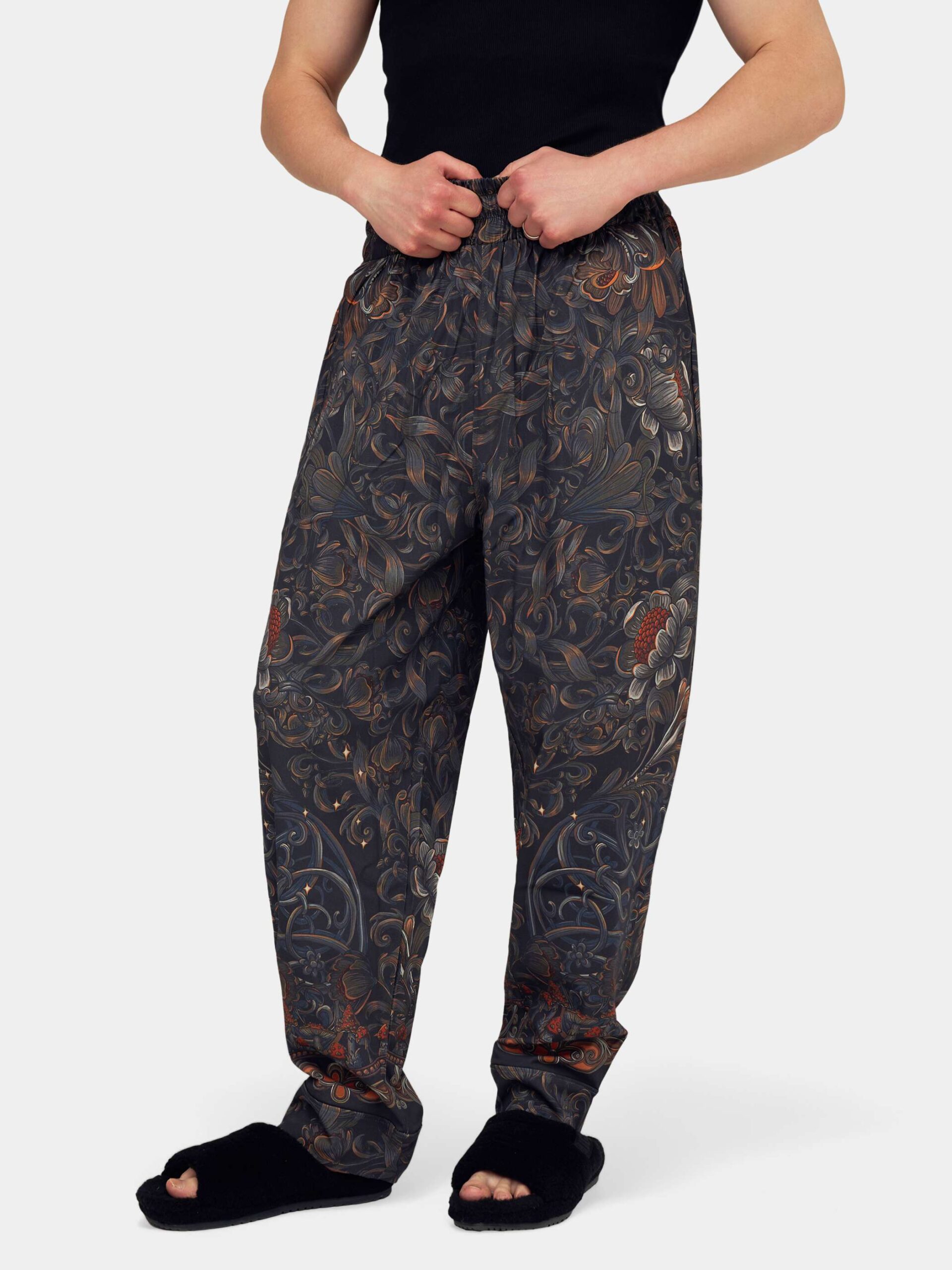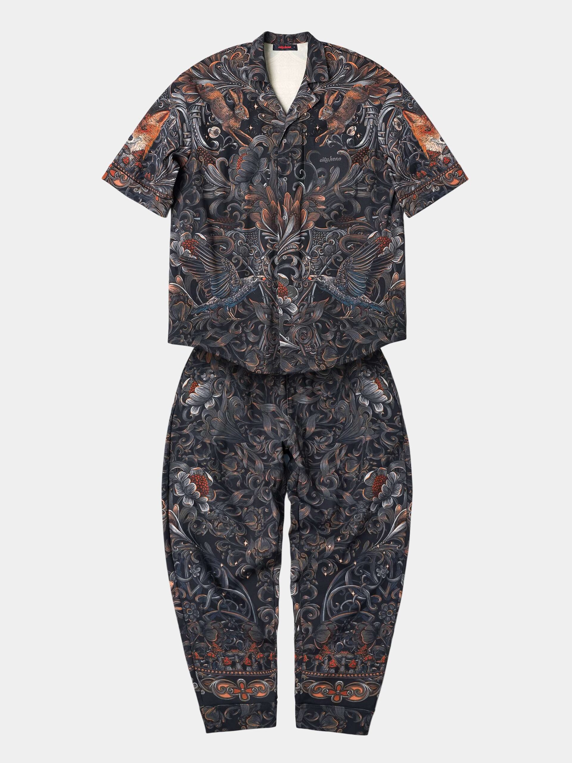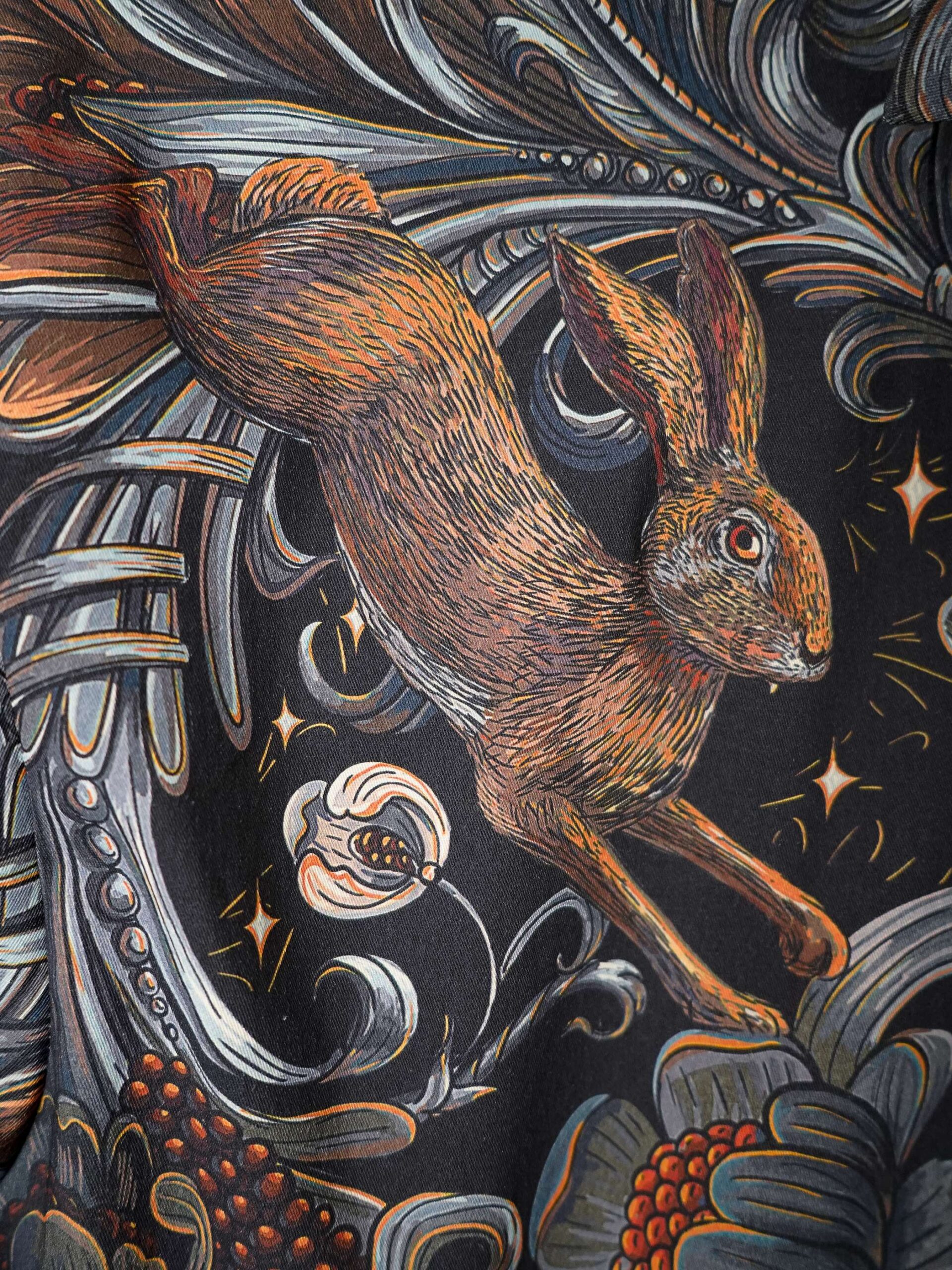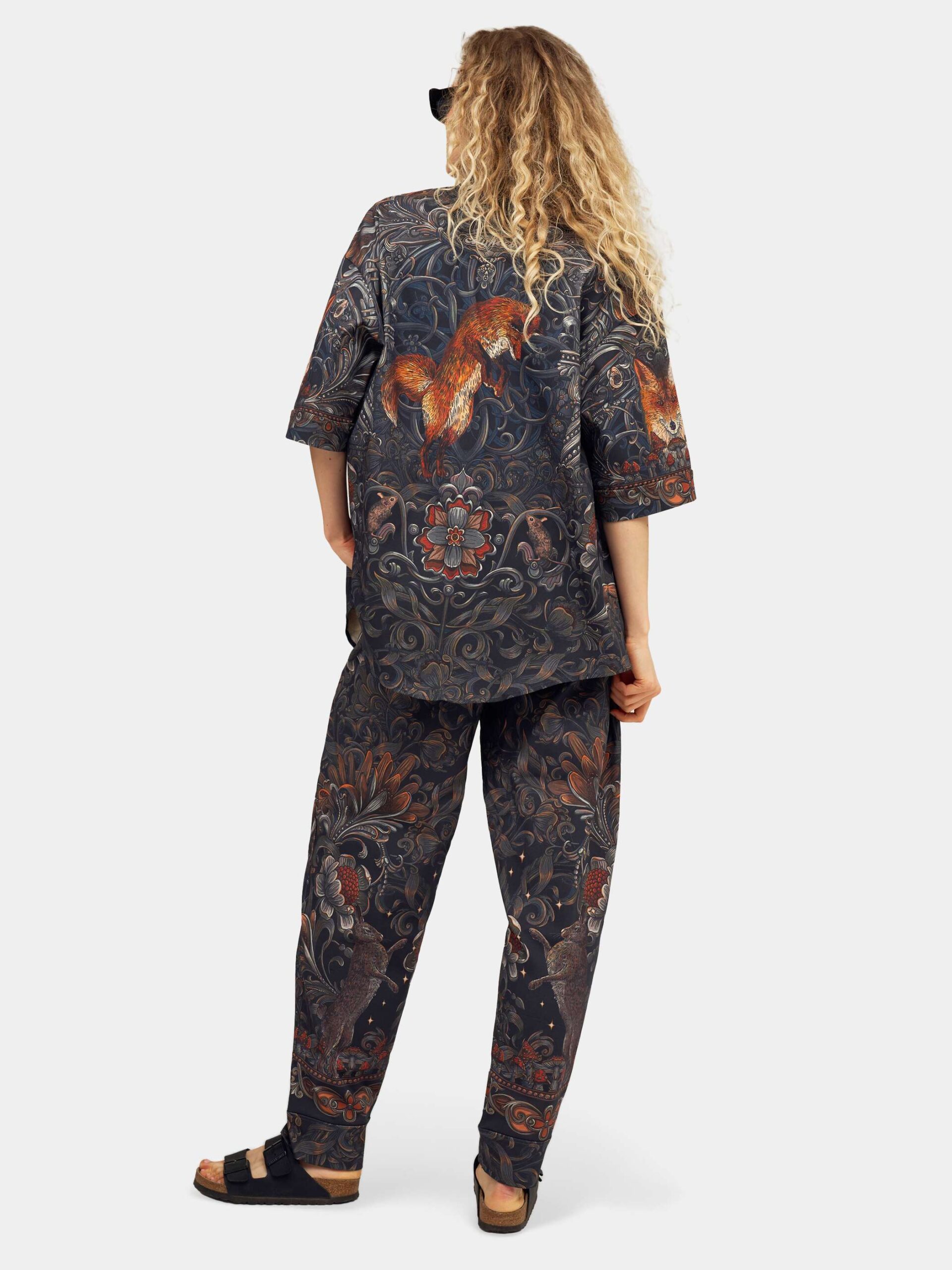 Атмосферный дизайн в черных, серых и золотистых тонах, вдохновленный лесом из русских сказок и его пушистыми обитателями. Уличная пижама второго поколения в стиле оверсайз.