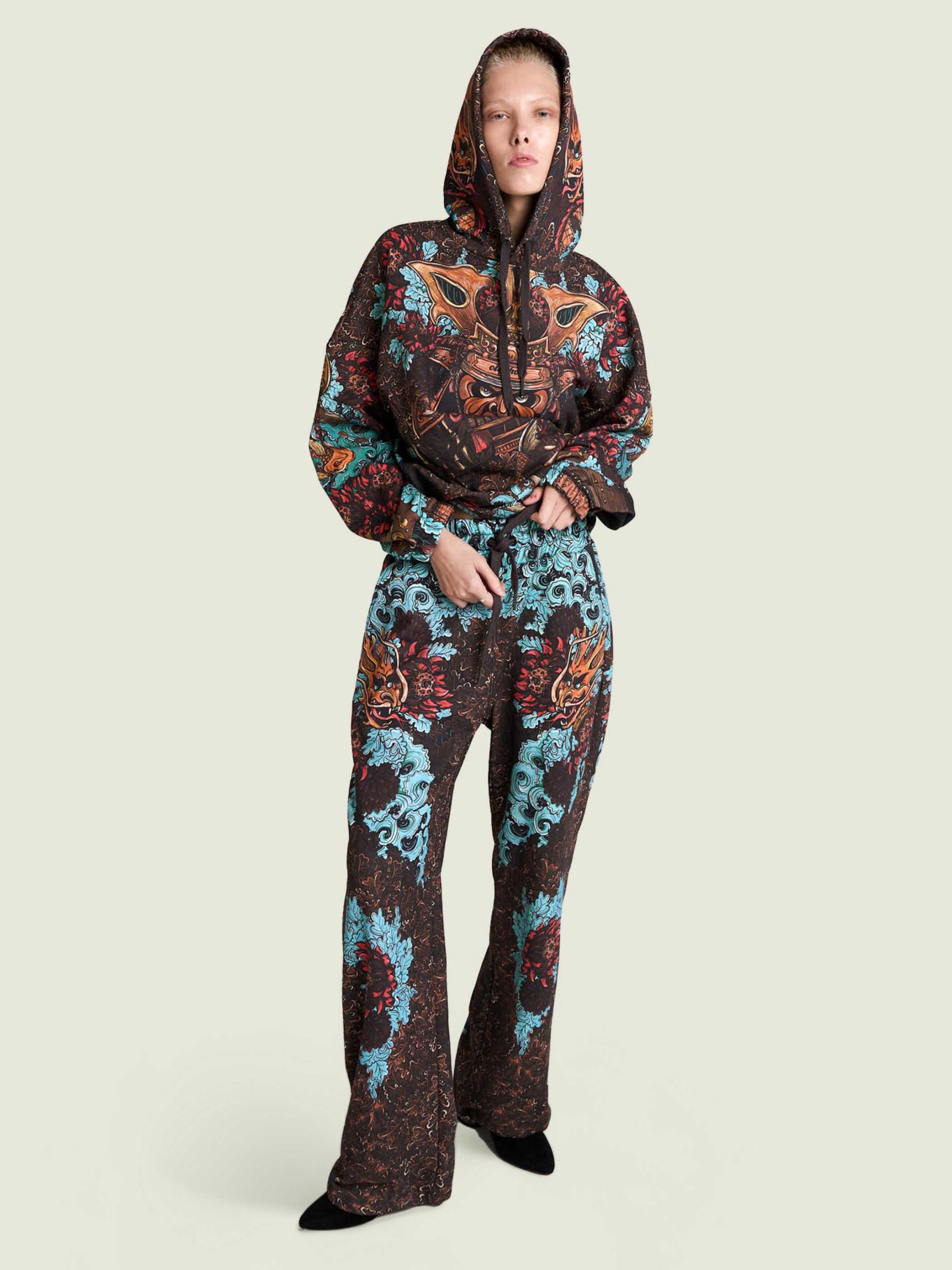 Худи в стиле интеллиджент оверсайз с узнаваемой сложной текстильной графикой CITY HERO. Изделие спроектировано как для комбинирования с базовыми вещами, так и для дополнения костюмного тотал-лука того же дизайна. Нижние боковые затяжки позволяют придать худи как прямой, так и скруглённый силуэт.