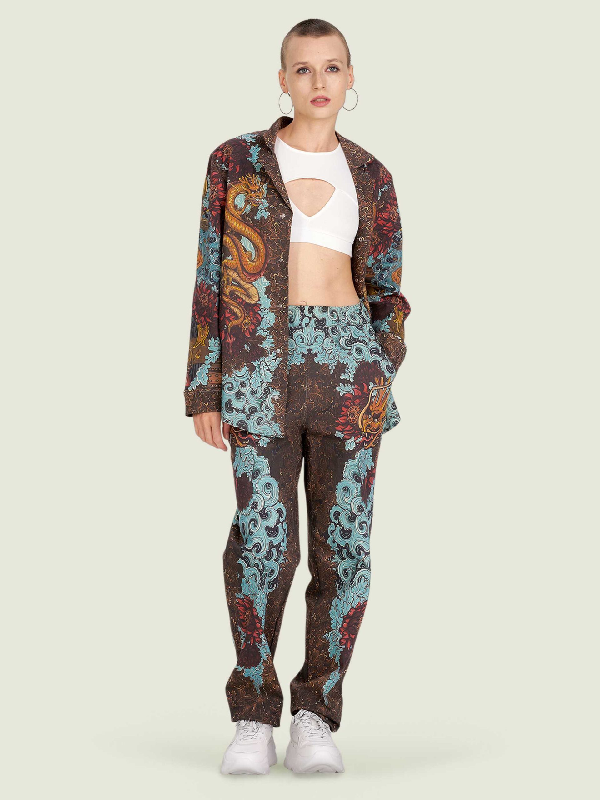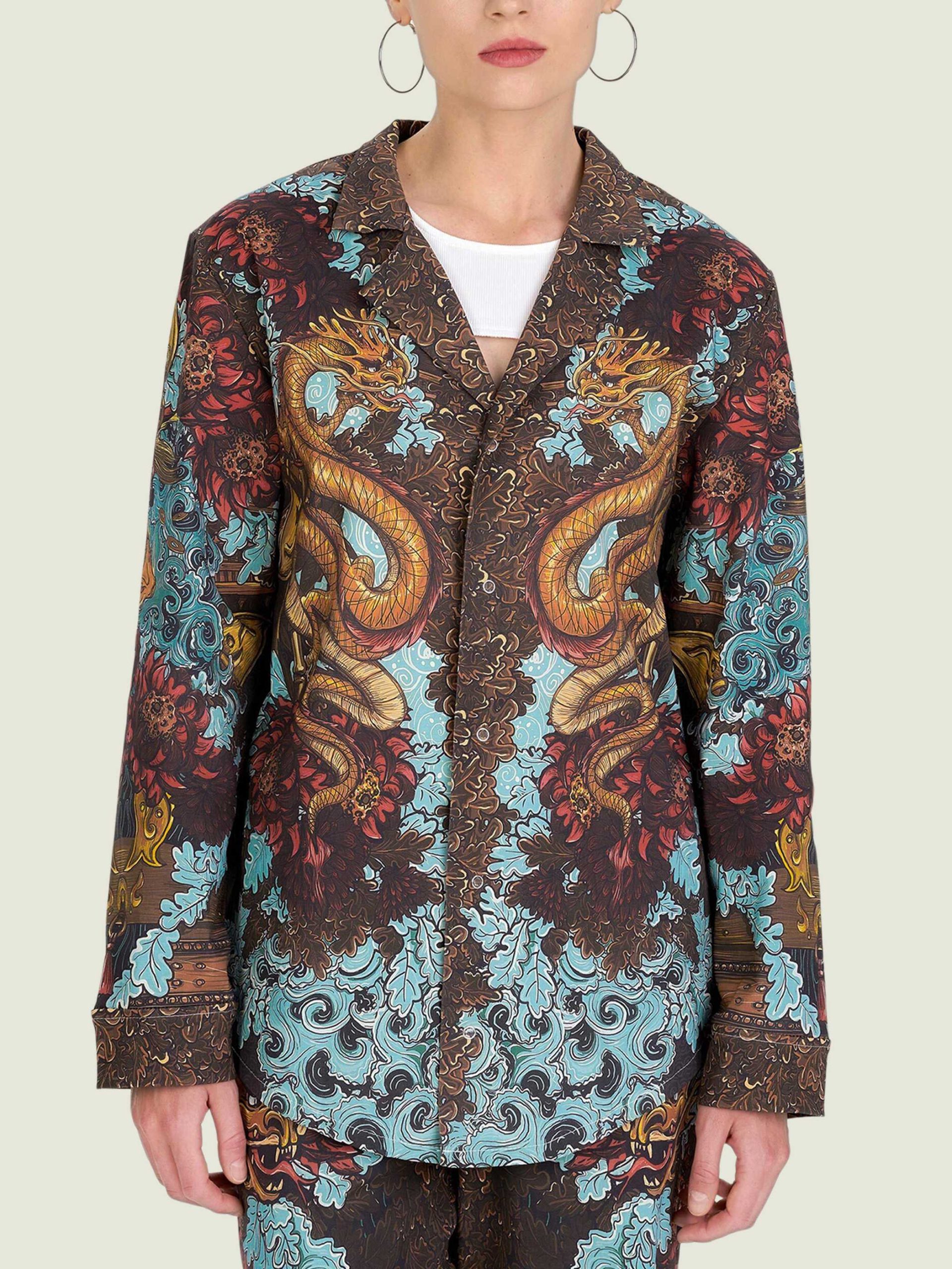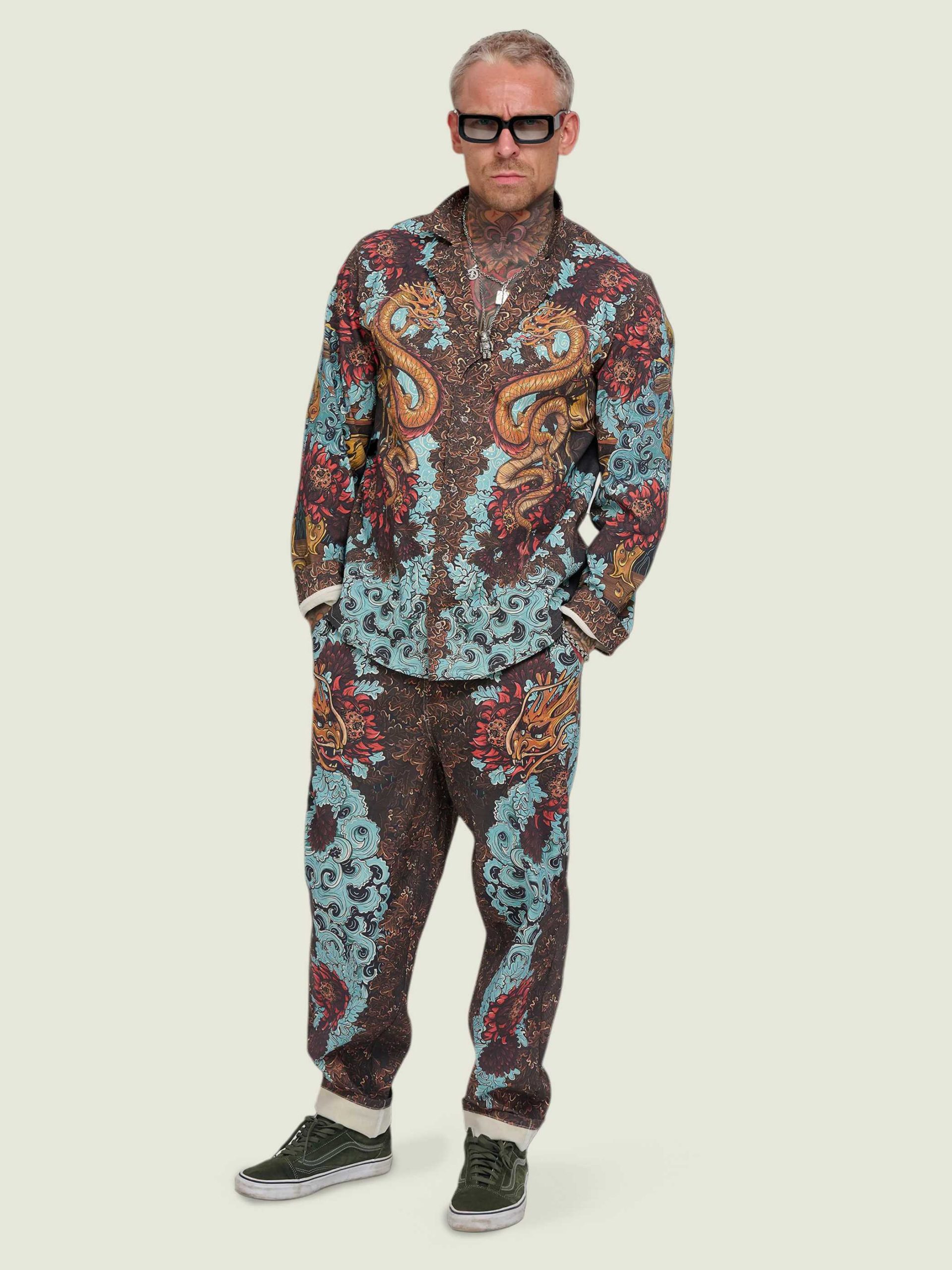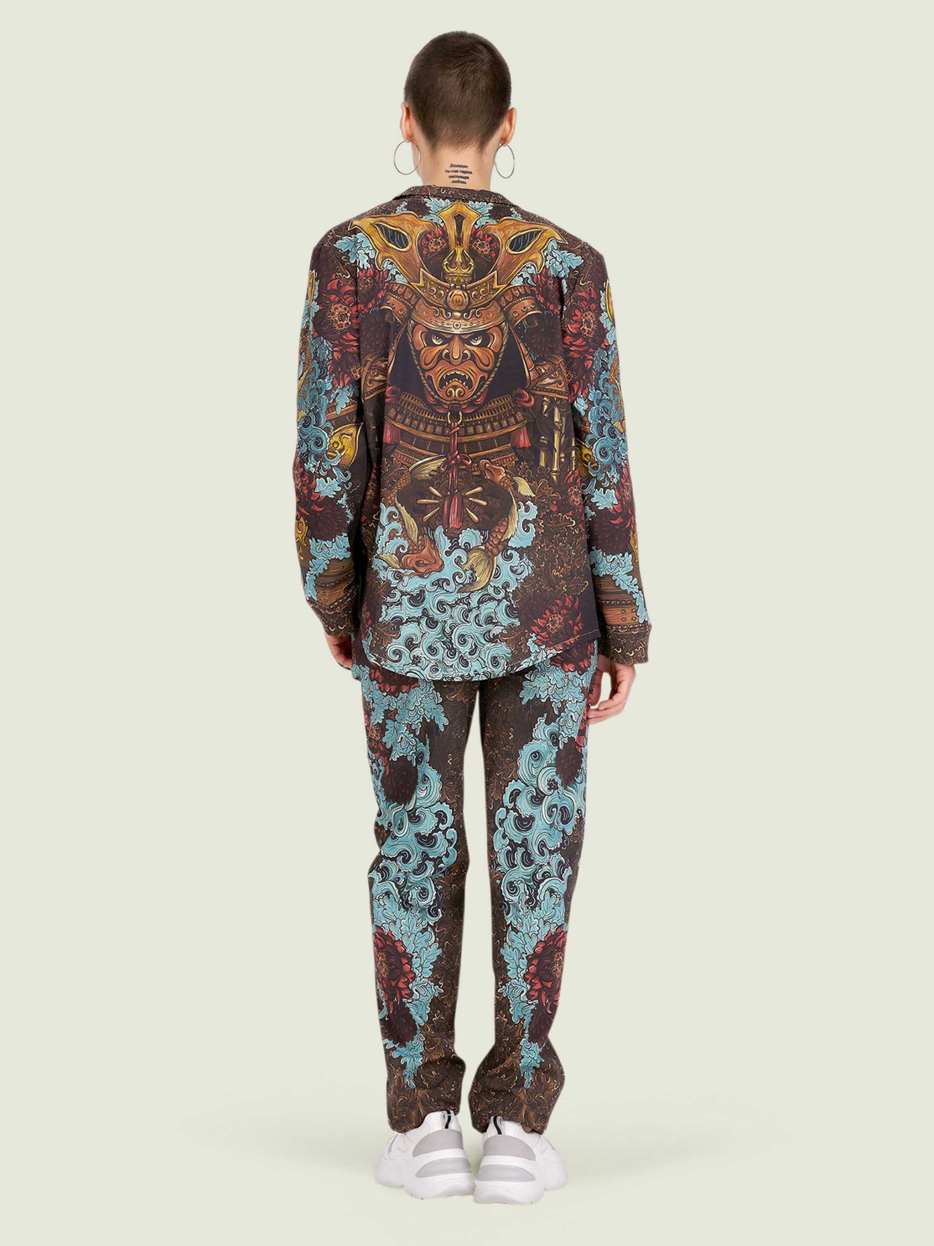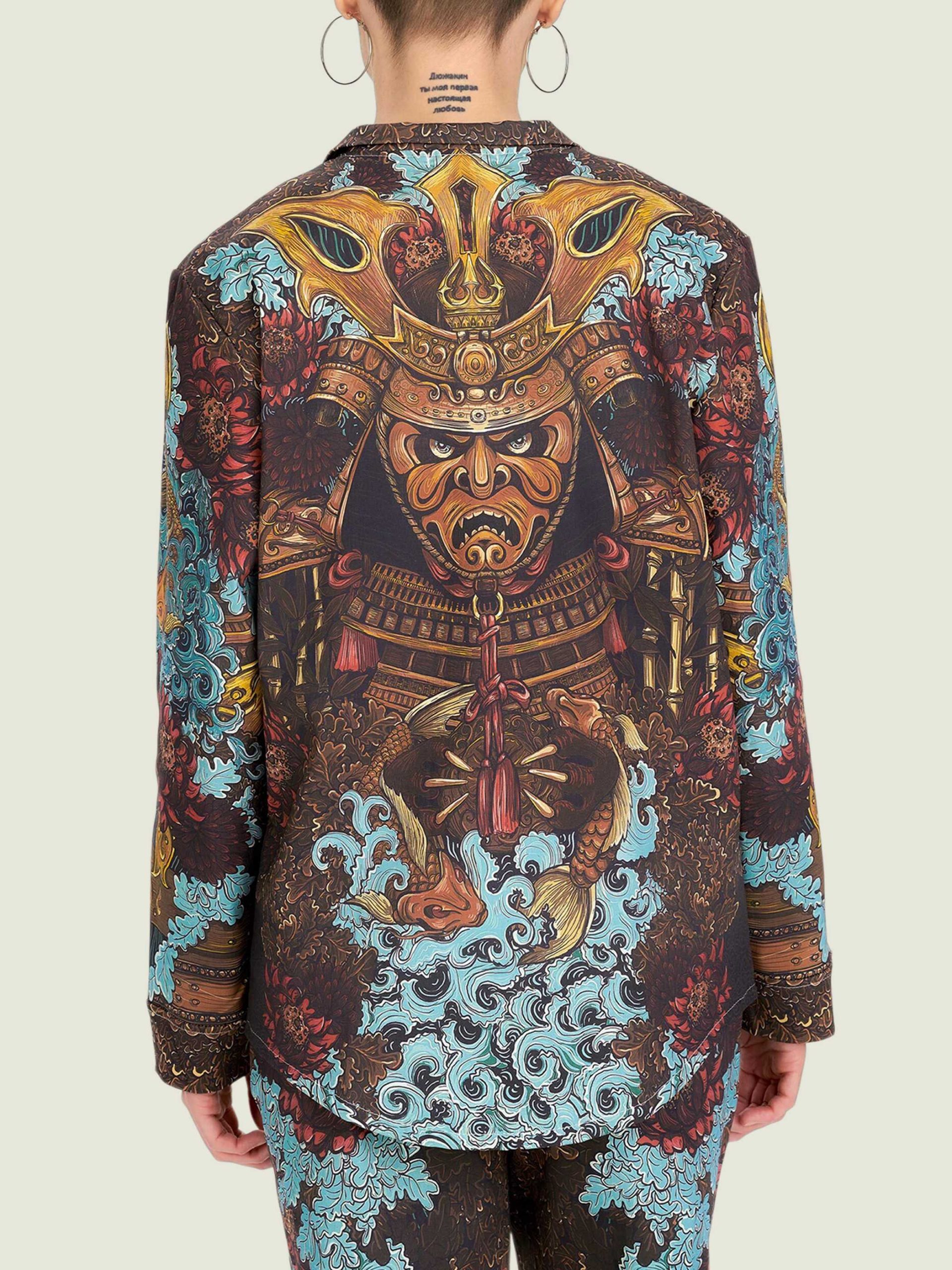 Очарование японской эстетики в прочтении нашей мастерской на уникальном пижамном костюме разработанном специально для прогулок и приятного времени провождения.
