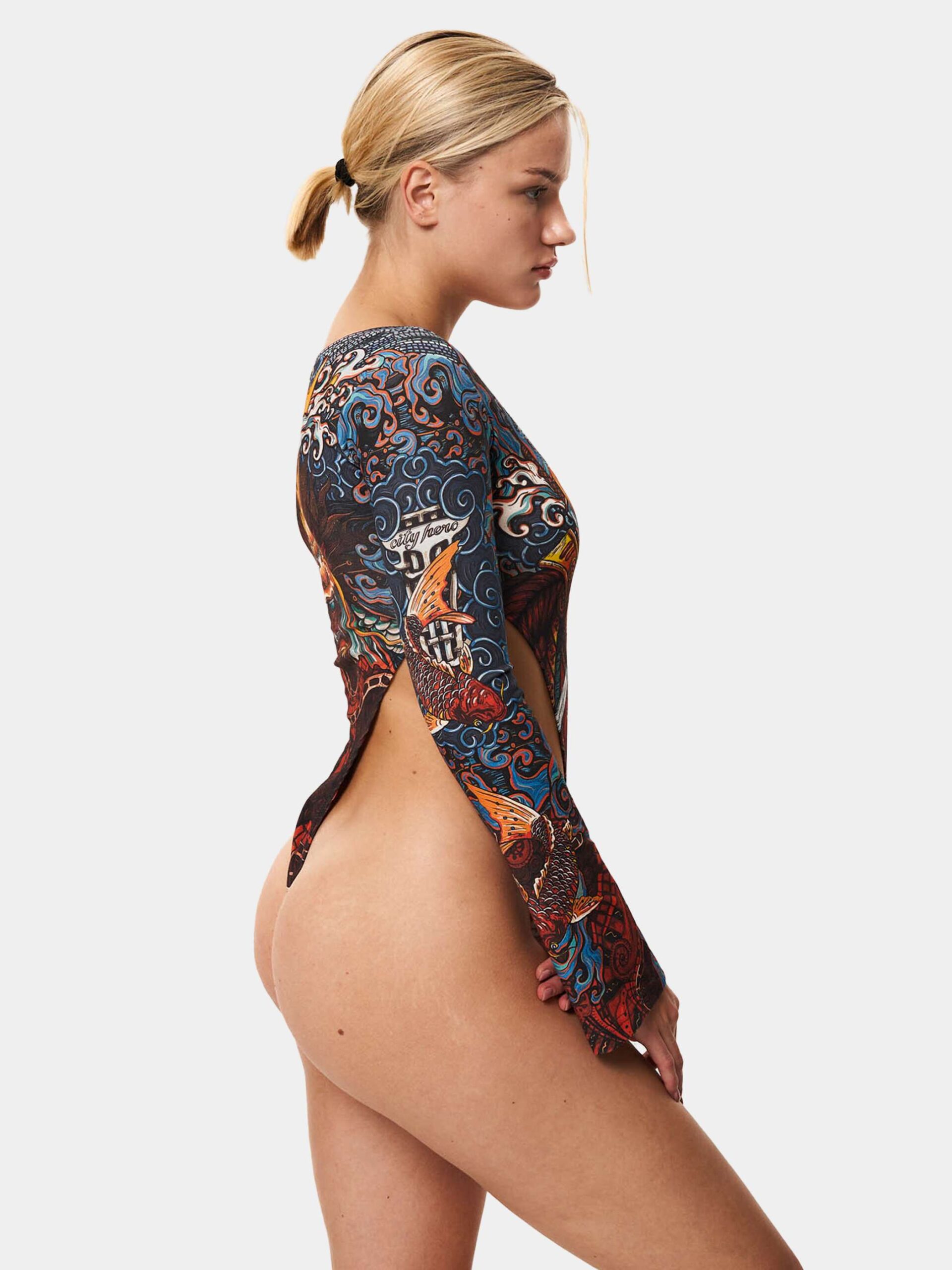 Боди-каре с глубокими вырезами и прилегающим кроем. Боди можно комбинировать как с базовыми вещами, так и с изделиями CITY HERO того же или другого дизайна.