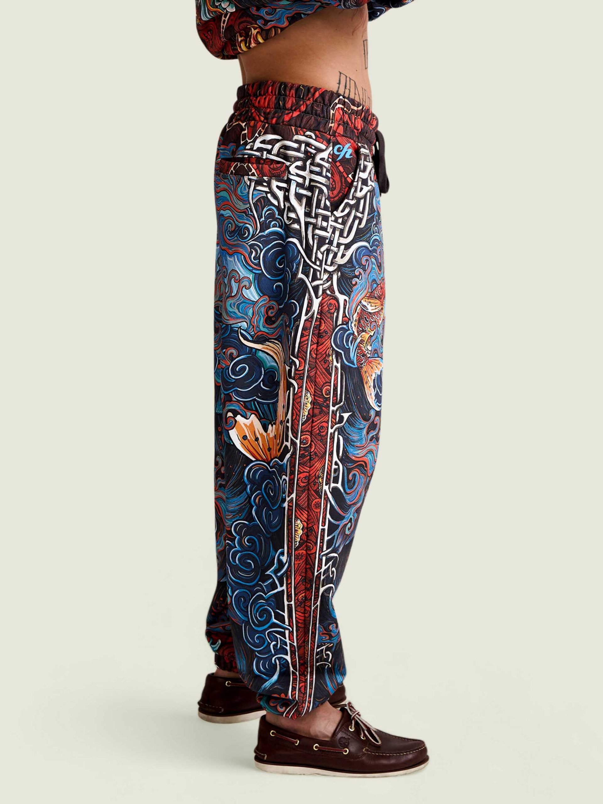 Джоггеры в стиле интеллиджент оверсайз с узнаваемой сложной текстильной графикой CITY HERO. Низ штанин на резинке. Удобные объемные боковые карманы-ловушки, сконструированы так, чтобы из них не выпадало содержимое. Изделие спроектировано как для комбинирования с базовыми вещами, так и для дополнения костюмного тотал-лука того же дизайна.