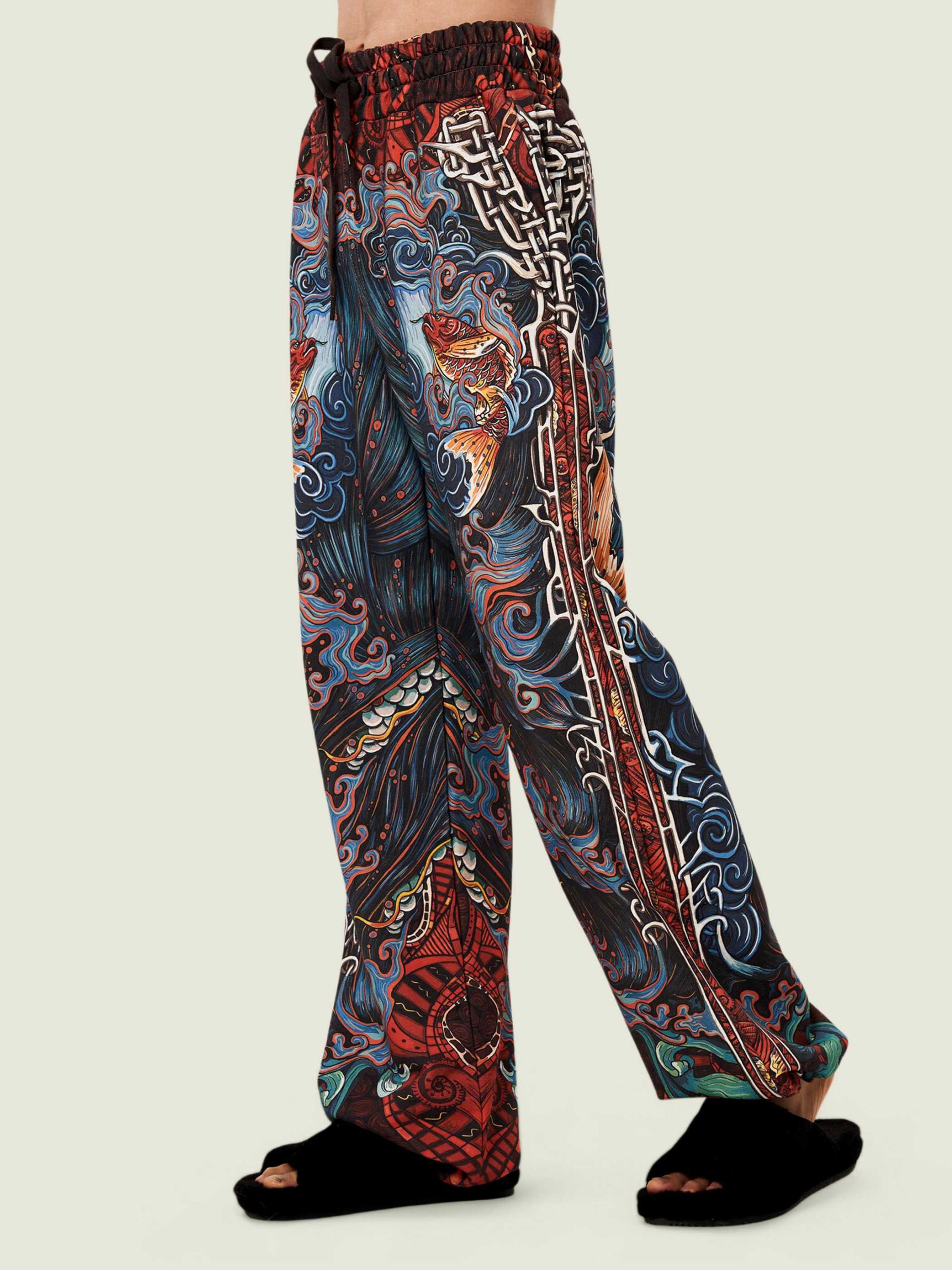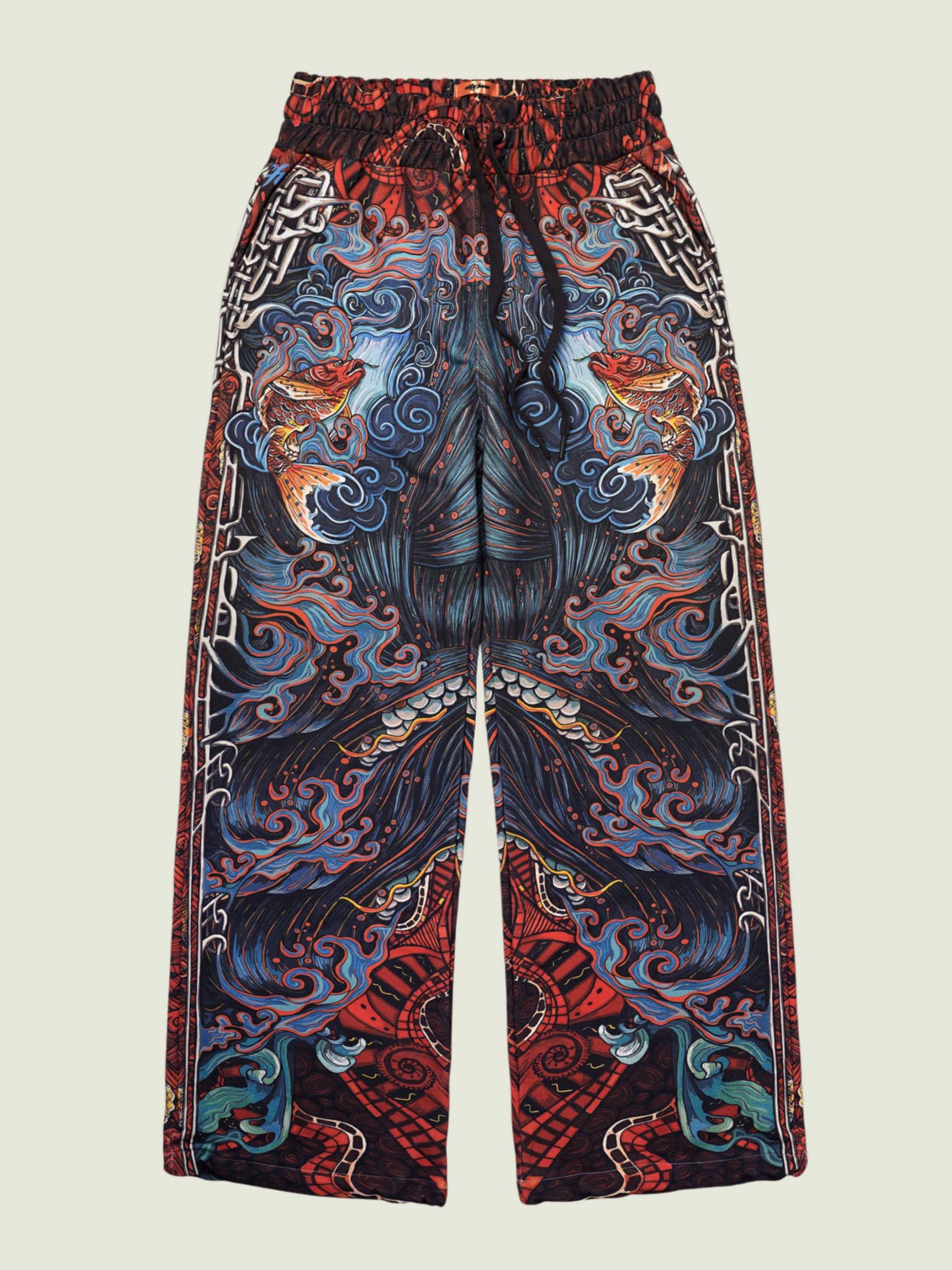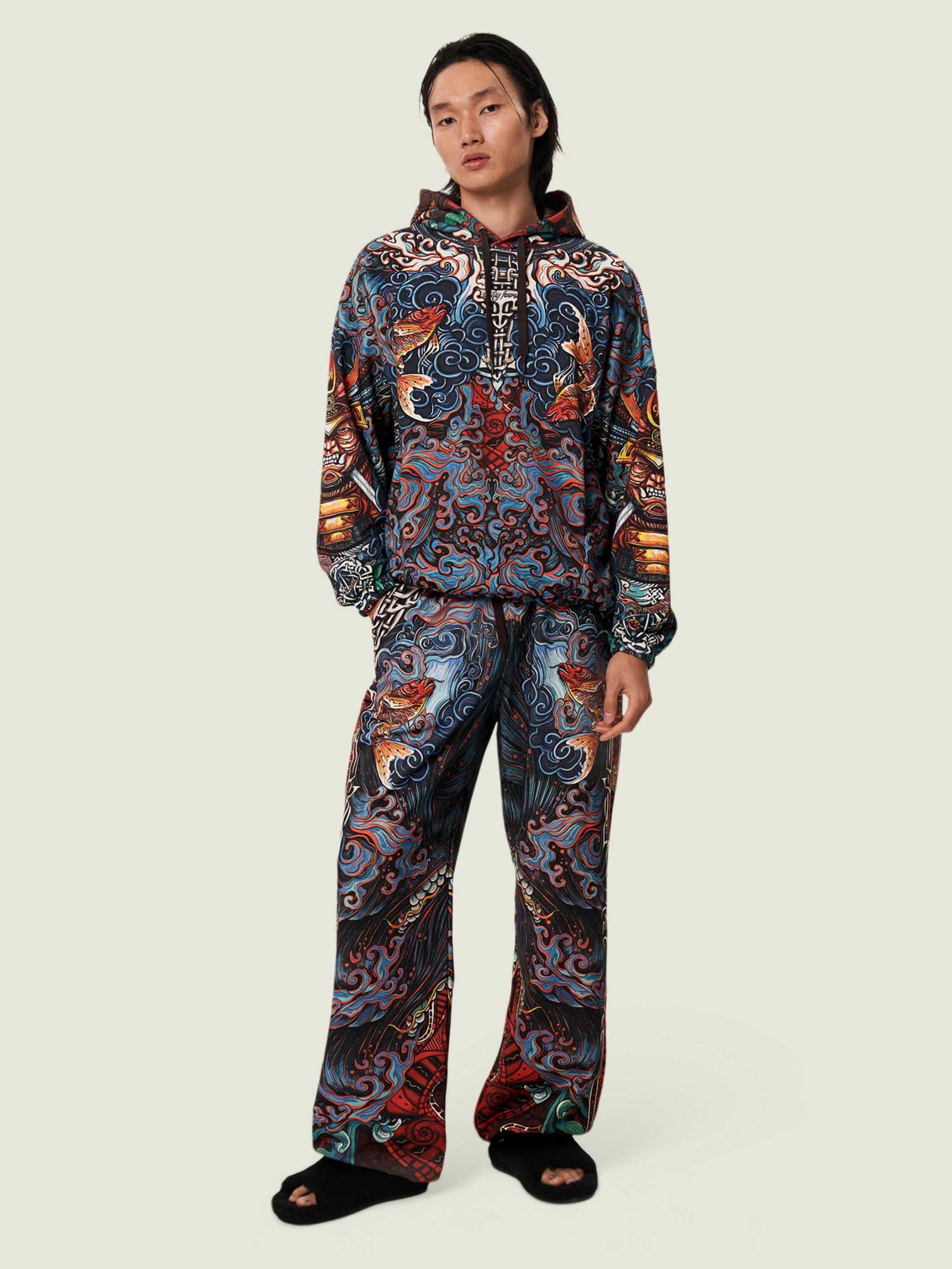 Широкие штаны в стиле интеллиджент оверсайз с узнаваемой сложной текстильной графикой CITY HERO. На конце штанин реализованы ограничители с регулировкой, которые позволяют сделать низ штанов собранными или распущенными. Удобные объемные боковые карманы-ловушки, сконструированы так, чтобы из них не выпадало содержимое. Изделие спроектировано как для комбинирования с базовыми вещами, так и для дополнения костюмного тотал-лука того же дизайна.