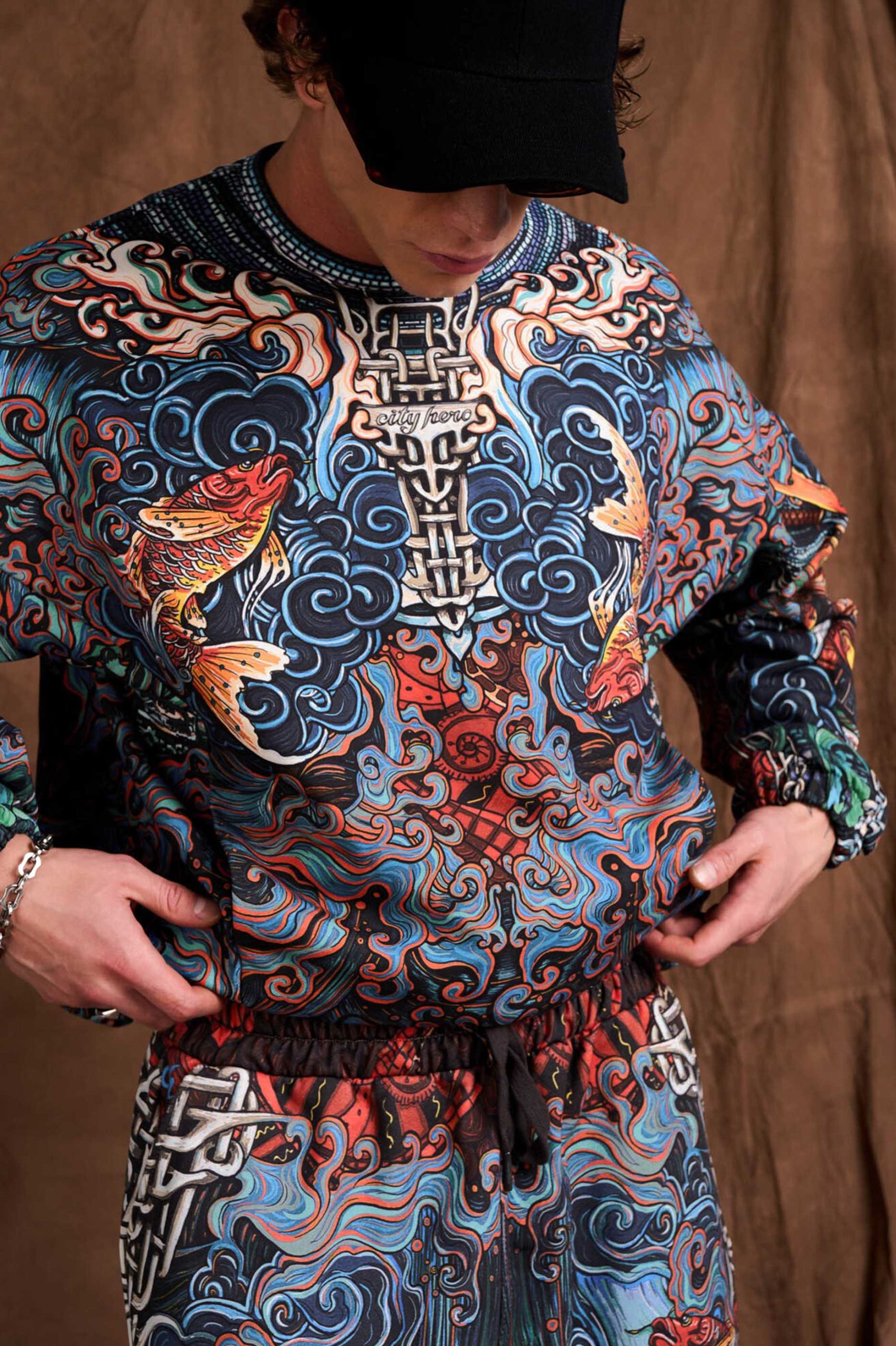 Свитшот в стиле интеллиджент оверсайз с узнаваемой сложной текстильной графикой CITY HERO. Изделие спроектировано как для комбинирования с базовыми вещами, так и для дополнения костюмного тотал-лука того же дизайна. Нижние боковые затяжки позволяют придать свитшоту как прямой, так и скруглённый силуэт.