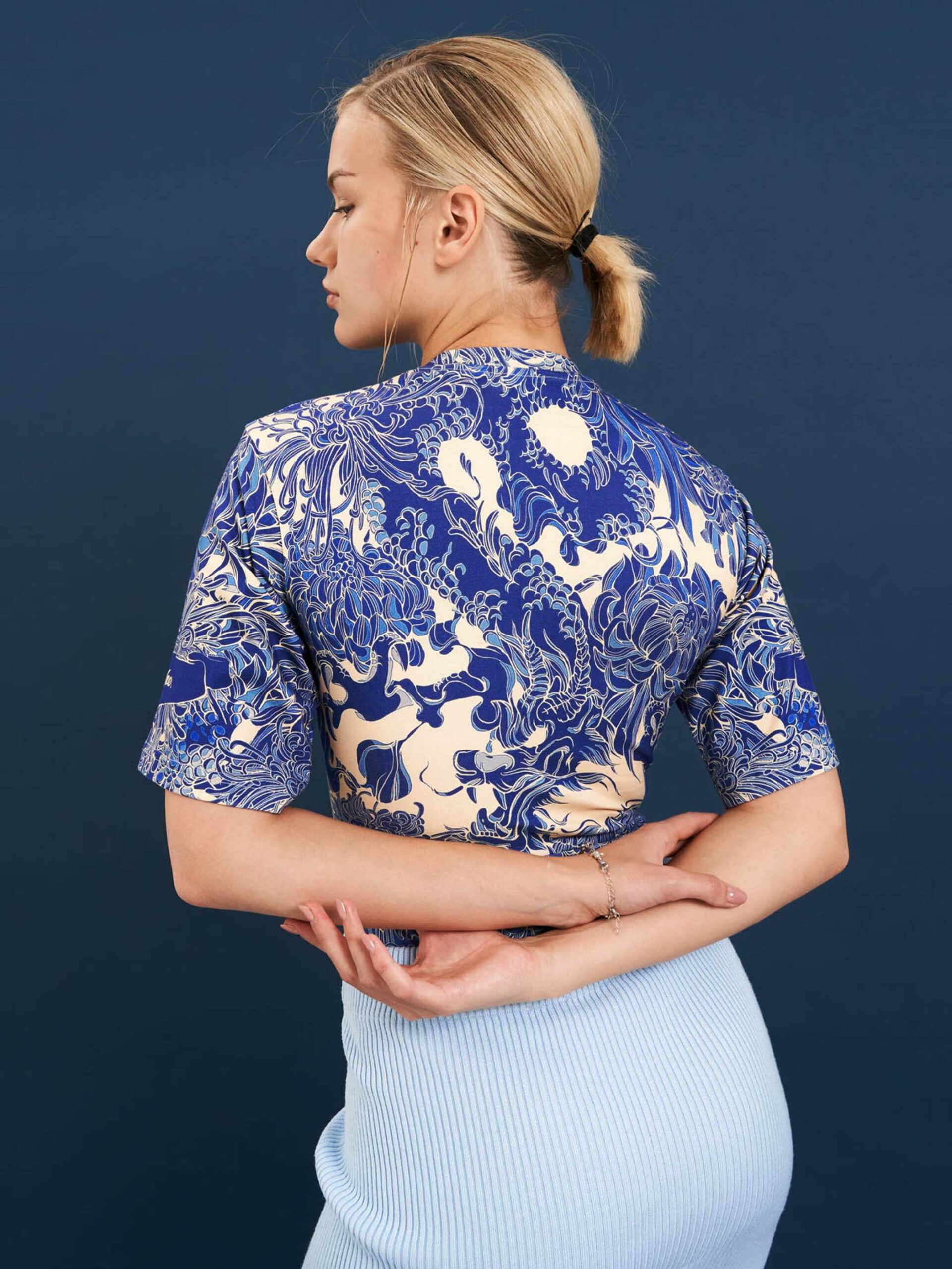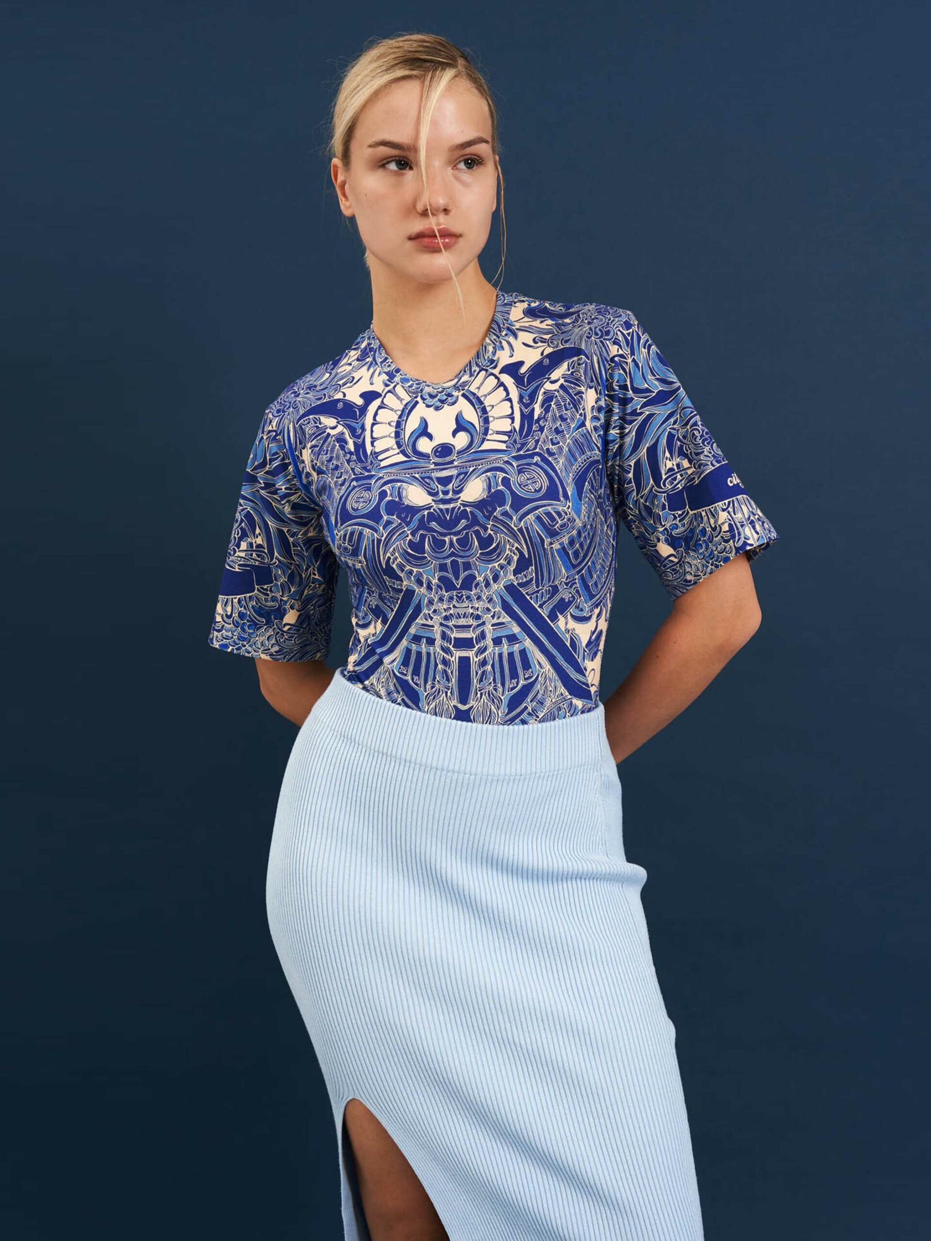 Боди-футболка универсальной формы, с широкими рукавами и прилегающим кроем. Боди можно комбинировать как с базовыми вещами, так и с изделиями CITY HERO того же или другого дизайна.