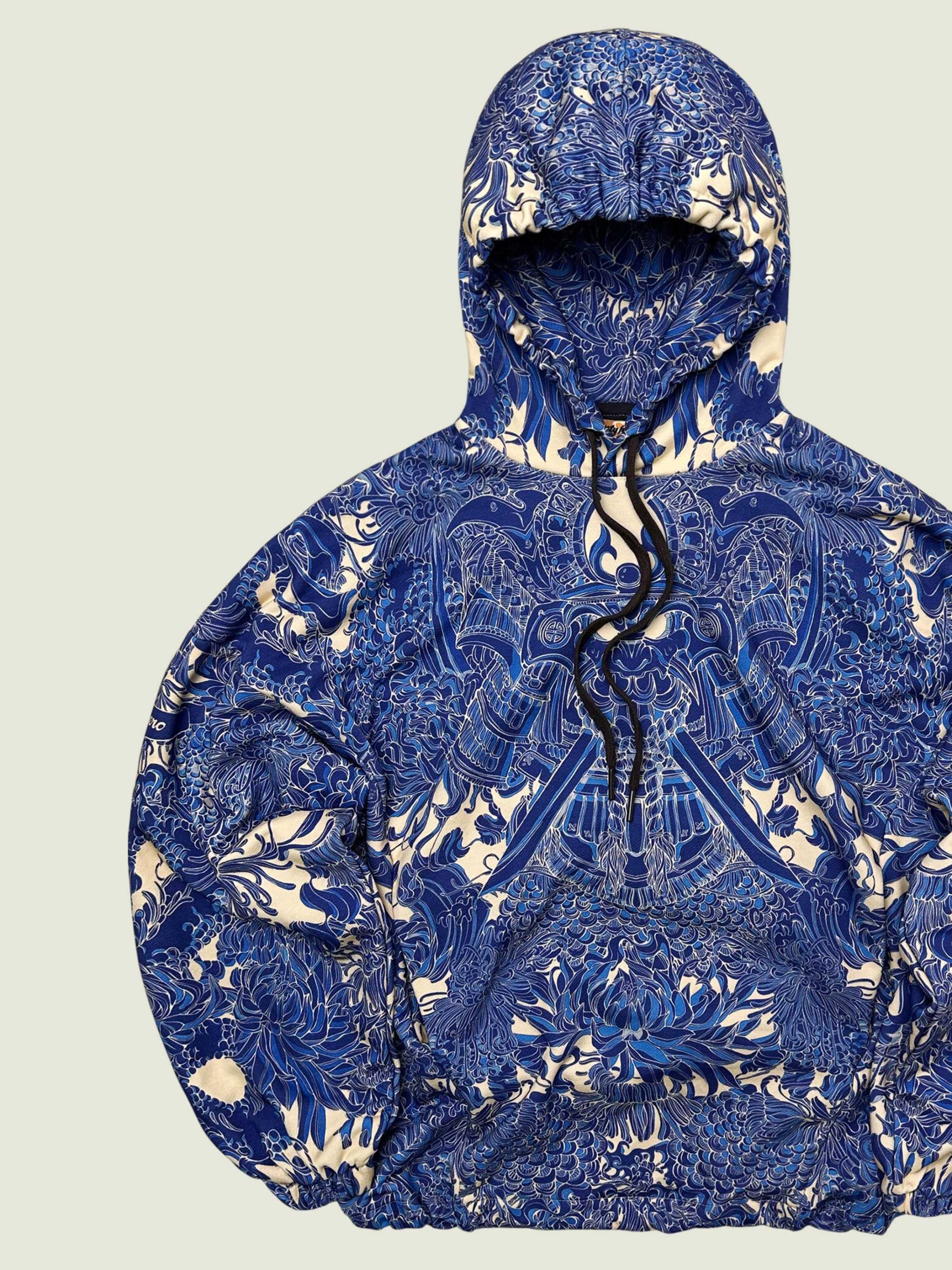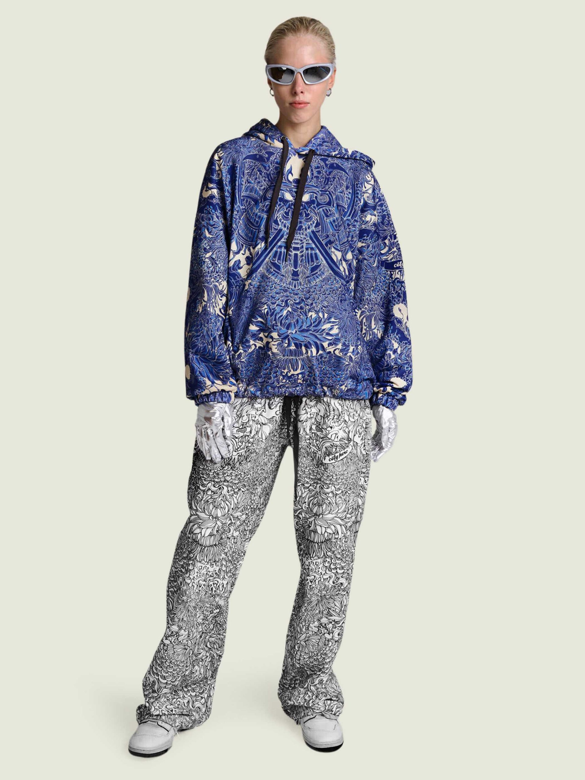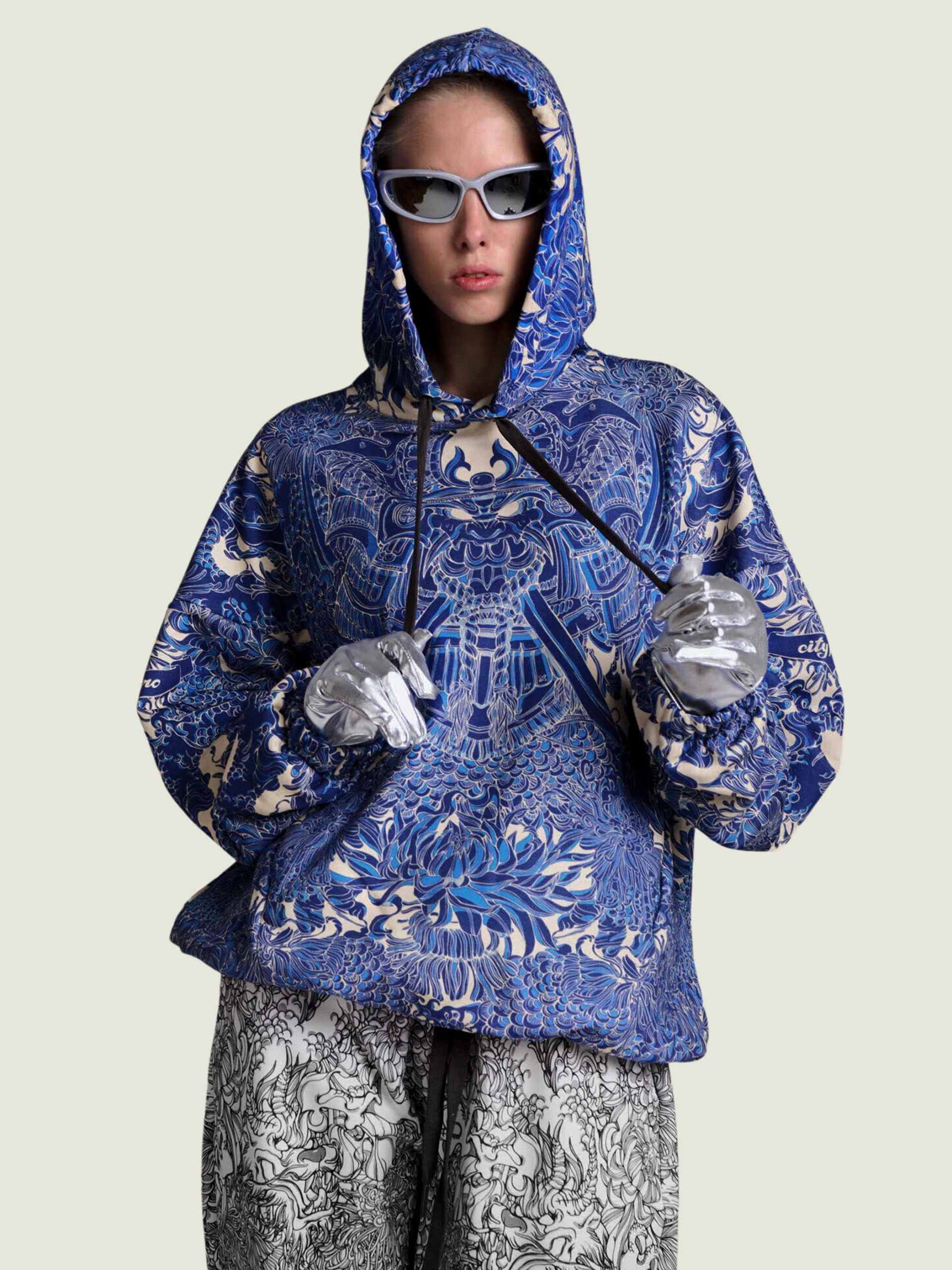 Худи в стиле интеллиджент оверсайз с узнаваемой сложной текстильной графикой CITY HERO. Изделие спроектировано как для комбинирования с базовыми вещами, так и для дополнения костюмного тотал-лука того же дизайна. Нижние боковые затяжки позволяют придать худи как прямой, так и скруглённый силуэт.