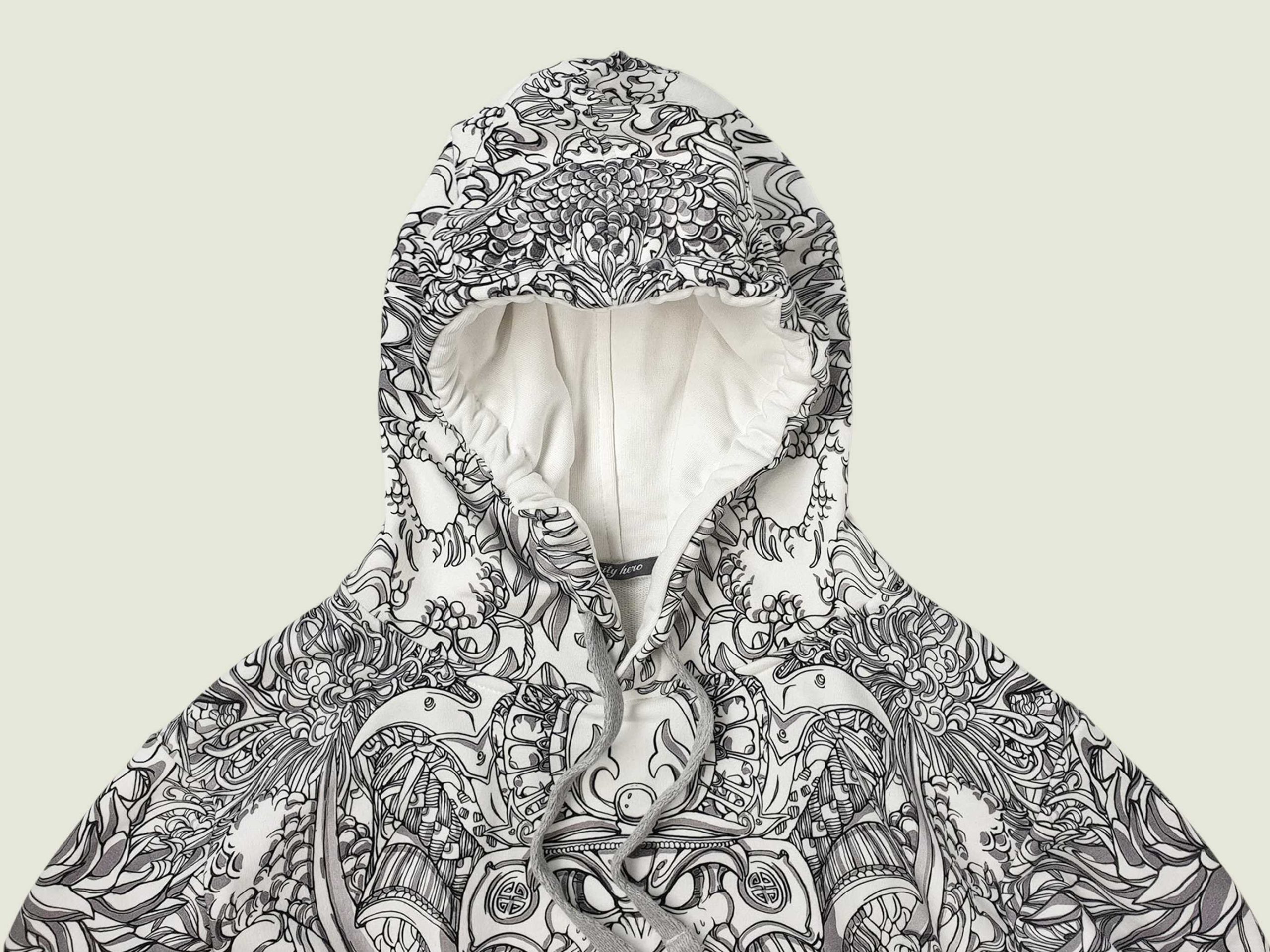 SAMURAI STORY 3.0 [MILKY] Городской худи молочного цвета из петлевого футера.