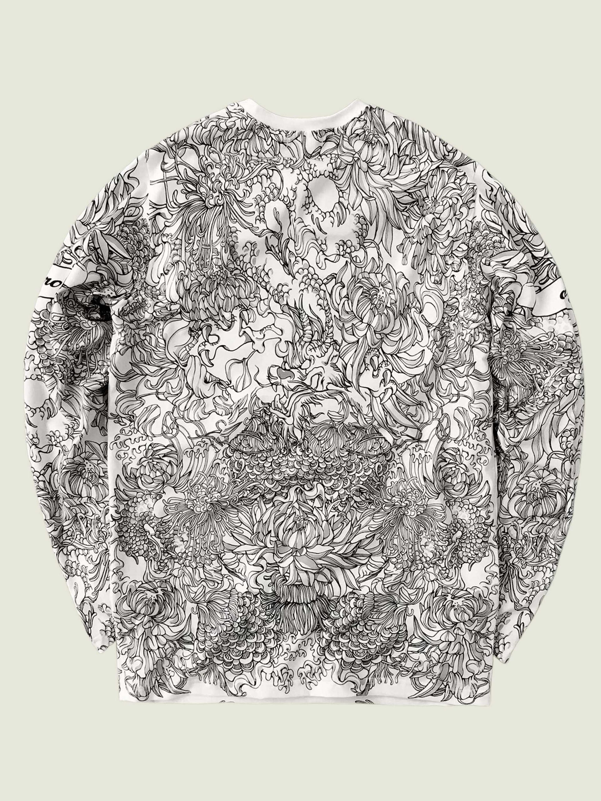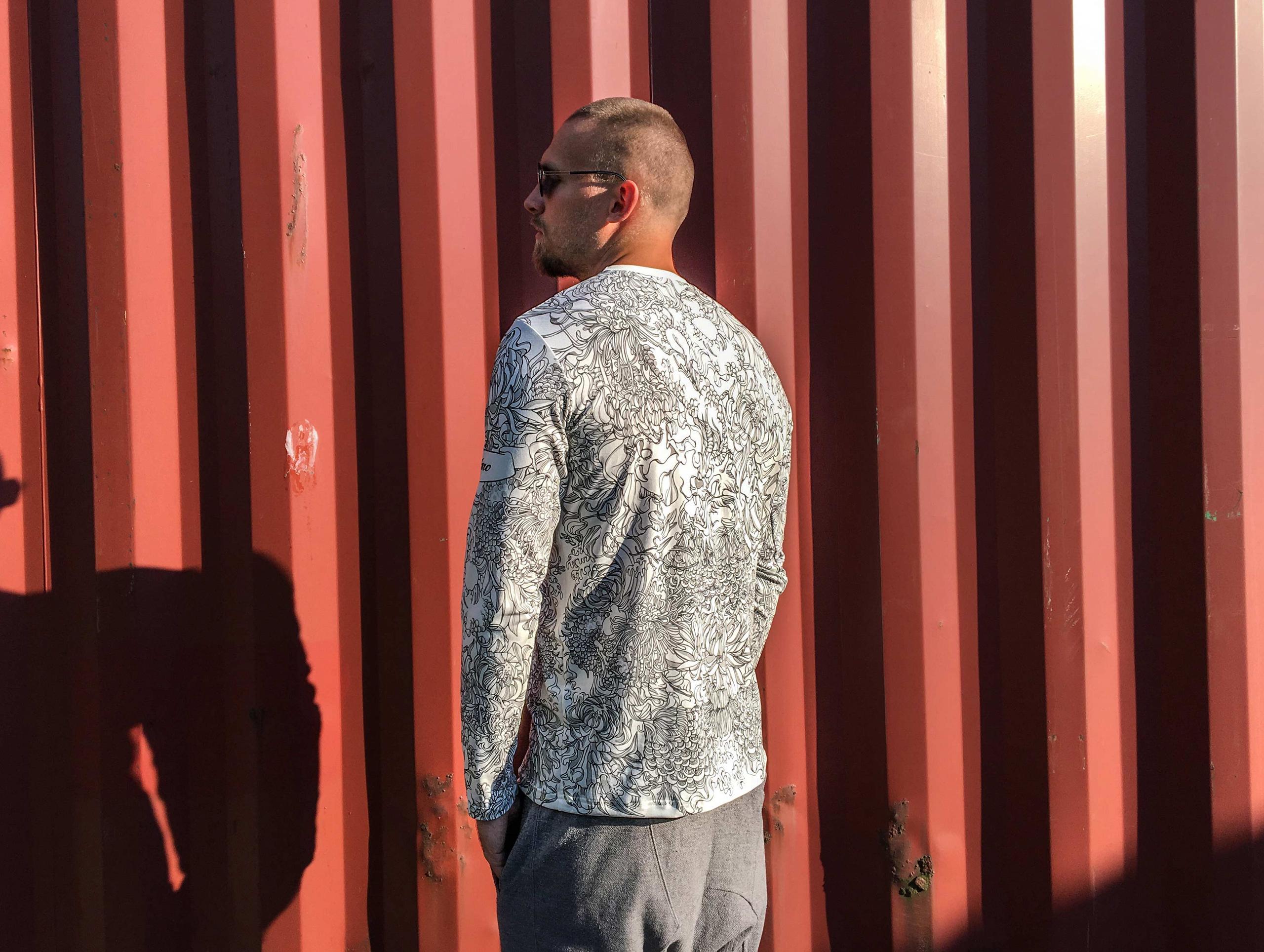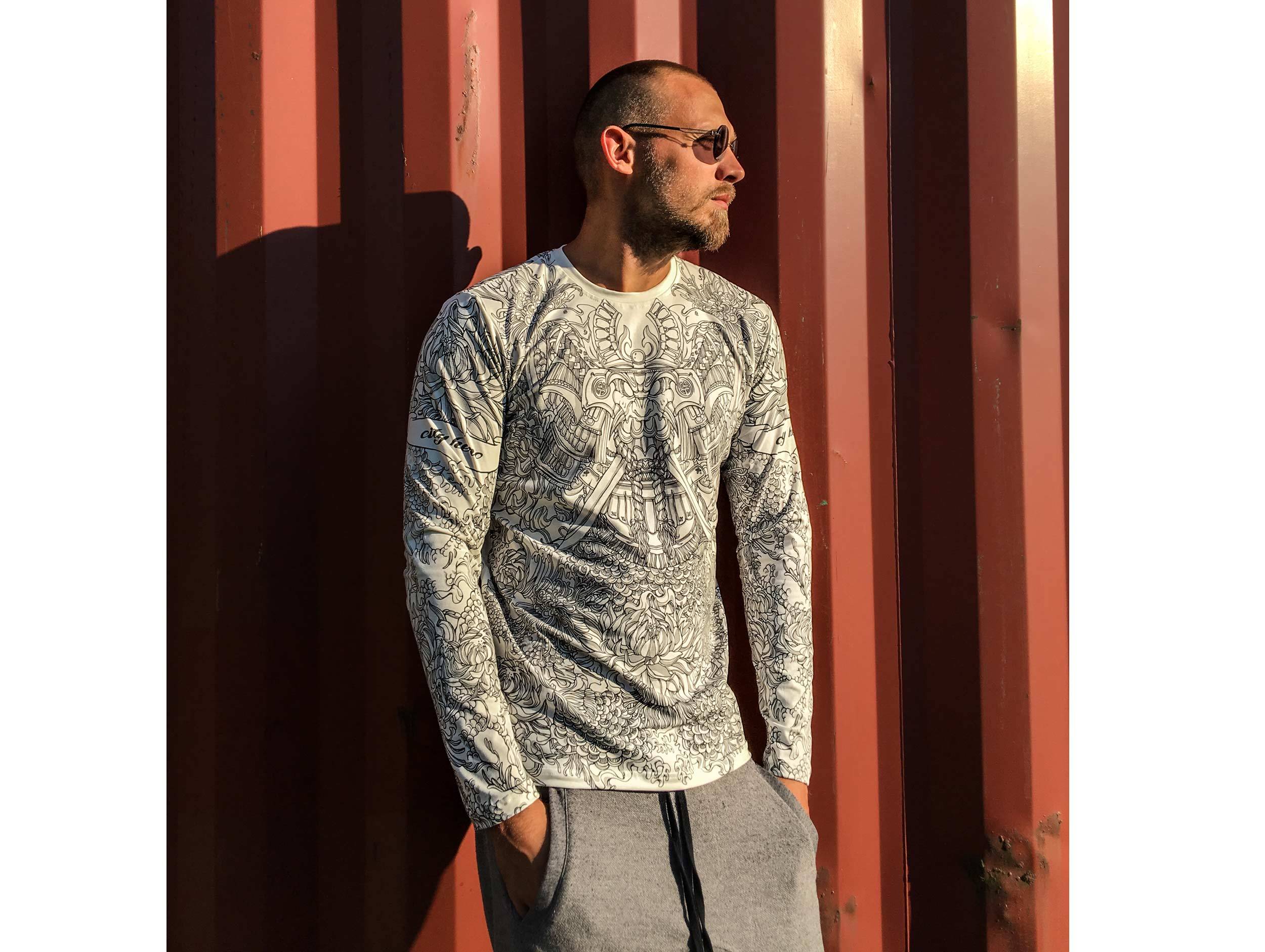 Лонгслив ‘SAMURAI STORY 3.0’ молочного цвета из эластичного хлопкового трикотажа. Графичный и насыщенный деталями дизайн, напоминающий своей композицией о традиционной японской татуировке.