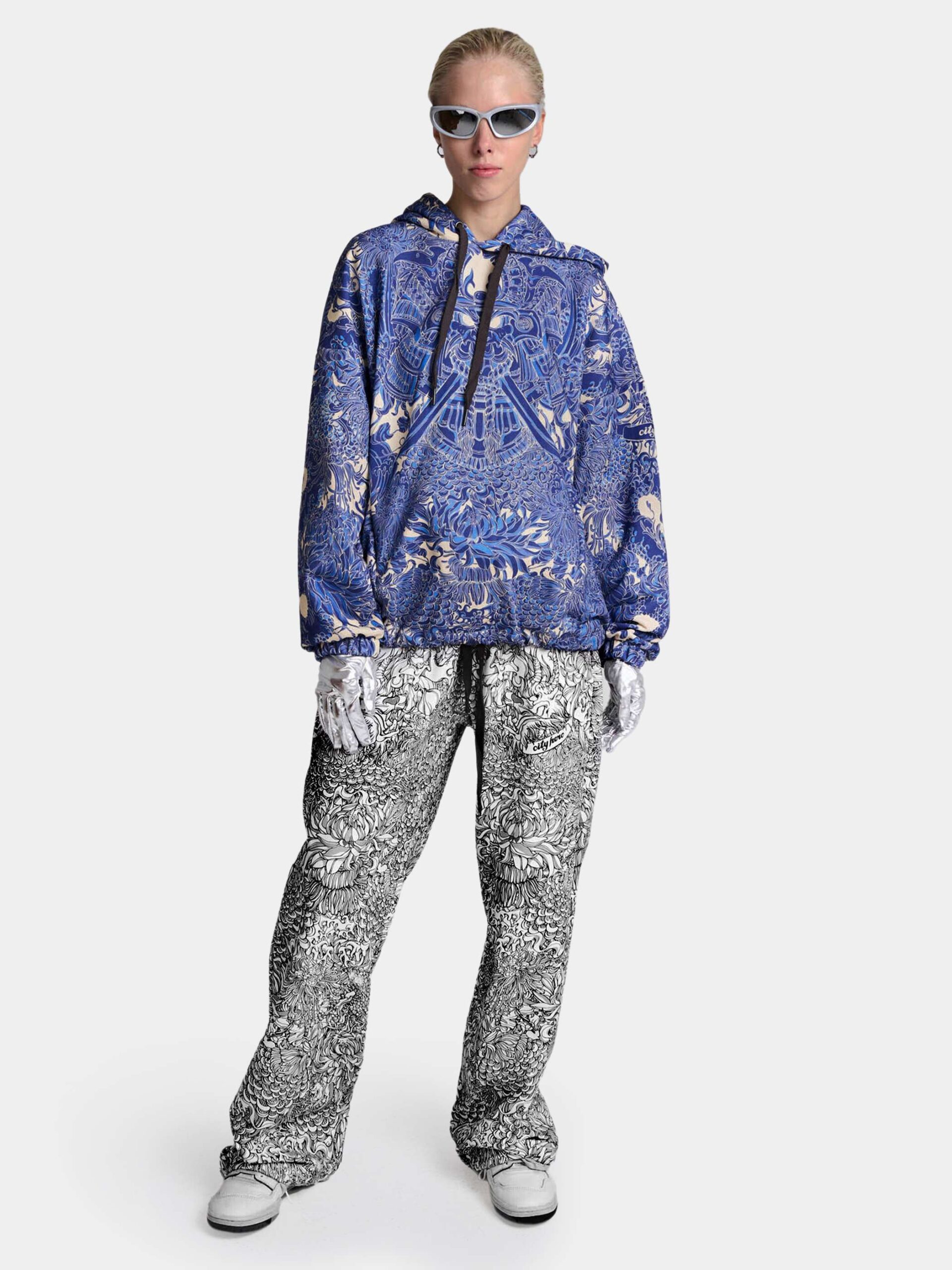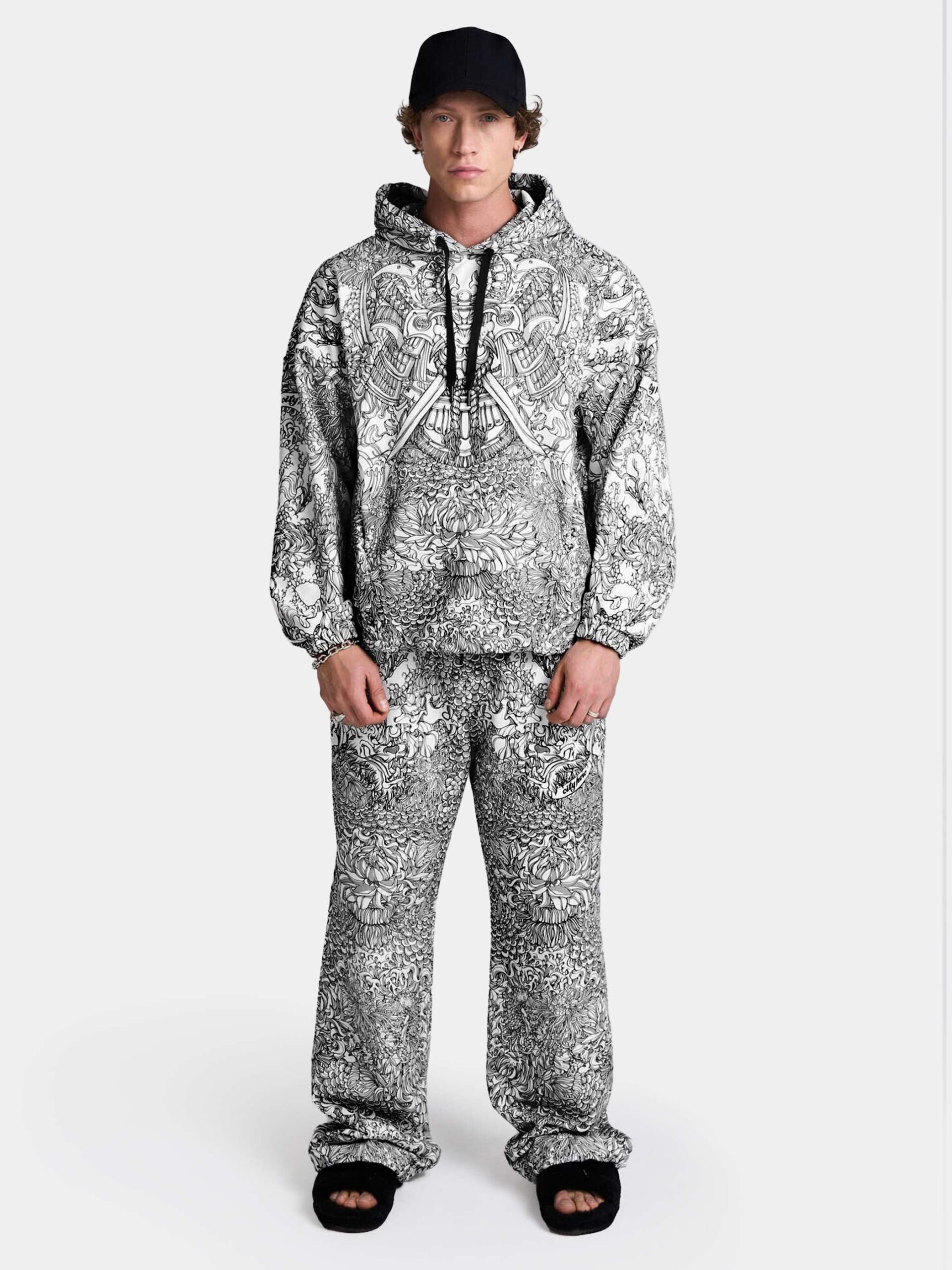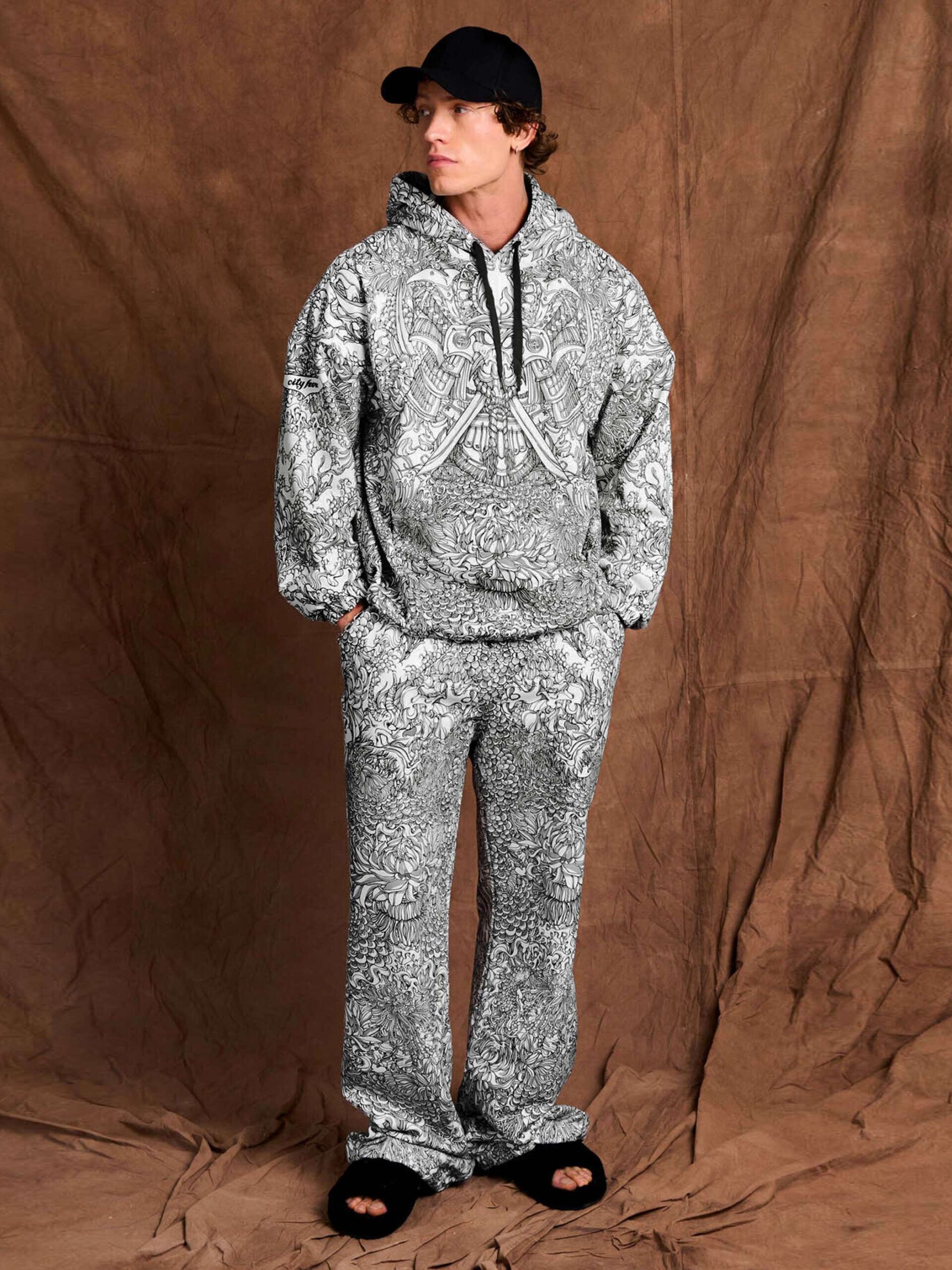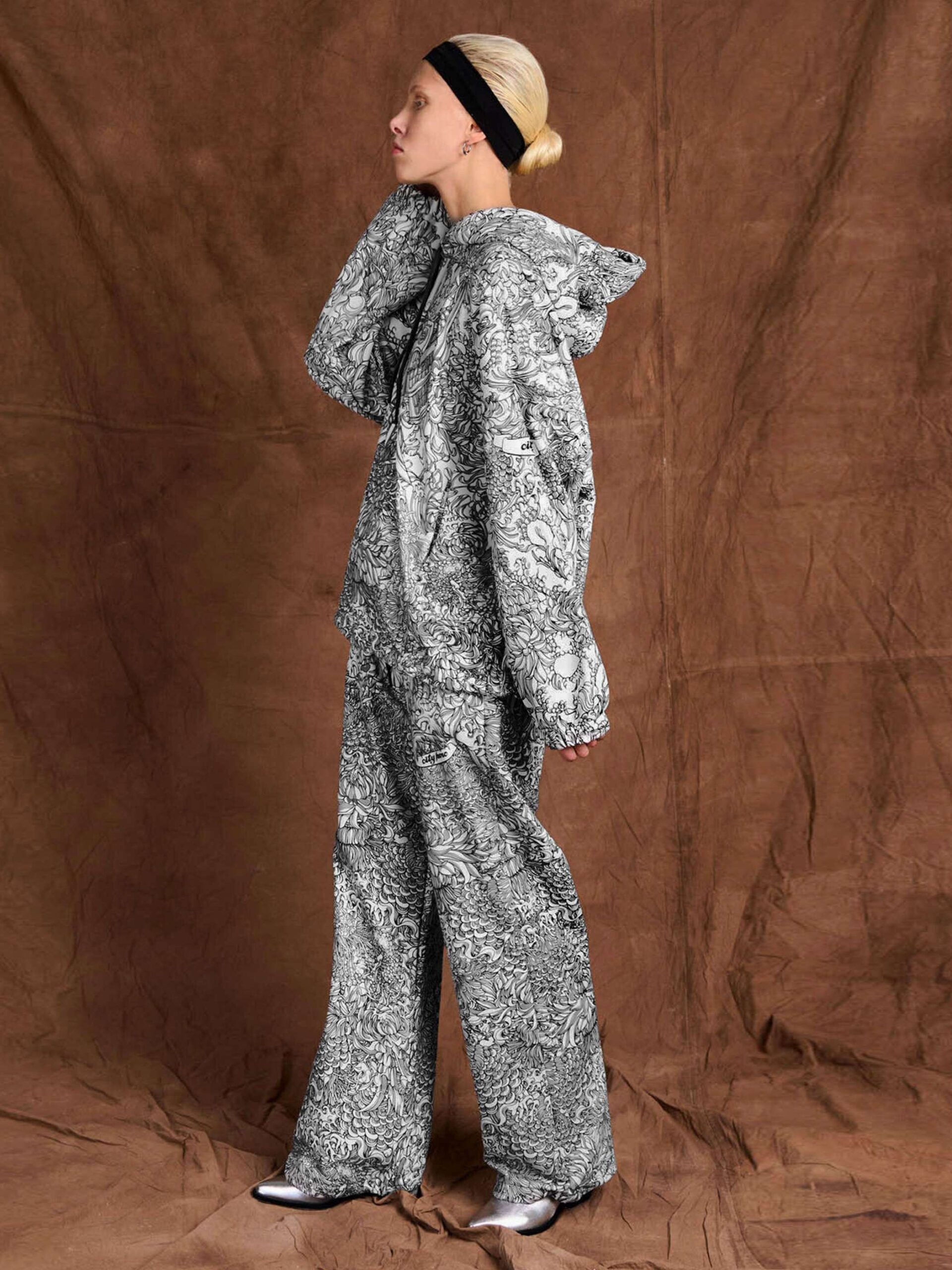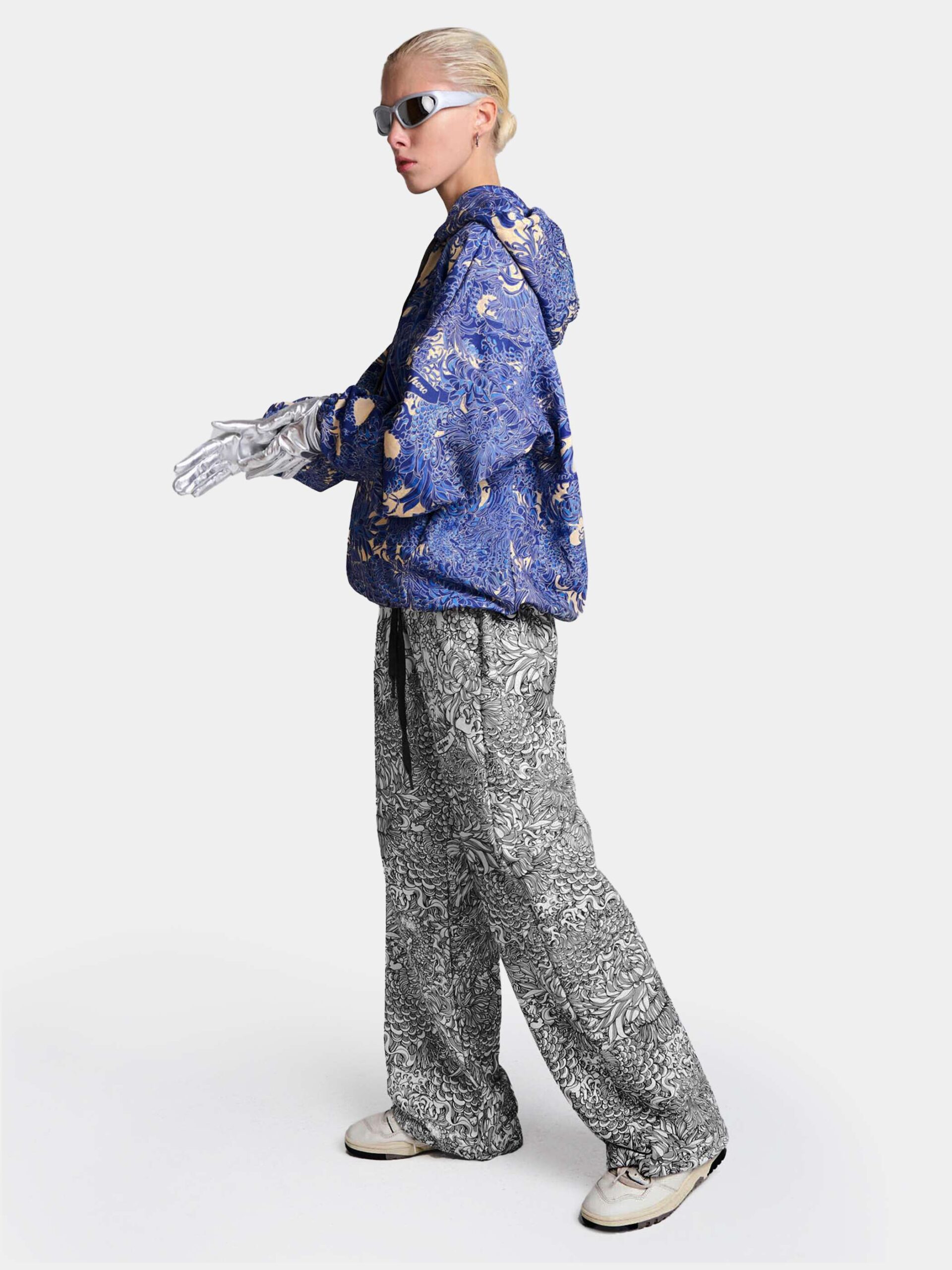 Широкие штаны в стиле интеллиджент оверсайз с узнаваемой сложной текстильной графикой CITY HERO. На конце штанин реализованы ограничители с регулировкой, которые позволяют сделать низ штанов собранными или распущенными. Удобные объемные боковые карманы-ловушки, сконструированы так, чтобы из них не выпадало содержимое. Изделие спроектировано как для комбинирования с базовыми вещами, так и для дополнения костюмного тотал-лука того же дизайна.