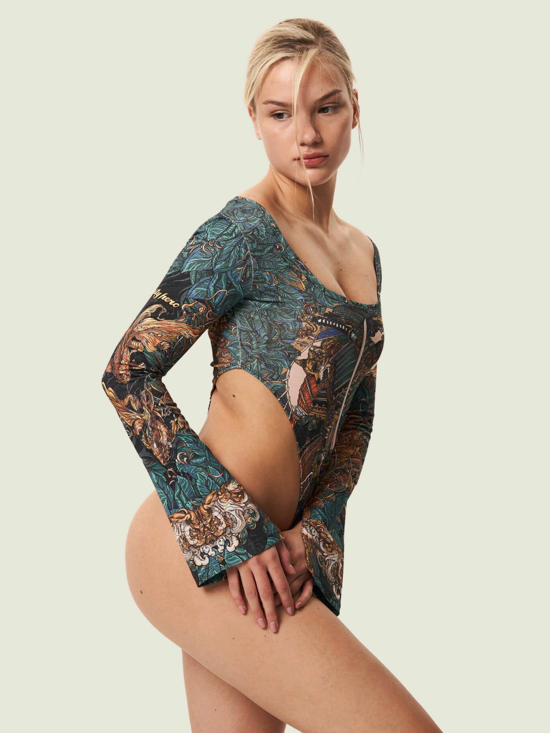 Боди-каре с глубокими вырезами и прилегающим кроем. Боди можно комбинировать как с базовыми вещами, так и с изделиями CITY HERO того же или другого дизайна.