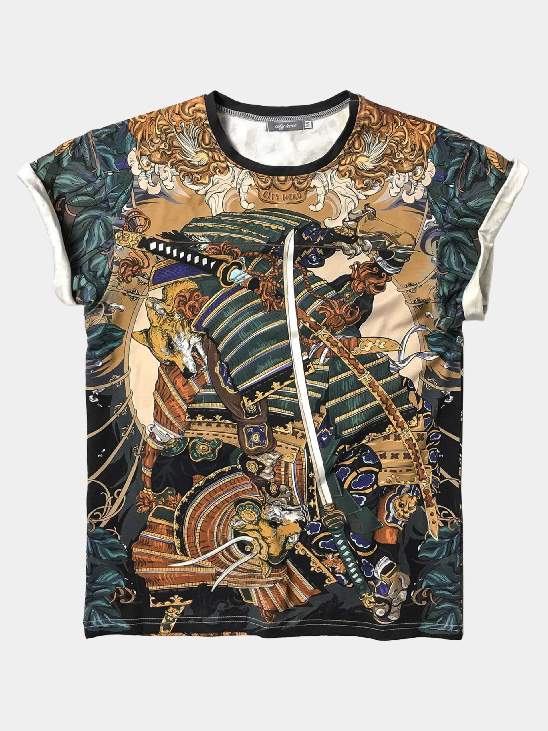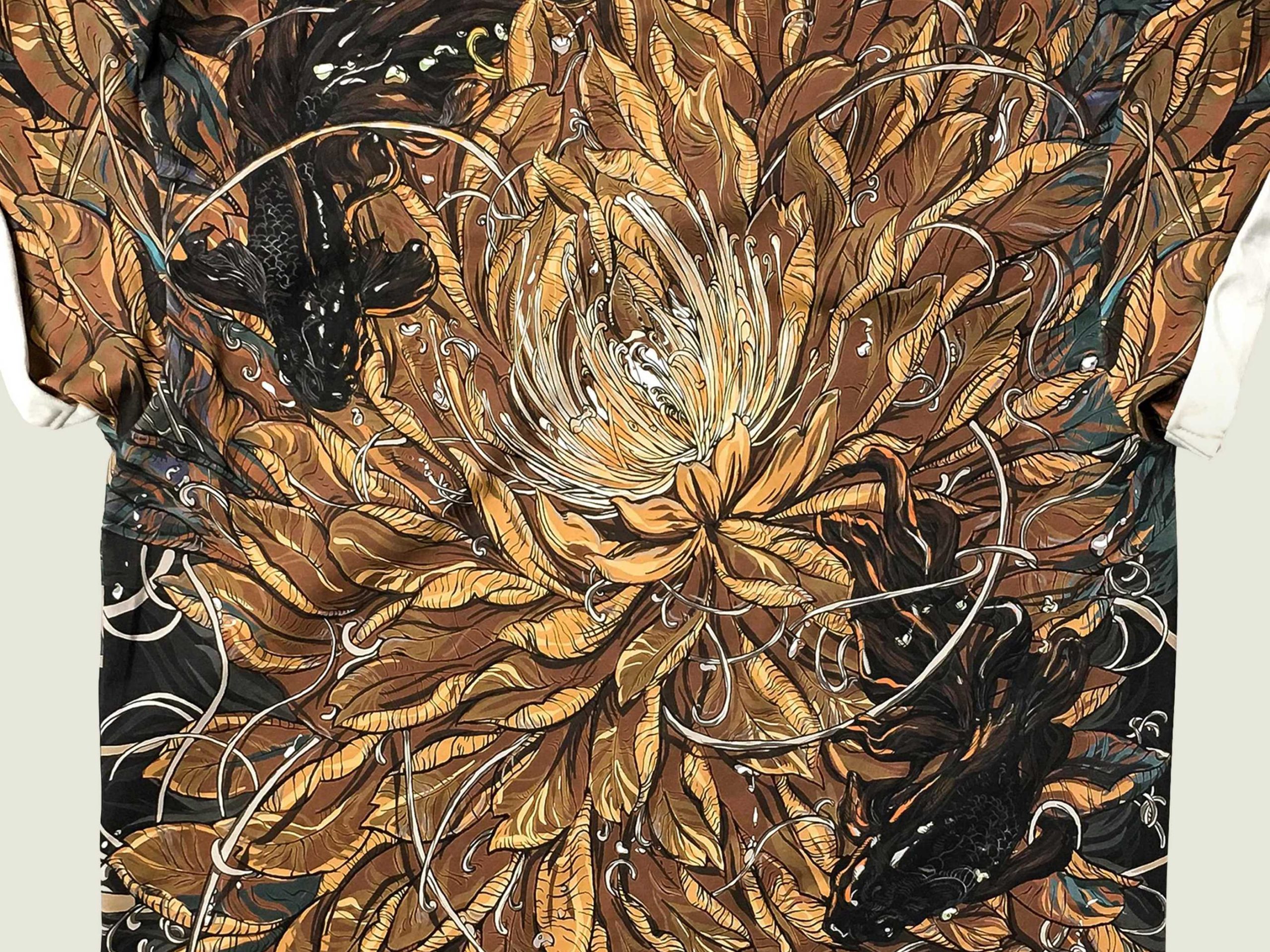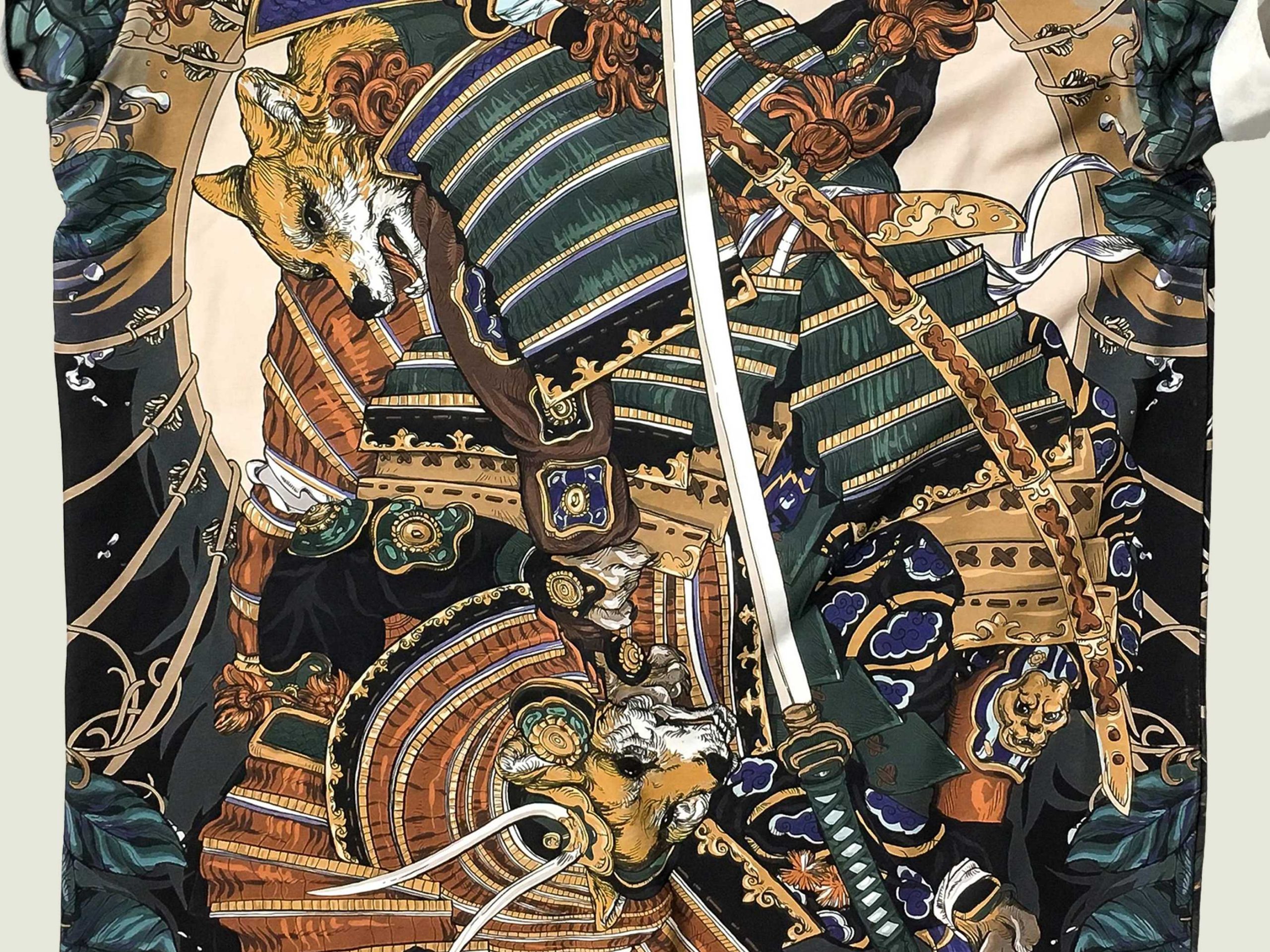 Сиба-ину — с деталями традиционных воинских одежд и мечами, сильная, напористая энергия которых уравновешена золотым лотосом — символом чистоты, совершенства и мудрости.