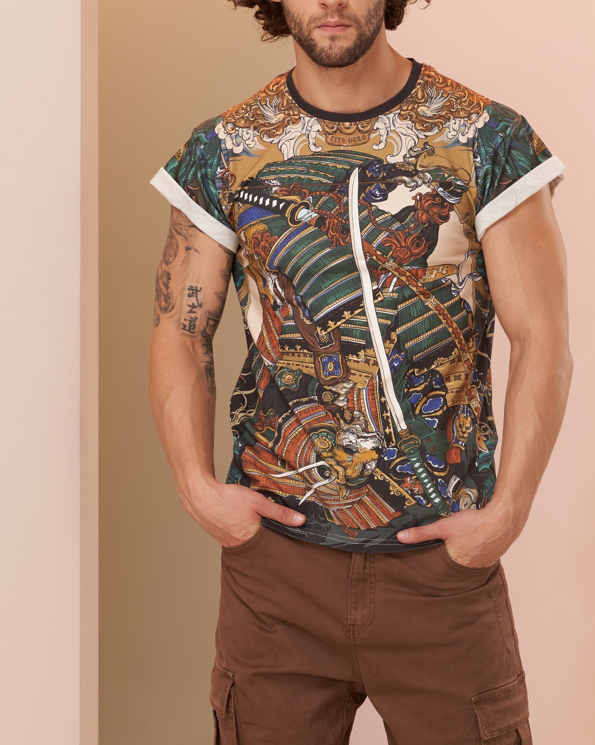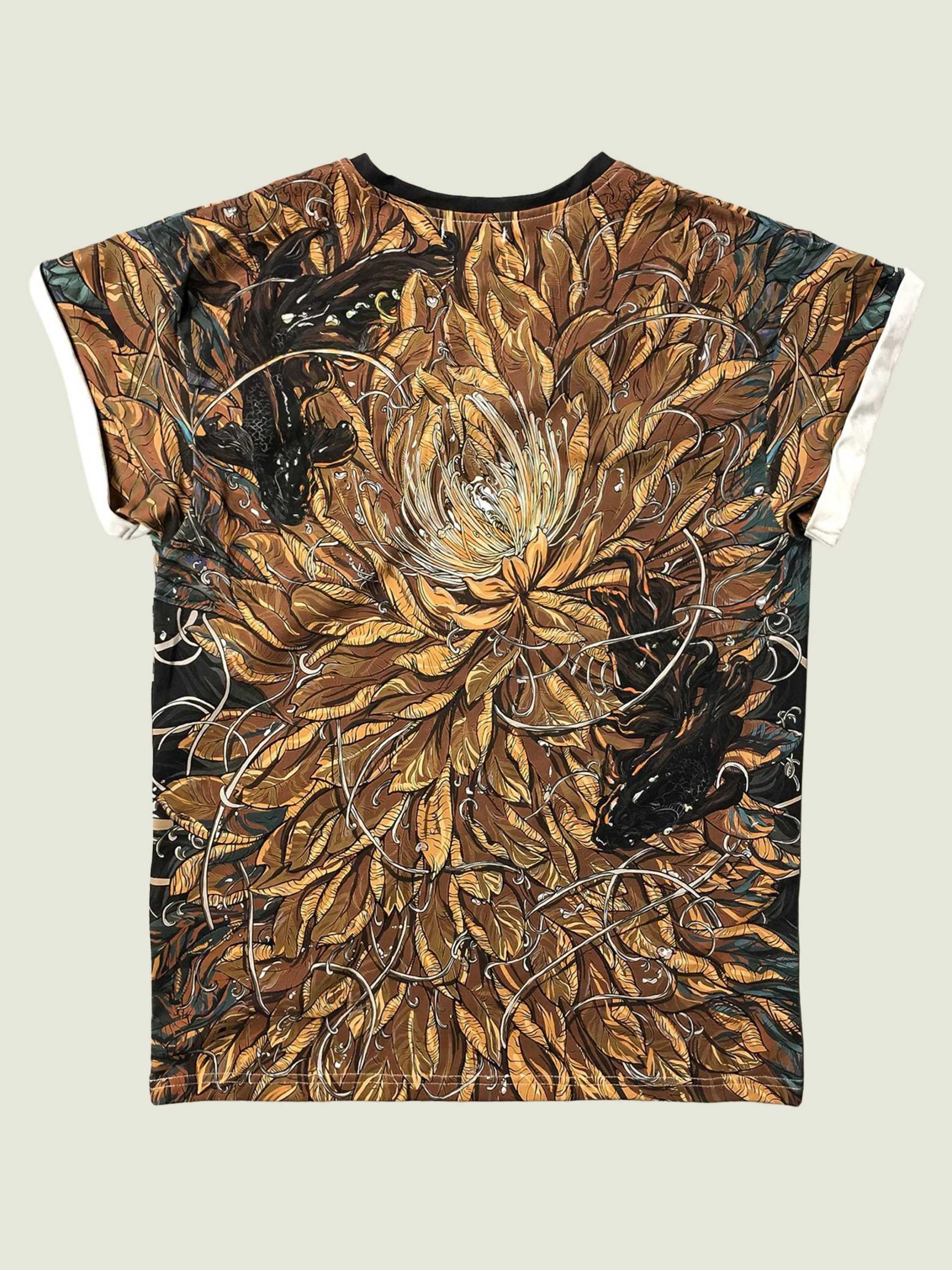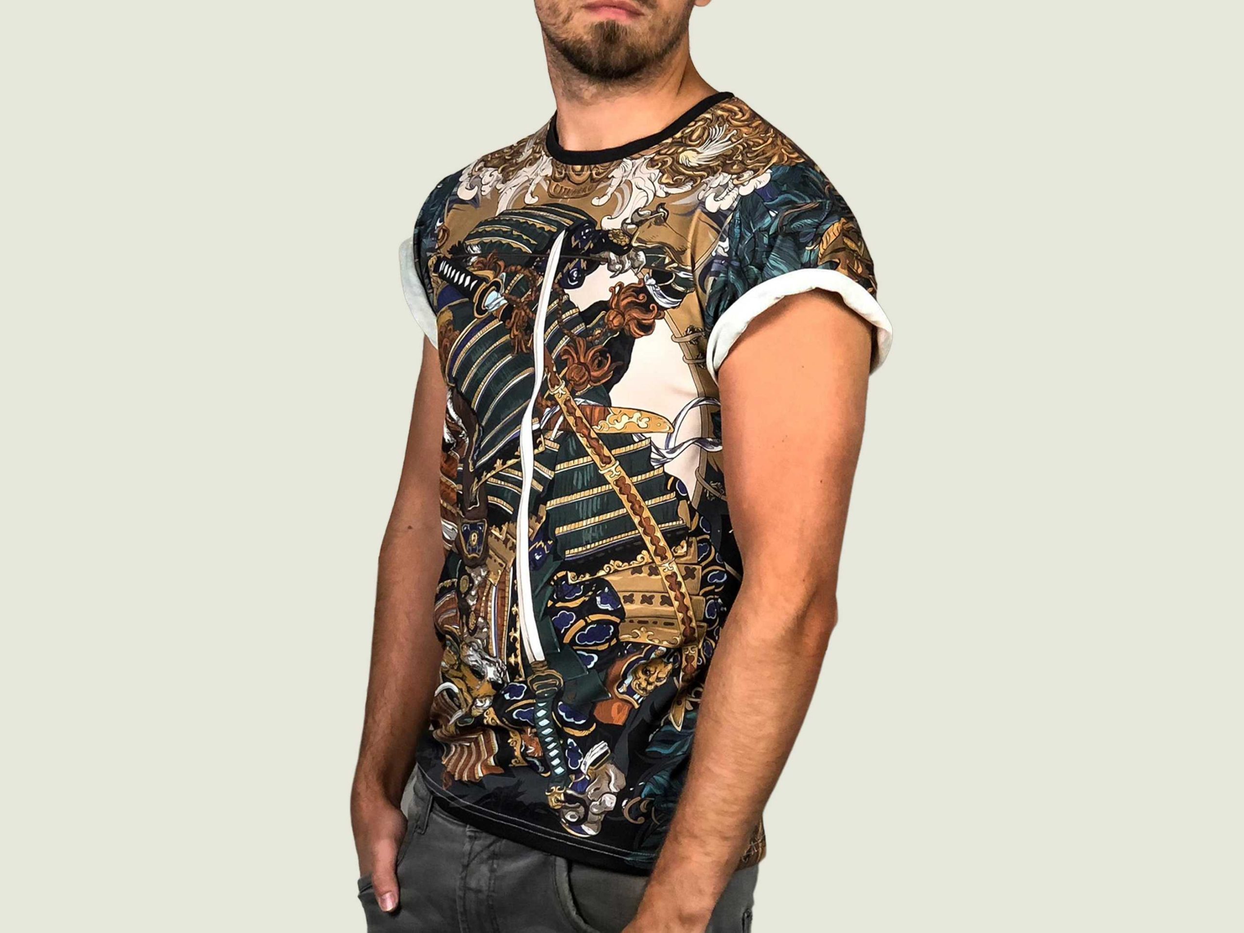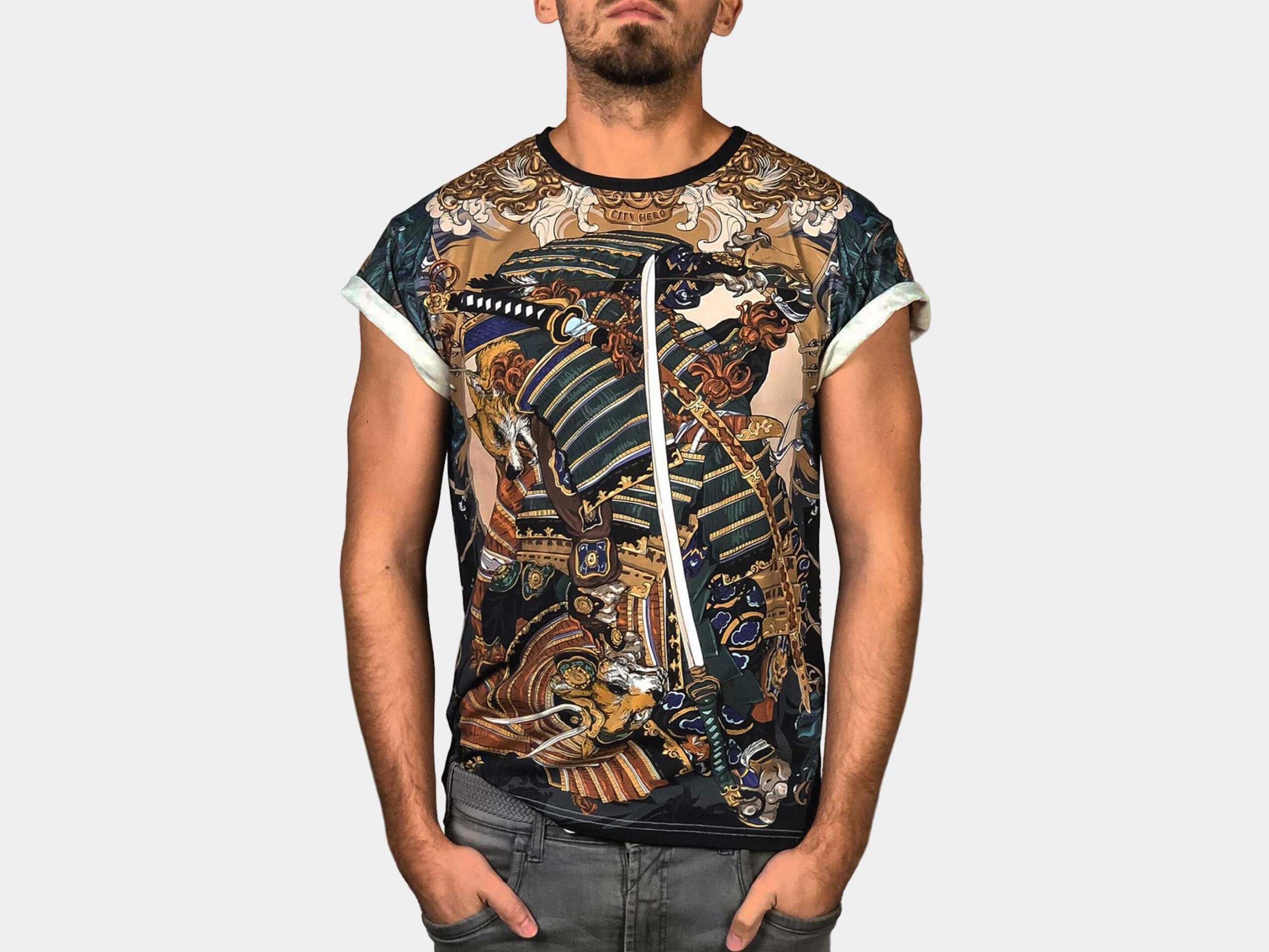 Сиба-ину — с деталями традиционных воинских одежд и мечами, сильная, напористая энергия которых уравновешена золотым лотосом — символом чистоты, совершенства и мудрости.