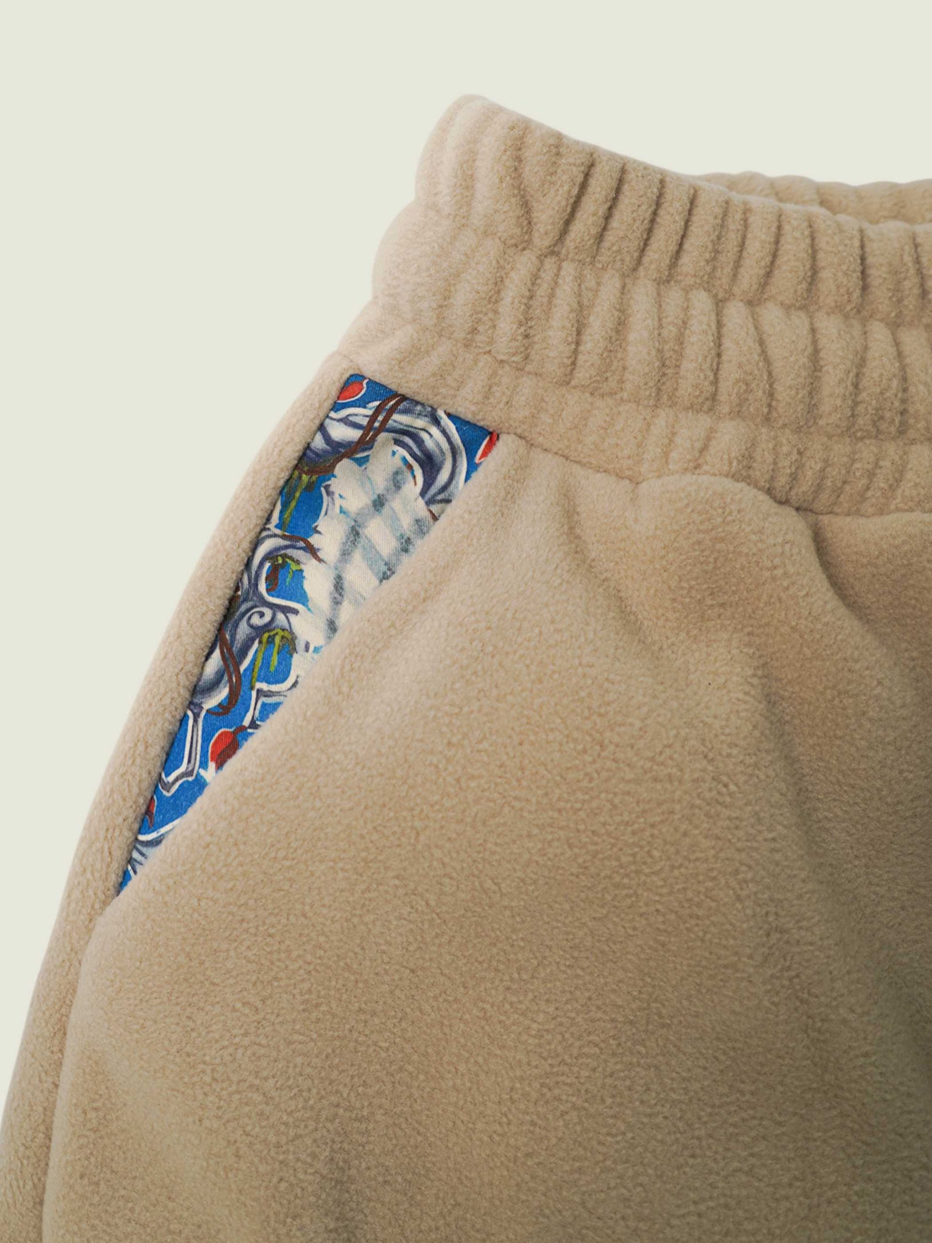 Тёплые зимние джоггеры в стиле интеллиджент оверсайз CITY HERO из толстого уютного флиса в бежевом цвете, с интересной деталью в виде украшенных текстильной графикой карманами. Рисунок продолжает сюжет с одноименной олимпийки. Низ штанин на резинке. Удобные объемные боковые карманы-ловушки, сконструированы так, чтобы из них не выпадало содержимое. Изделие спроектировано, как для комбинирования с базовыми вещами, так и для дополнения костюмного тотал-лука того же дизайна.
