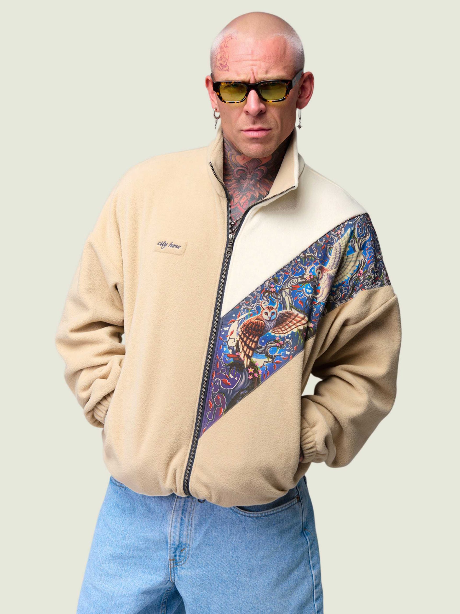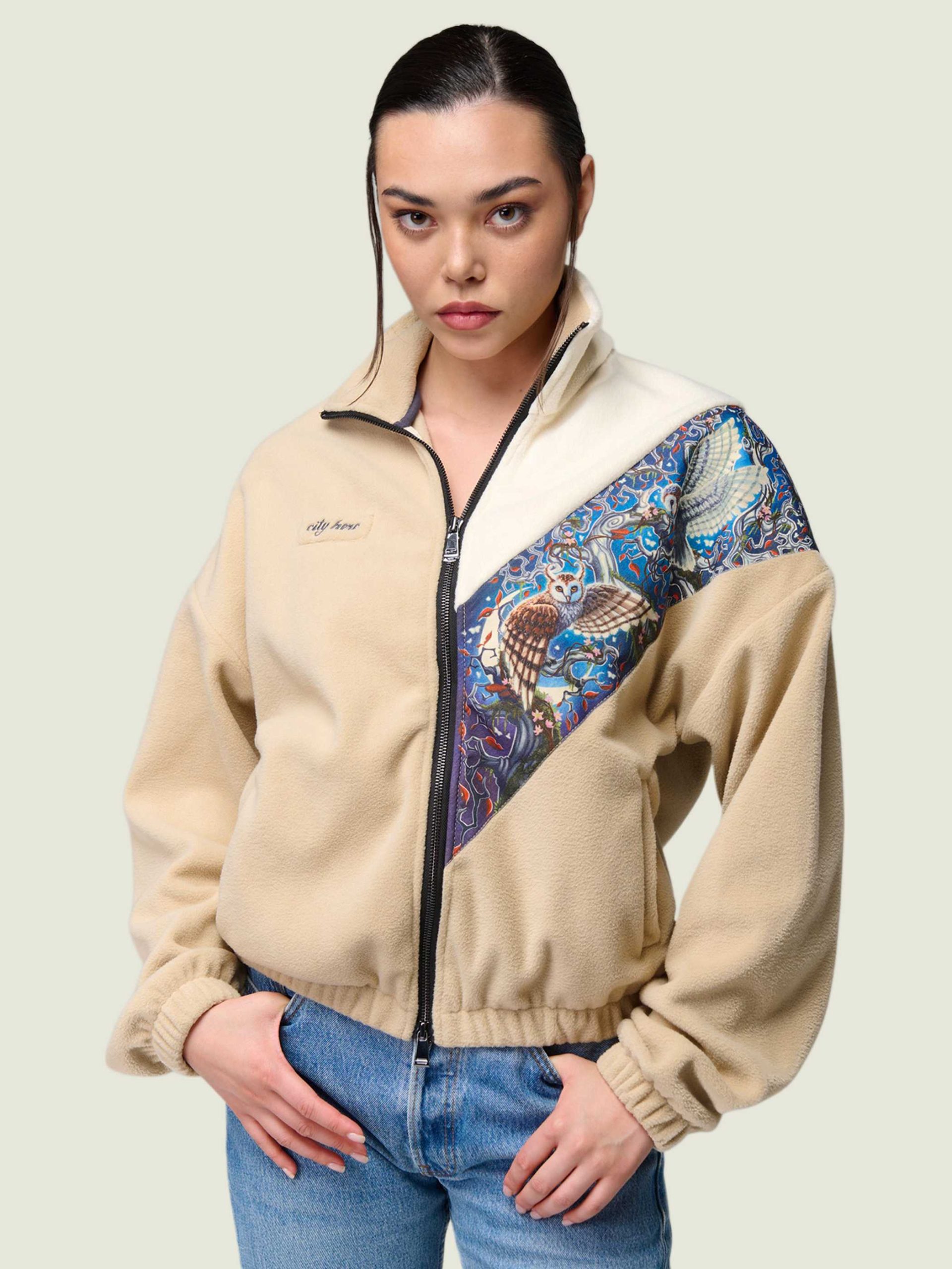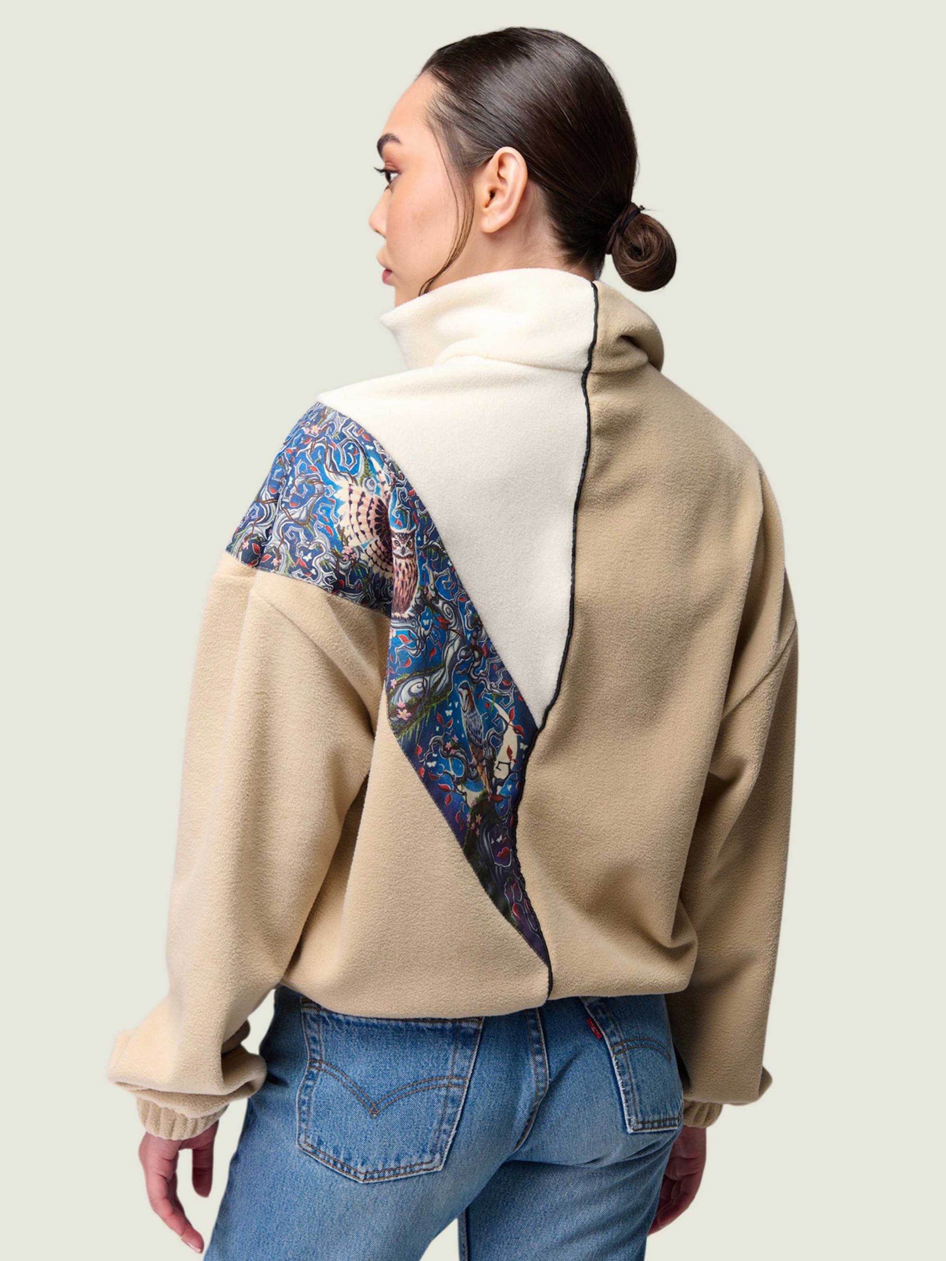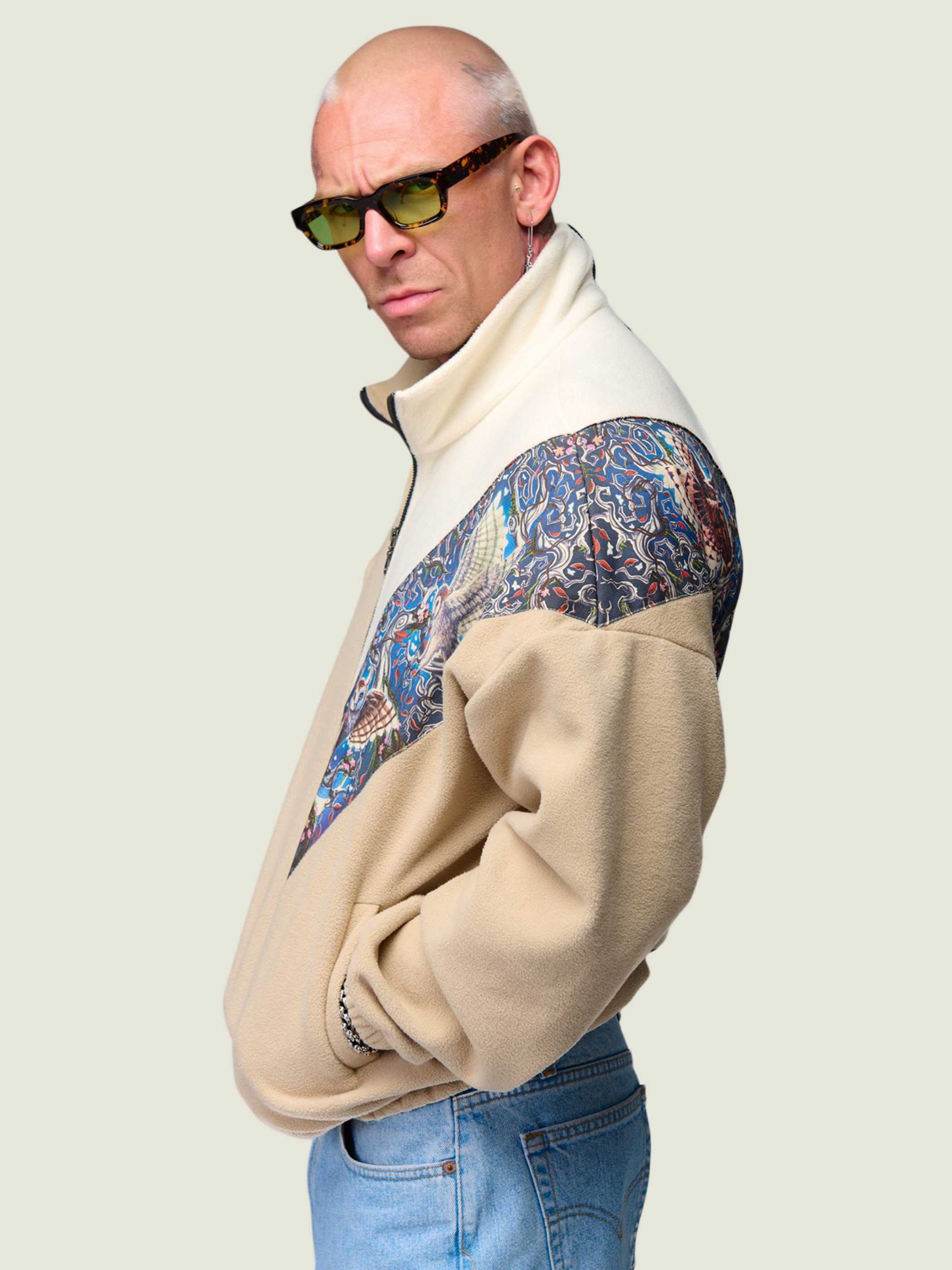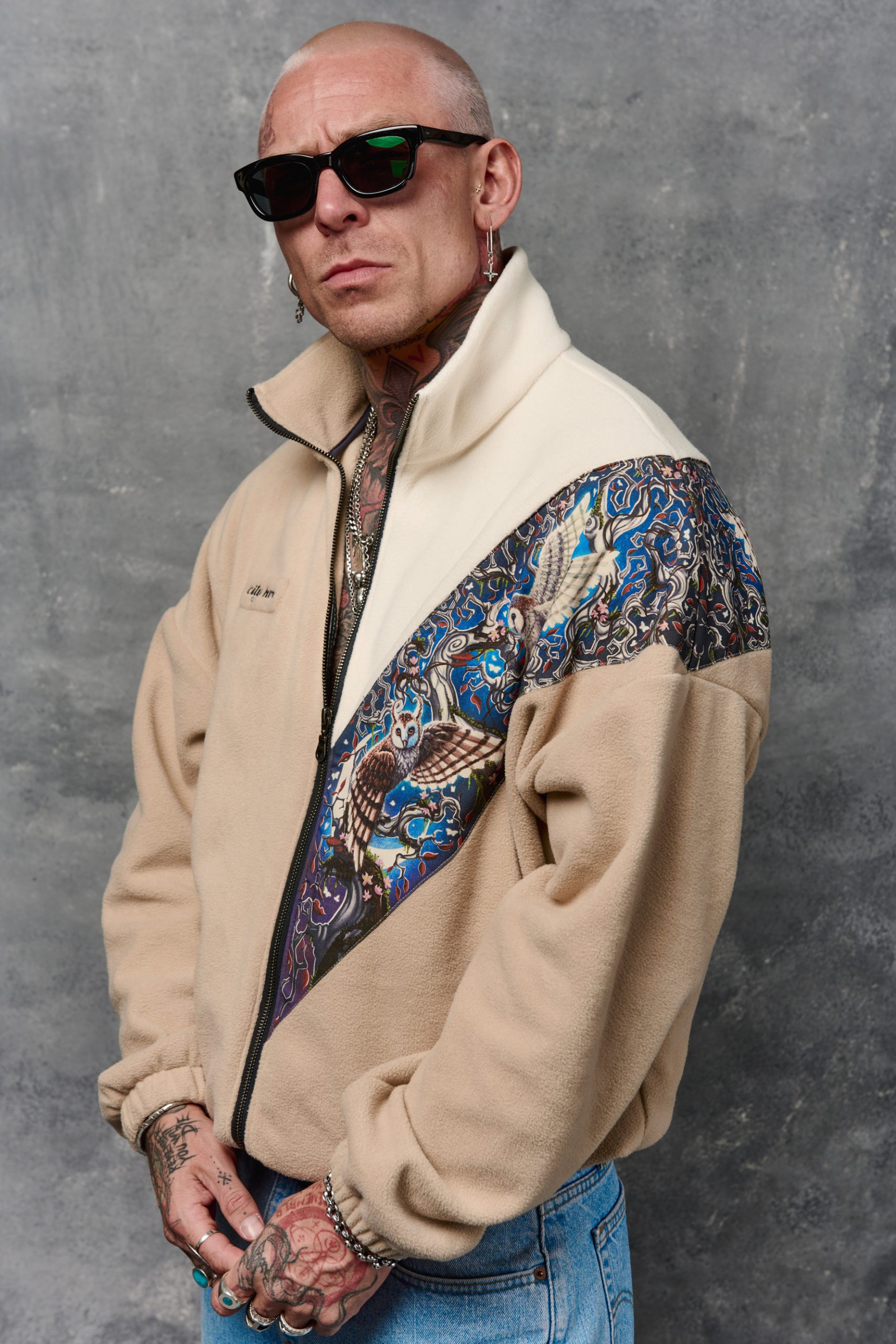 Толстовка оснащена двумя удобными карманами, металлической молнией с двумя бегунками, манжетами на резинках и высоким воротником-стойкой.