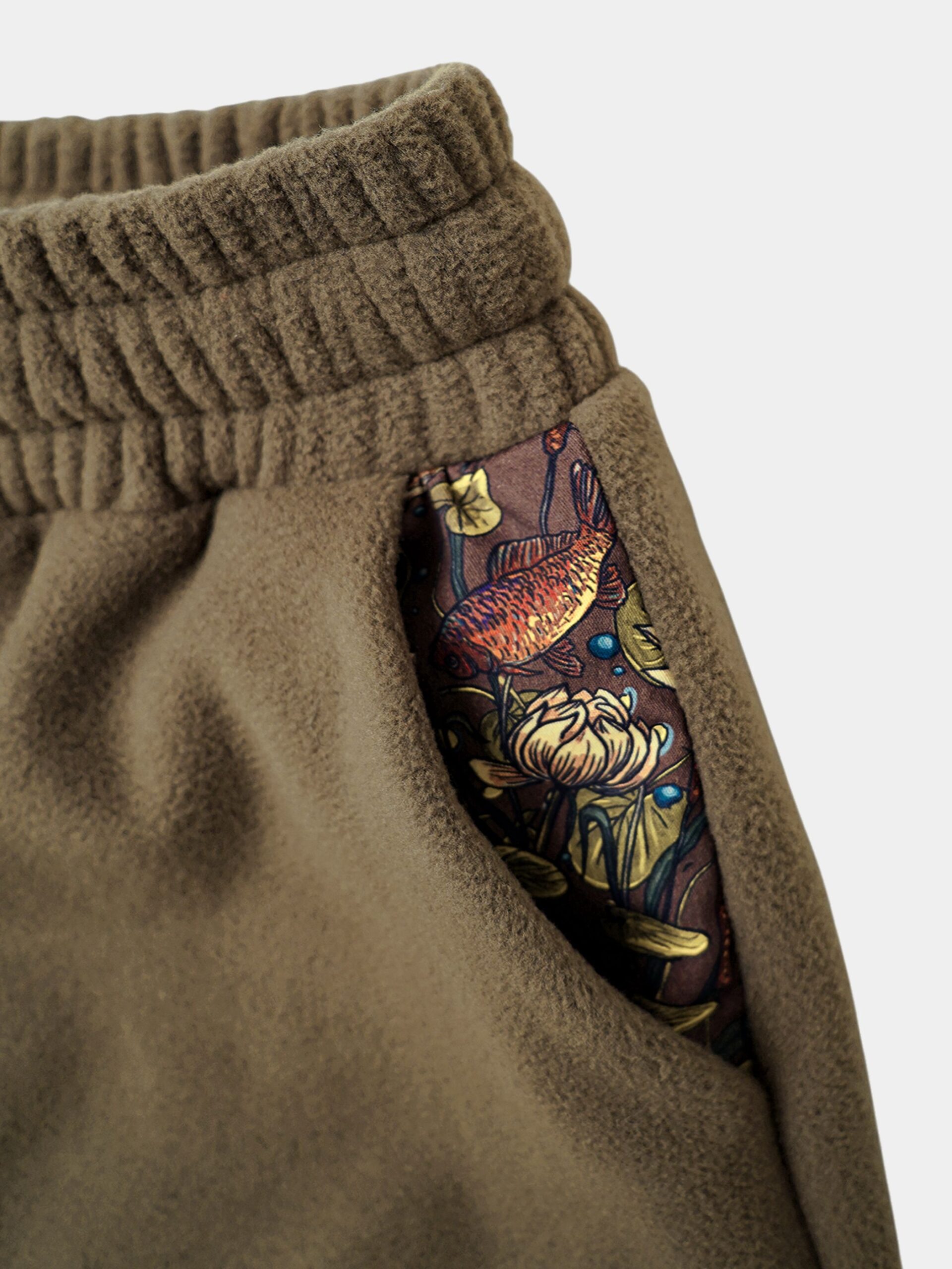 Тёплые зимние джоггеры в стиле интеллиджент оверсайз CITY HERO из толстого уютного флиса в цвете хаки, с интересной деталью в виде украшенных текстильной графикой карманами. Рисунок продолжает сюжет с одноименной олимпийки. Низ штанин на резинке. Удобные объемные боковые карманы-ловушки, сконструированы так, чтобы из них не выпадало содержимое. Изделие спроектировано, как для комбинирования с базовыми вещами, так и для дополнения костюмного тотал-лука того же дизайна.