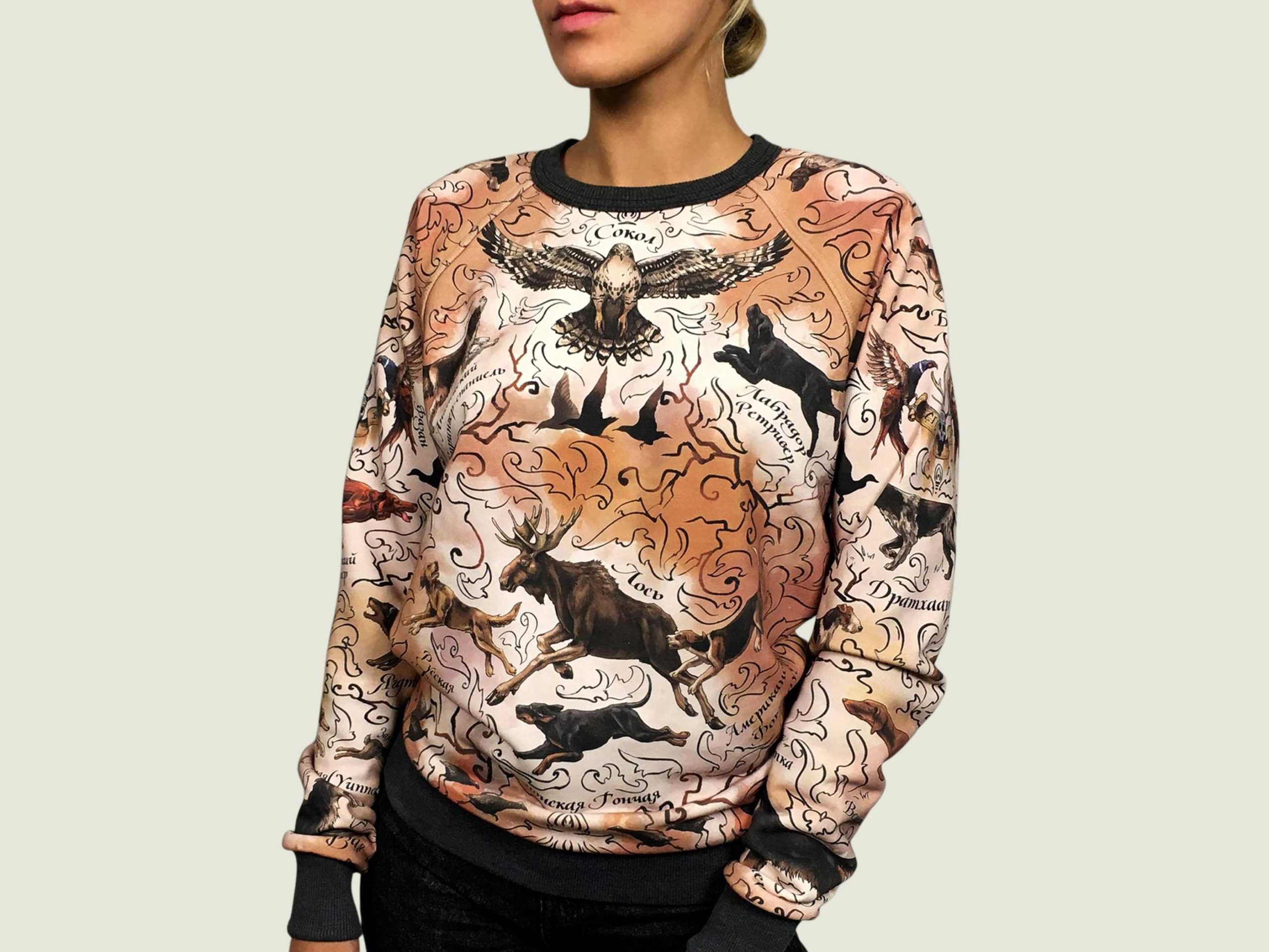 Свитшот «В ЛЕСУ». Разработанная Мастерской модель «унисекс» идеально подходит как для мужчин, так и для женщин.