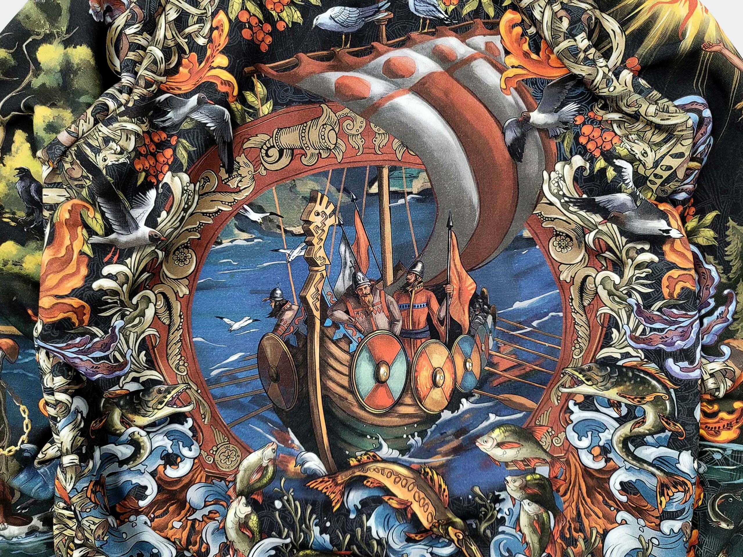 «Варяги» призваны поразить той впечатляющей панорамой, которая разворачивается на его полах. Невероятный сказочный мир покрывает каждый квадратный сантиметр изделия.