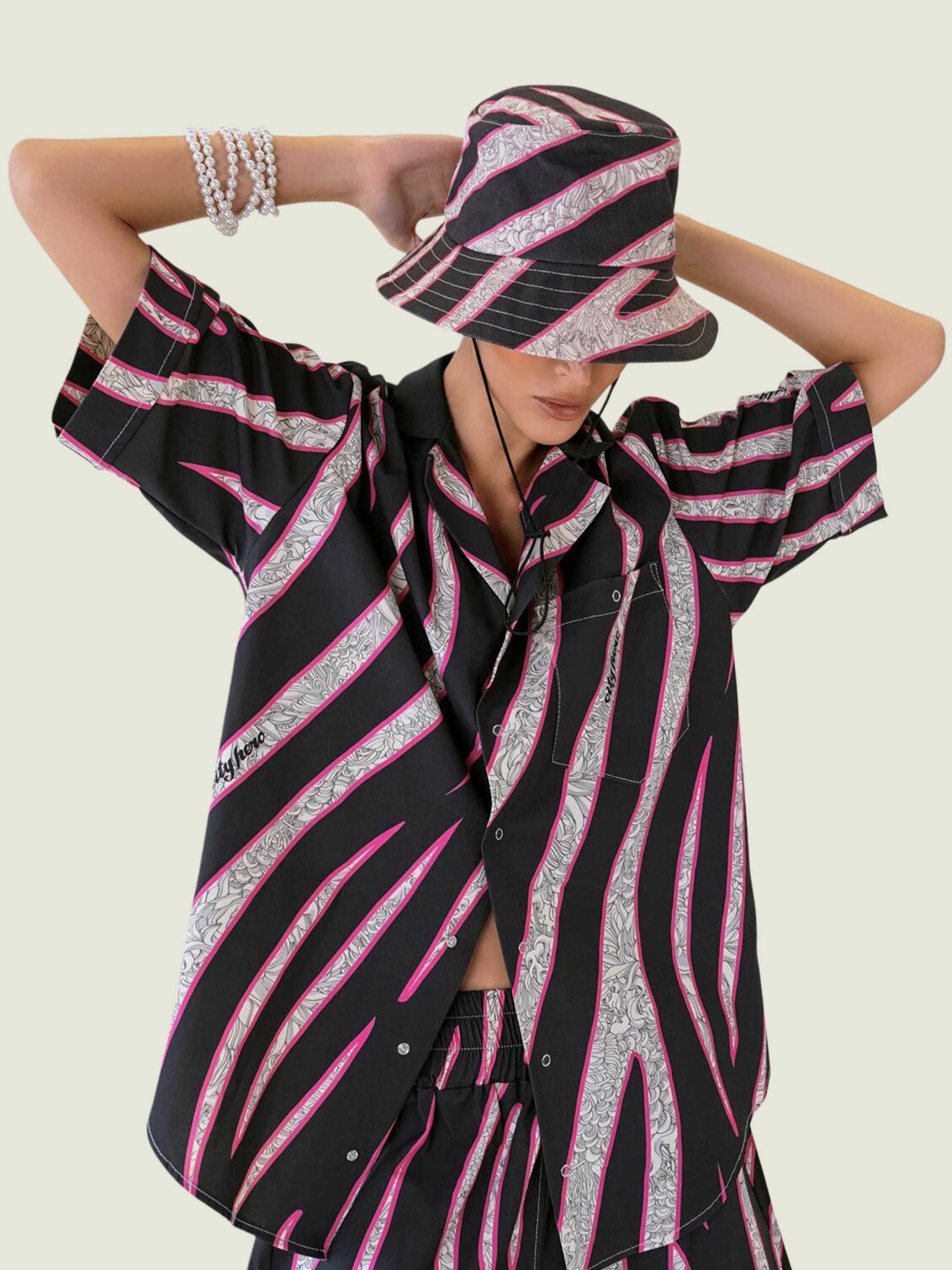 В полоски зебры особым образом замешан фирменный линейный принт, который по своей консистенции идеально усложняет анималистичный природный паттерн зебры.